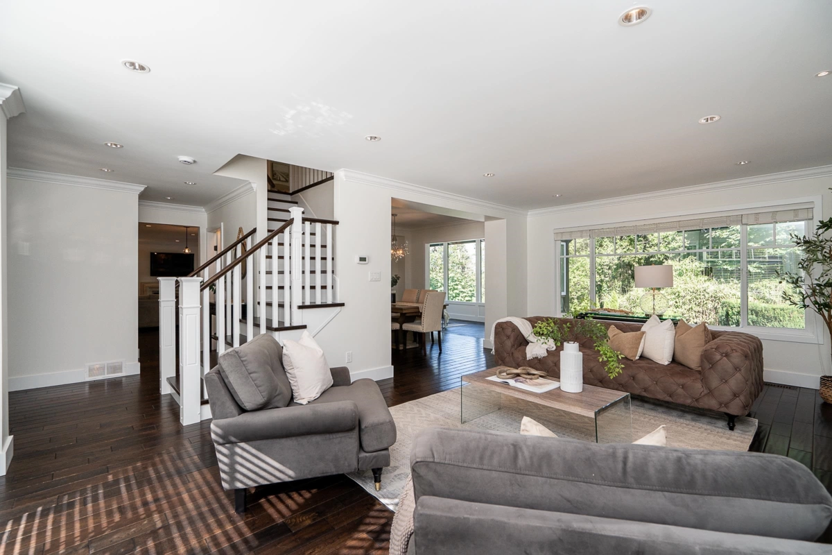 Rarely available in Harbour Place! Backing onto greenbelt, this fully renovated 4 bed, 4 bath home offers 3,372 sq ft of living on a 10,000+ sq ft lot. The main boasts a gourmet kitchen w/dbl ovens, gas cooktop, and a massive island, opening to a family room w/accordion doors for seamless indoor-outdoor living. Kitchen + formal dining room lead to a sunlit solarium with forest views. Up includes 3 spacious bedrooms, including a luxurious primary retreat w/walk-in closet + spa-inspired ensuite w/heated floors. The bright walkout basement offers suite potential, while the private, low-maintenance backyard is an entertainer’s oasis. Features include crown moulding, hardwood floors, pot lights, air conditioning, upgraded windows. A rare find in one of Coquitlam’s most coveted neighbourhoods.