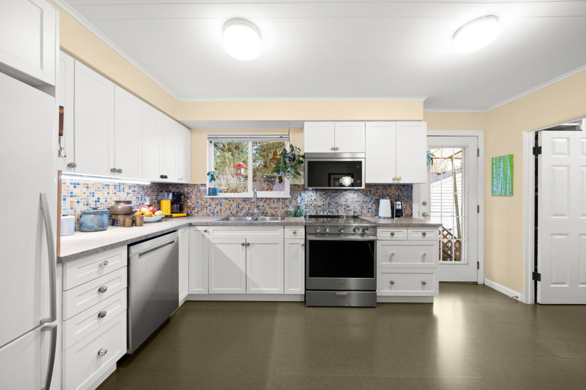 Immaculately maintained and updated 3-bedroom rancher in desirable Annieville, set on a prime 7,068 sq ft corner lot. Offering 1,447 sq ft of bright, functional living space, this home features a renovated kitchen with S.S. appliances, newer fireplace (2022), roof (2024), furnace and A/C (2022), plus windows and patio sliding door (2006~). A rare bonus living area within the garage includes its own full bathroom -ideal for guests or a home office. Beautifully landscaped grounds and a massive deck provide the perfect setting to enjoy Fraser River and city views. Conveniently located near parks, shops, restaurants along 120 Street, and quick access to Alex Fraser Bridge and Hwy 17. School catchments: Annieville Elementary & Delview Secondary. Opens: Sat, Jan 17, 2-4pm & Sun, Jan 18, 12-2pm.