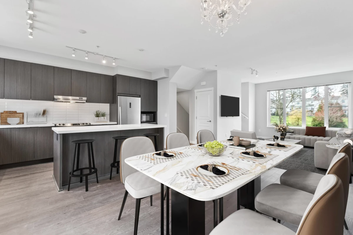 WELCOME TO ASHBURY & OAK phase 2 by Polygon! You can't beat this location situated in the heart of Willoughby! This bright and spacious 1487 sqft 3 bed plus den townhome has so much to offer. Main floor boasts spacious well thought out open concept floor plan. Upstairs you'll find 3 generous sized bedrooms including large primary with walk in closet and ensuite. Below features large den perfect for home office or play area. Large side by garage for added convenience. this has just been FRESHLY PAINTED. Amenities in the complex are unmatched, including outdoor pool, gym, club house, guest suites, and more! Minutes to Carvolth bus loop, Langley event centre, Willoughby town centre, HWY 1 access. Don't miss out! (note: some photos virtually staged).