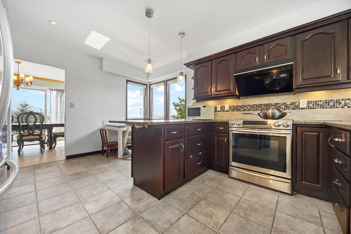 Welcome to this expansive 3,500 sq ft home on a 13,255 sq ft lot, offering stunning views, privacy, and flexibility. The home features a full renovation: interior and exterior repainting, new luxury hardwood flooring with soundproof subfloor, two additional bathrooms, new hot water tank, and new roof. The main level (approx. 1,800 sq ft) includes three generous bedrooms and the option to enjoy the entire home or create a separate suite for extended family, live-in support, or a mortgage helper. Expansive decks on both levels showcase panoramic vistas, while landscaped lawns and gardens add curb appeal. An attached garage and close proximity to schools, transit, shopping, golf, and recreation complete this exceptional opportunity.