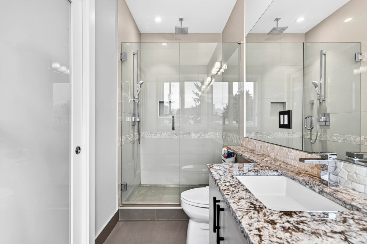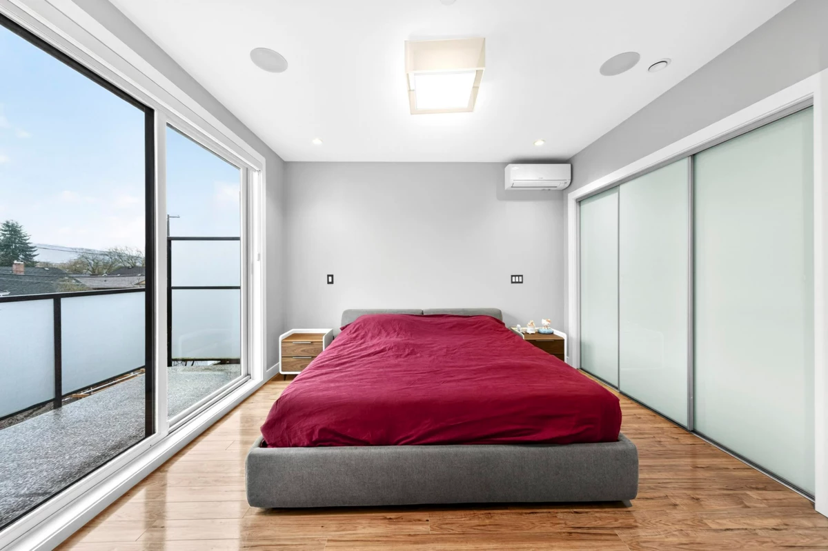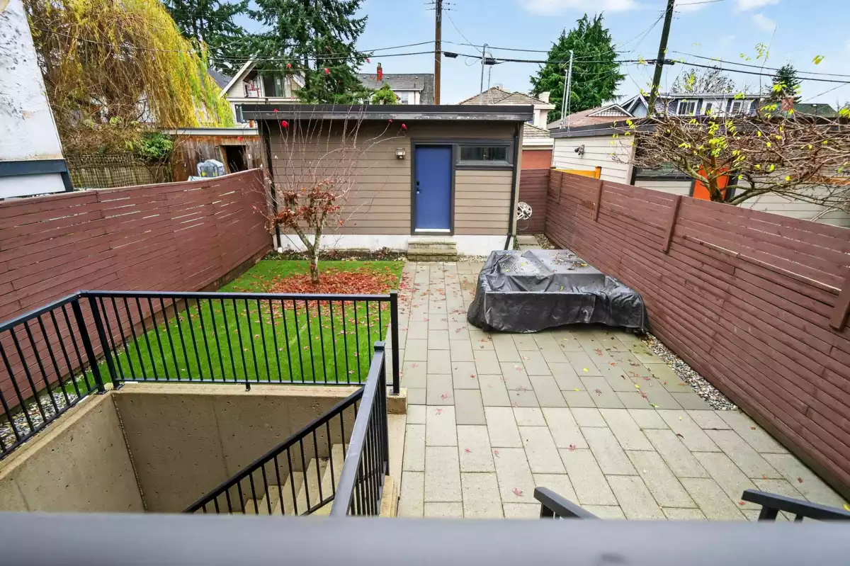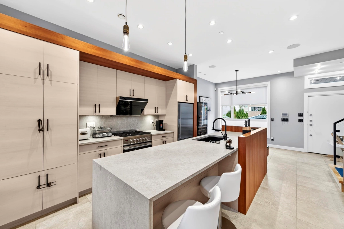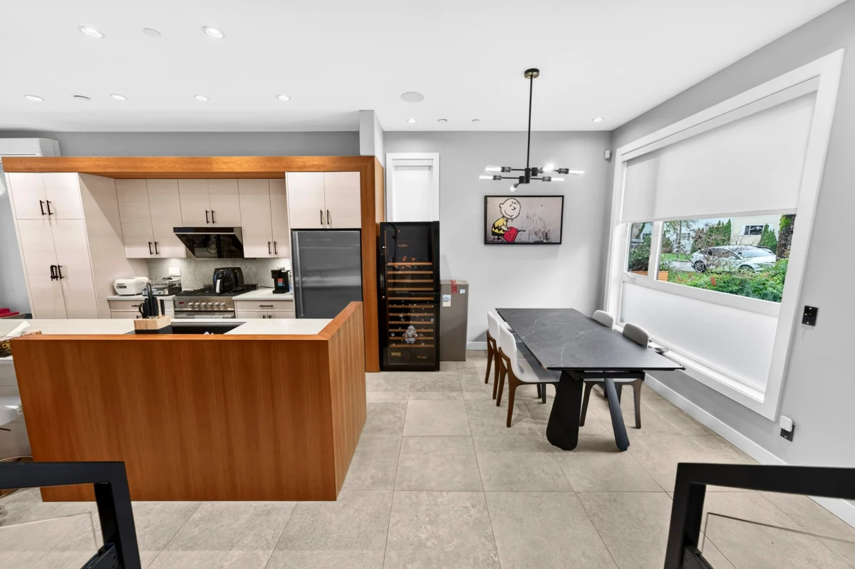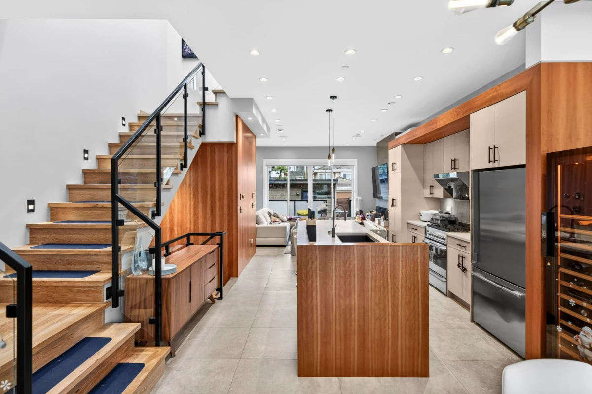 Modern luxury meets thoughtful design in this beautifully crafted, energy-efficient home with south-facing exposure. Featuring soaring ceilings, custom maple & cherry wood millwork, Italian tile accents & a striking 50” linear electric fireplace, the bright open main floor is both elegant & inviting. Gourmet granite kitchen w/ high-end appliances, custom cabinetry & oversized island. 3 spacious bedrooms & 2 baths upstairs. Enhanced comfort with radiant in-floor heating, A/C, HRV, water filtration system & built-in stair lighting. Legal 1 bedroom suite with high quality finishes. Enjoy seamless indoor-outdoor living with multiple balconies and a private, low-maintenance outdoor space with BBQ area. Close to shopping, parks, and top schools.