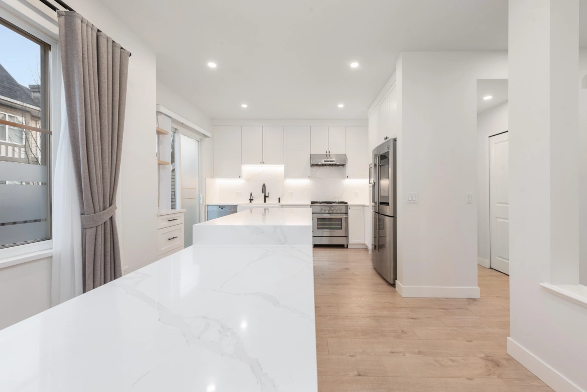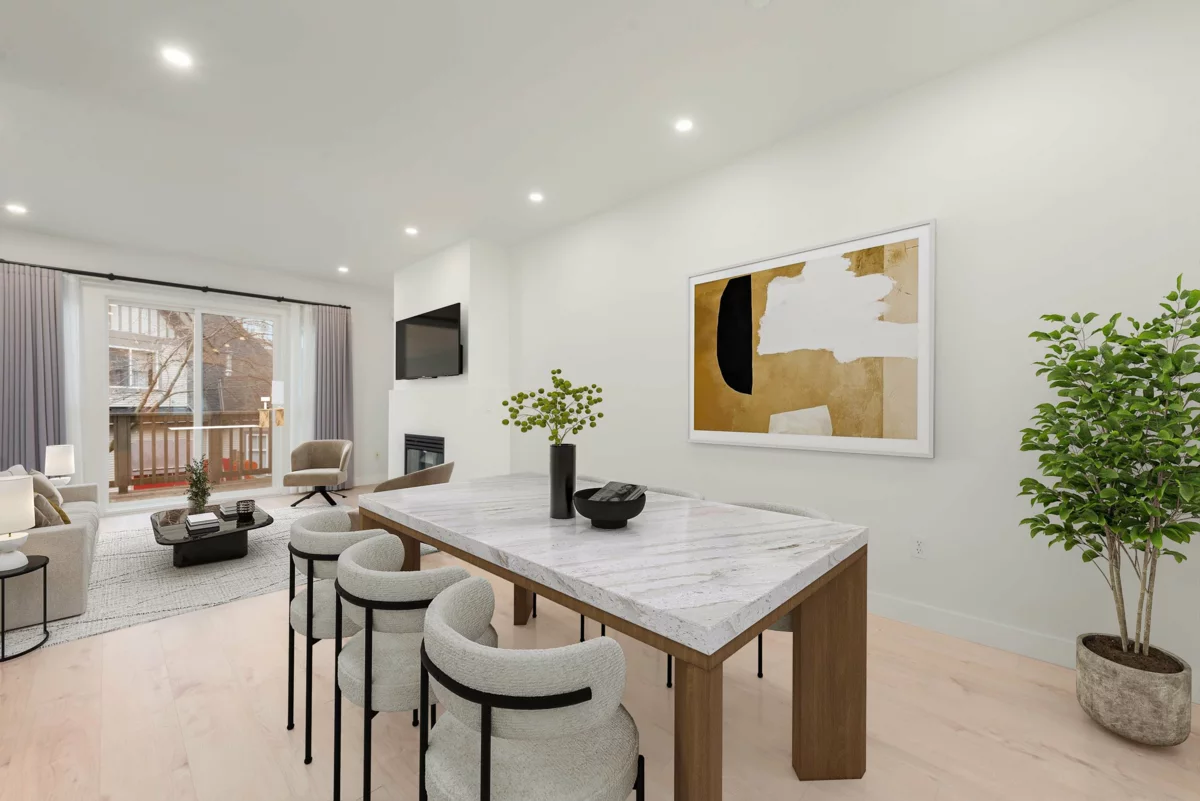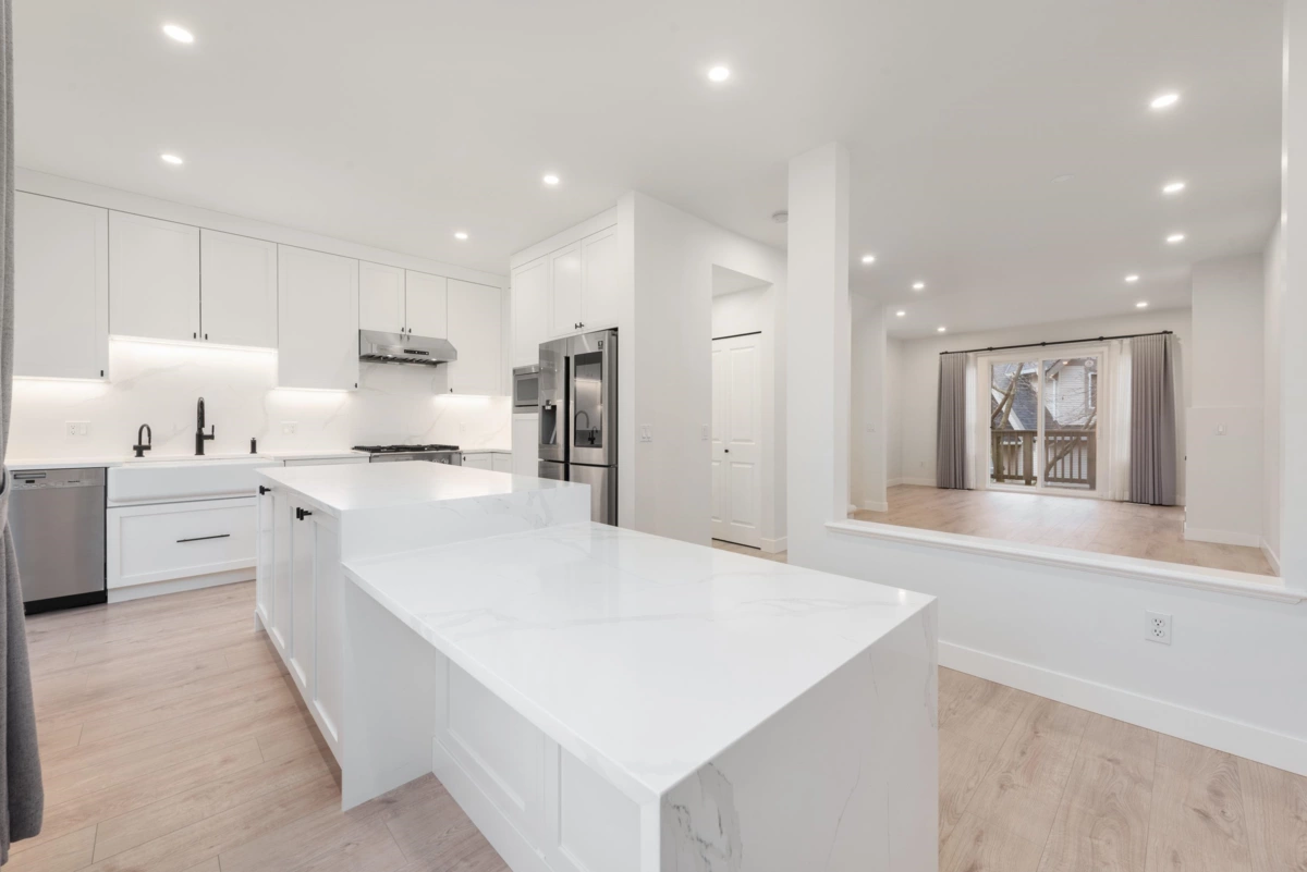 Welcome to Mayflower in sought-after Terra Nova. This bright & tastefully renovated 4 bed, 3.5 bath townhome offers: high ceilings on the main, open concept floor plan with 2 large balconies & side-by-side double garage. Updates include: a stunning open kitchen with large island, full appliance package, updated lighting, hardwood flooring with plush new carpets and plenty of space for a proper dining and living room space. Big-ticket peace of mind: new roof in 2023, hot water tank in 2025, and new garage motor in 2025. Flexible lower level rec room works beautifully as a home office, gym, or 4th bedroom. Amenities include lounge/party room, gym, outdoor pool and hot tub, with the Dyke trail, parks, shops and transit close by. Spul'u'k. This home is waiting for you!