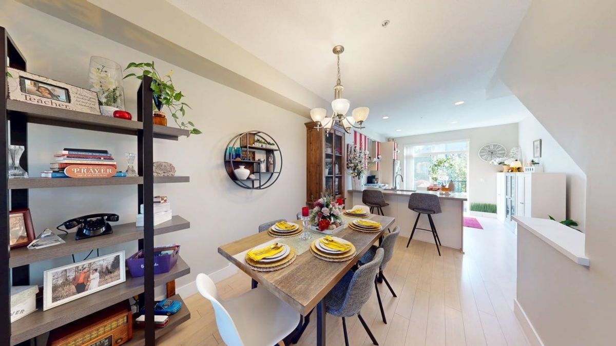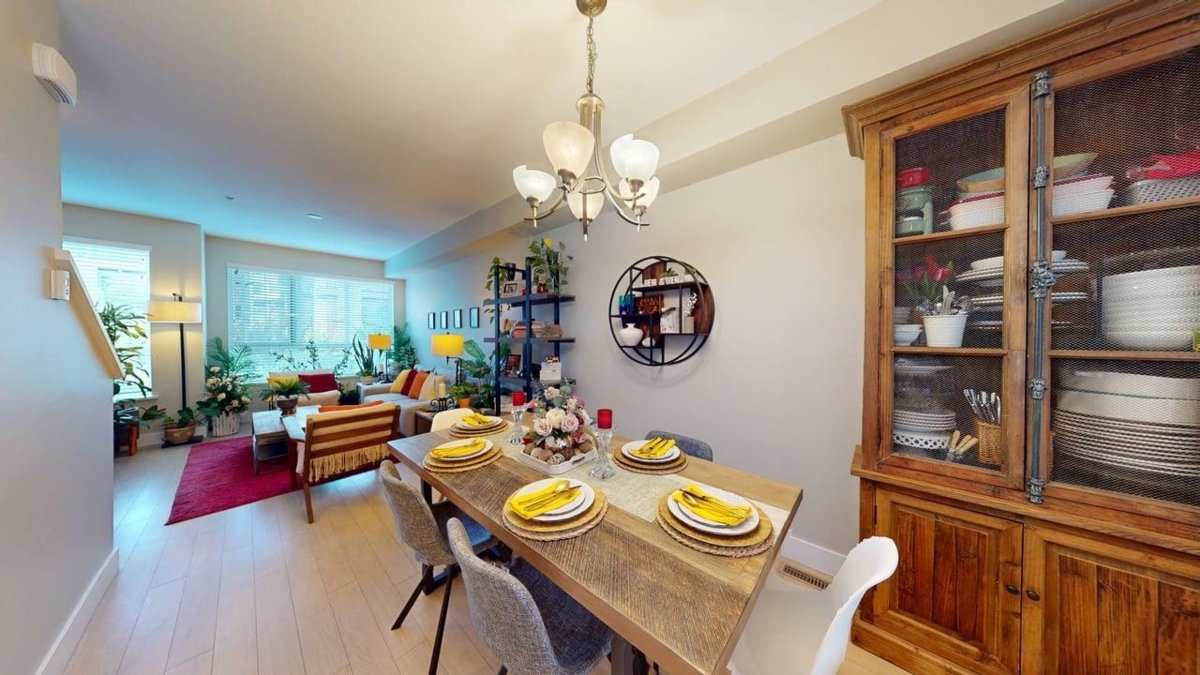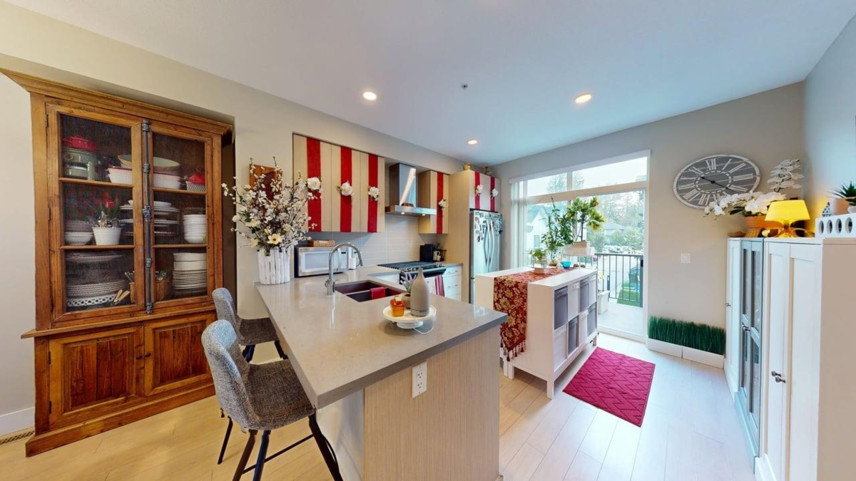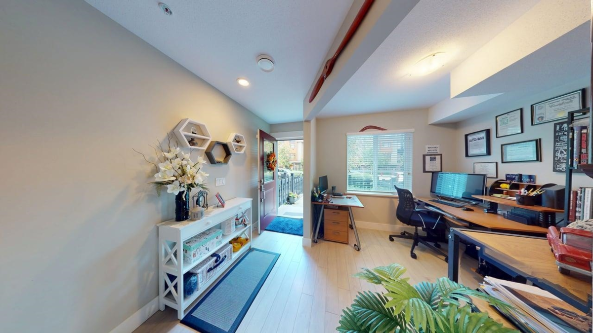 Welcome to Woodland Park, the premier location in Willoughby Heights built by Infinity. This craftsman-style townhouse offers an open-concept layout with 1,265 sq. ft. of living space, featuring 2 bedrooms, a den, and 3 bathrooms. Highlights include 9' ceilings on the main level, forced air heating, large Energy Star windows with 2" faux wood blinds, and a functional kitchen equipped with stainless steel appliances, polished quartz countertops, tile backsplash, a five-burner gas range, and convection oven. The ground level includes a den and powder room for added convenience. Ideally situated near Hwy 1, Yorkson Creek Trail, Carvolth Exchange, transit, schools, shopping, and parks such as Yorkson Community Park and Dorothy Peacock Park.