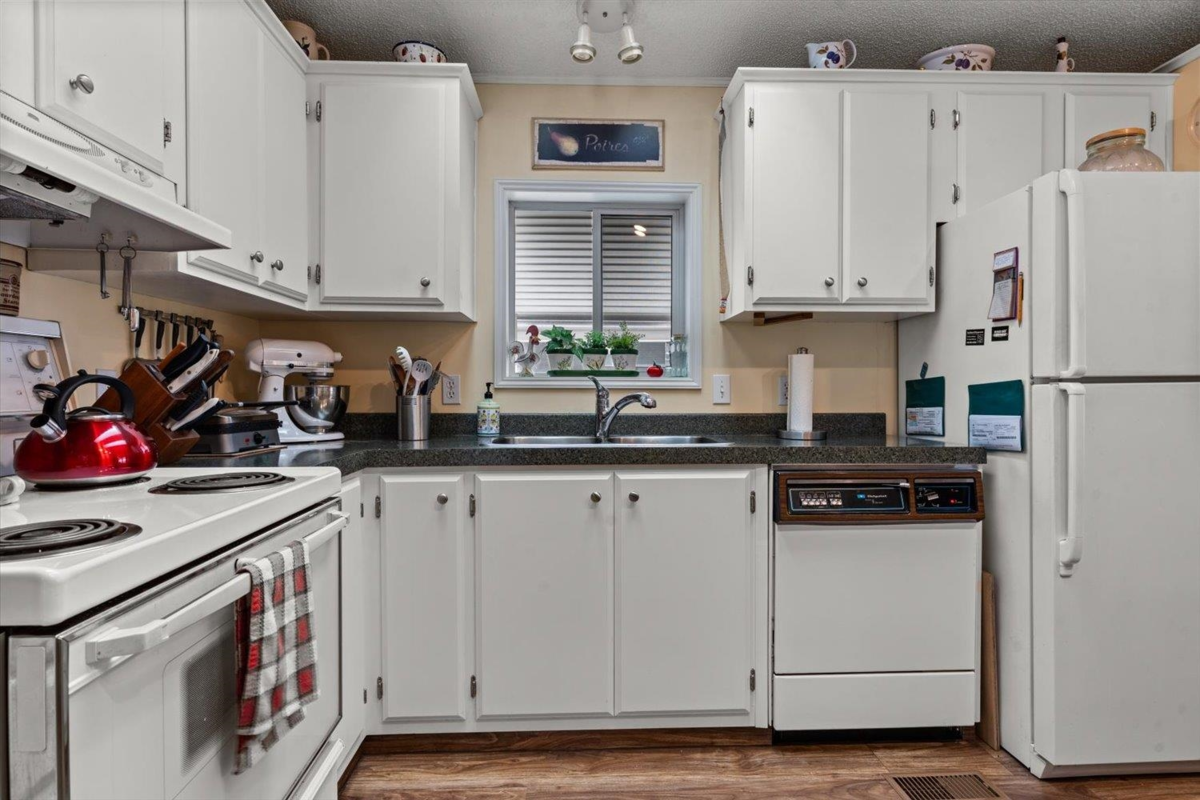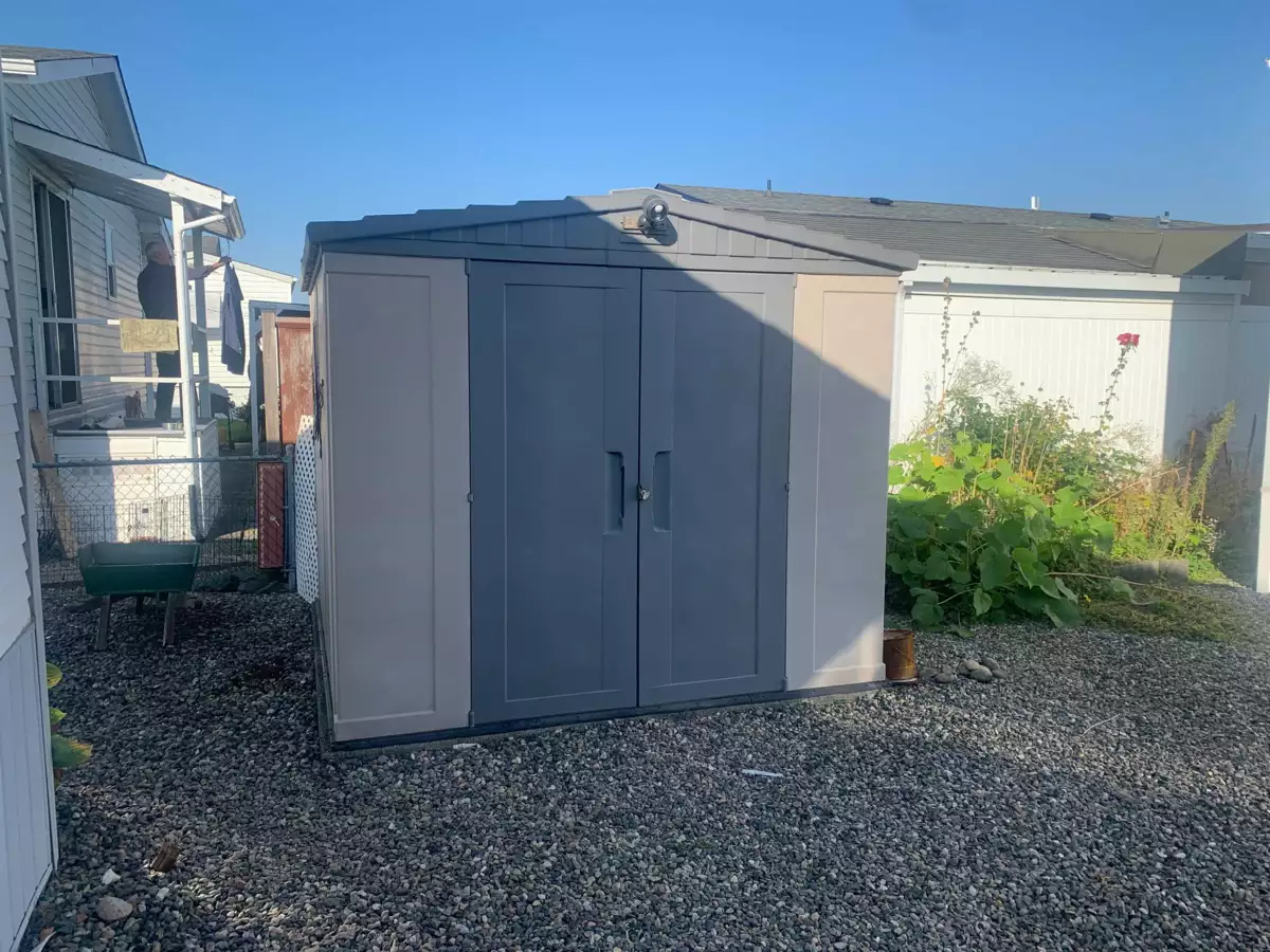 Rainbow Estates, 40+ community with clubhouse and onsite RV Parking. This well maintained modular home features 2 beds + 2 baths, over 1250 sq. ft. with bright kitchen, open dining room/living room as well as a family room. Exterior set up for easy maintenance with large sundeck, attached shop, freestanding garden shed and raised garden beds ideal for both flowers and home grown vegetables. The roof was replaced in 2017 and the home has been lovingly maintained by the current owners for more than 25 years. Located across from the club house overlooking an open grassed area, offering unobstructed mountain views to the northwest. Small pets allowed. Join this vibrant community as empty nesters or active retirees. Independent living at an affordable price…ready for immediate occupancy.