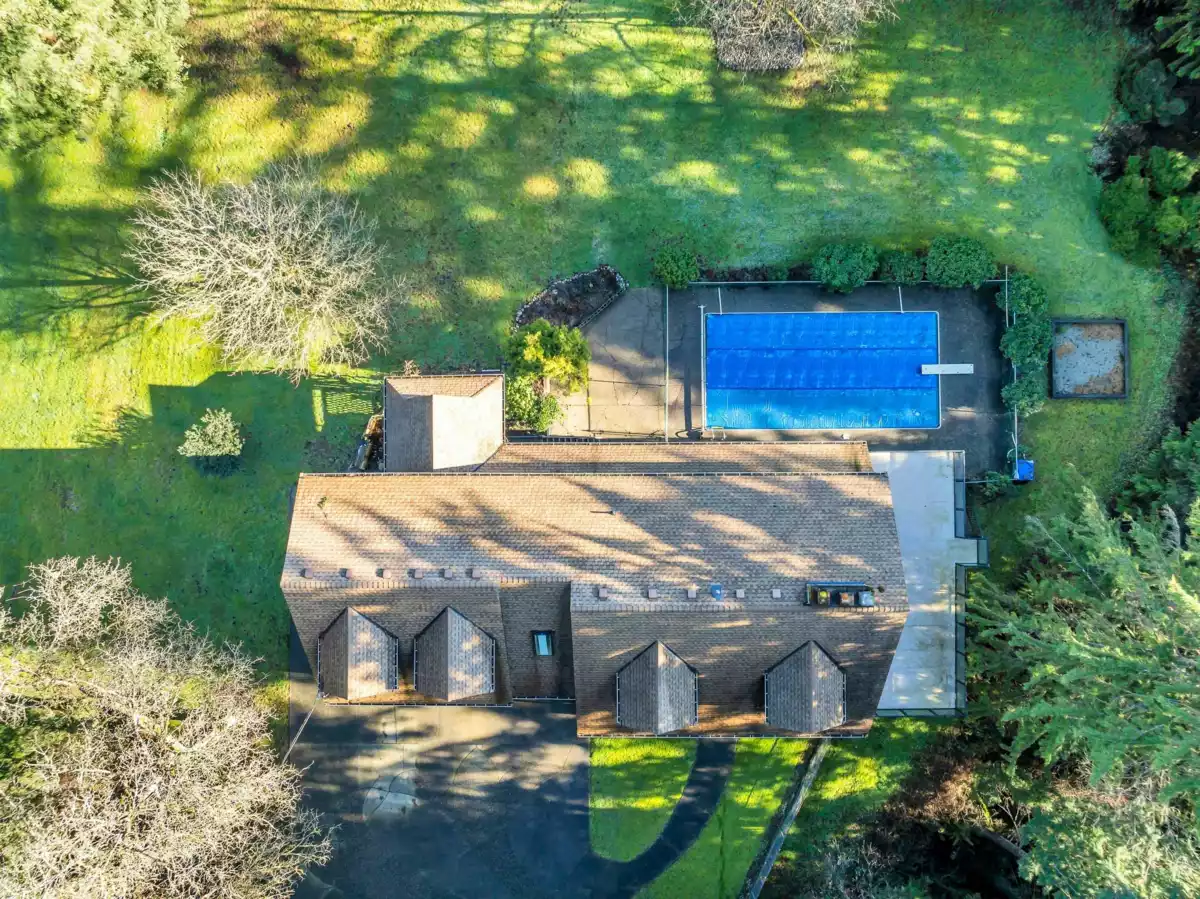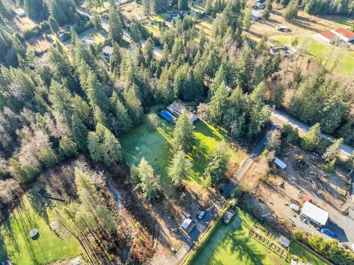 Situated on 1.73 acres, 10 minutes from amenities, this private estate-style property is set well back from the road with a long driveway & serviced by CITY WATER. Custom built in 1981, this 2-storey with basement home was designed for entertaining. The main floor features a sunken living room, kitchen with adjacent eating area & access to a large sundeck overlooking the property. Upstairs offers 3 bedrooms plus spacious family room above the garage. The walk-out basement is mostly unfinished with a bathroom. A detached garage with breezeway includes a roughed-in bathroom. Enjoy an inground swimming pool, covered hot tub area (not operational) & babbling brook along the property. Well maintained by the second owner for decades, this is a rare opportunity to update & make it your own.
