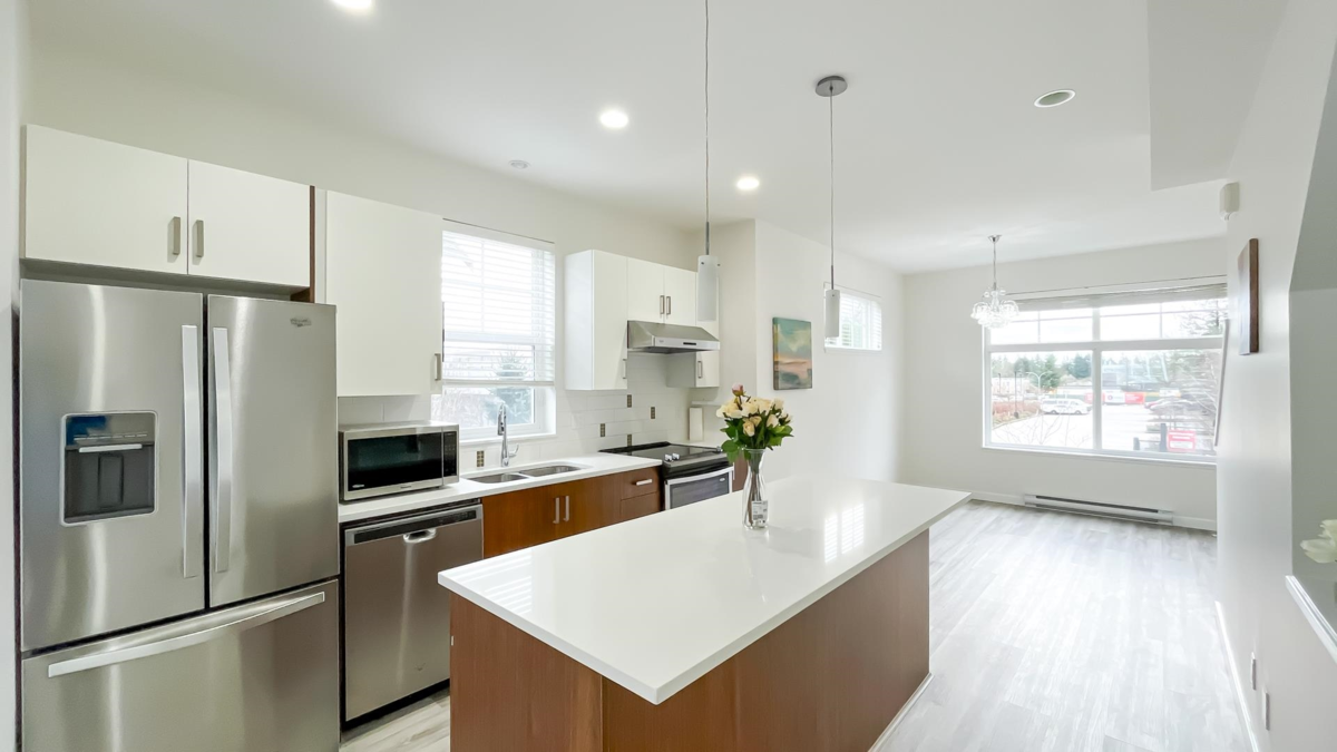 Nice Location! Brooklyn Village located in Sullivan Station south of Surrey. This Corner unit facing south offers a bright, open perfect & right spacious layout with extra windows; 3 spacious bedrooms, 2.5 baths, Upstairs, the large primary bedroom includes dual closets and a luxurious ensuite with double sinks; A big space Storage locker in Garage! New floorings and New Paint in 2025; Enjoy tandem parking for two cars & beside a visit parking space; quick highway/transit access, and School catchment to top schools (Ecole Woodward Hill & Sullivan Heights), parks, dining, and shopping. Also Close to YMCA and Bell Arts Centre. Don't miss out and bring your best offer!