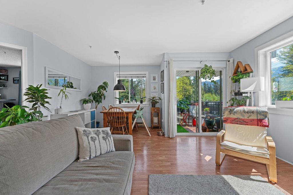 Bright, spacious, and beautifully maintained, this 2 bed/2 bath unit at Diamondhead Place offers comfort and convenience in the heart of Squamish. Featuring updated laminate flooring, fresh bedroom carpet, new window blinds, and select new appliances, this home is move-in ready. Enjoy easy access to shops, restaurants, coffee spots, nature trails, and a golf course—all within walking distance. Enjoy a serene courtyard with mature trees and outdoor space right in the complex. Also includes one covered parking stall, a ski locker, and extra storage. Live steps from Garibaldi Village and everything Squamish has to offer, with biking and walking trails right outside your door! A second parking stall is currently rented for $100/month and can be transferred to the new owner.