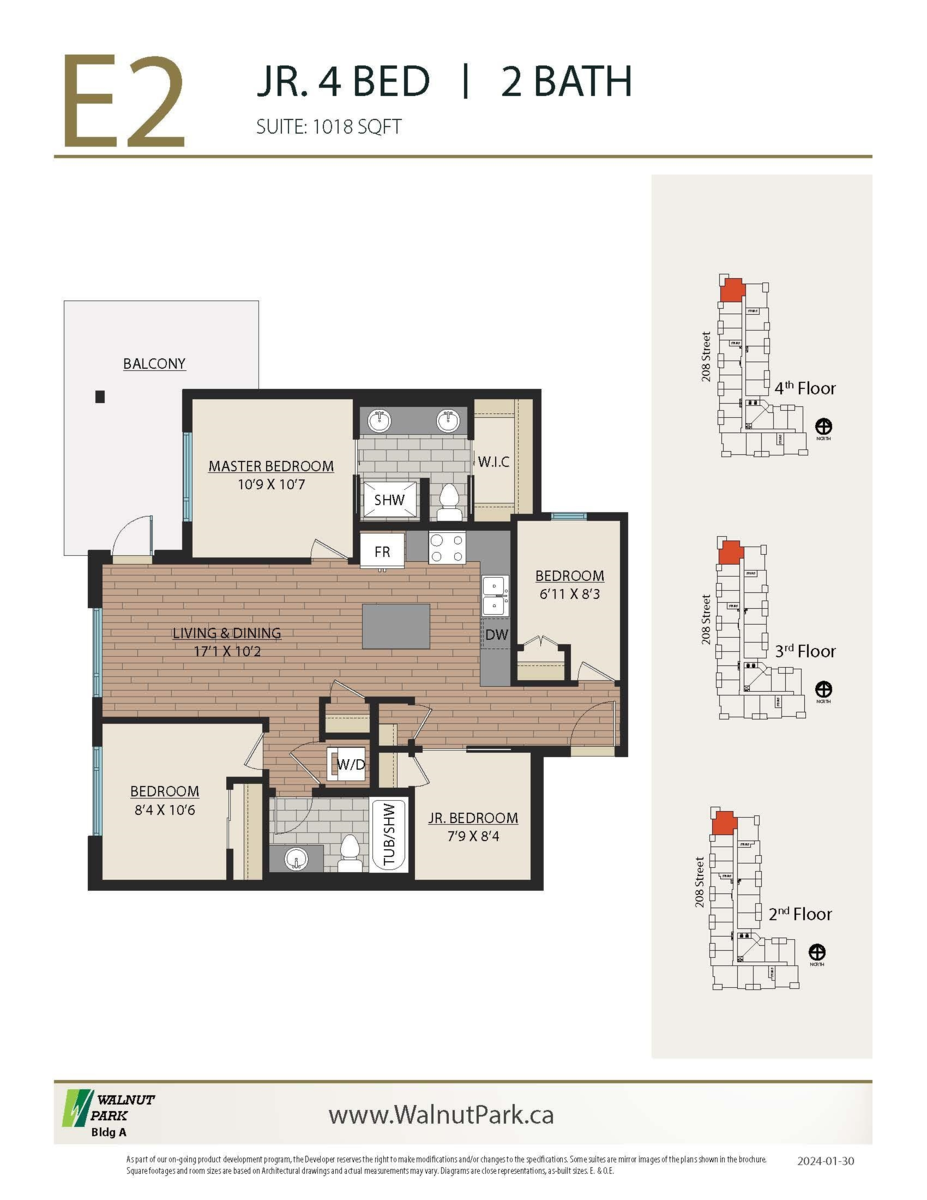 QUADRA HOMES!!! Luxurious Jr 4 bedroom, 2 bathroom condo in Quadra Homes newest building, Walnut Park. Featuring 9' ceilings, A/C, S/S appliance package, white quartz countertops & large island, white shaker cabinets, vinyl-plank floors with NO CARPET throughout, heated floors in the bathroom, built-in closet organizers, built-in safe, underground parking, HUGE storage locker, EV charger, the list goes on and on! Huge balcony that is excellent for entertaining, North-West facing. Large fitness room and rooftop amenities, perfect location for restaurants, shops, grocery stores, schools, and more! Don't miss out!