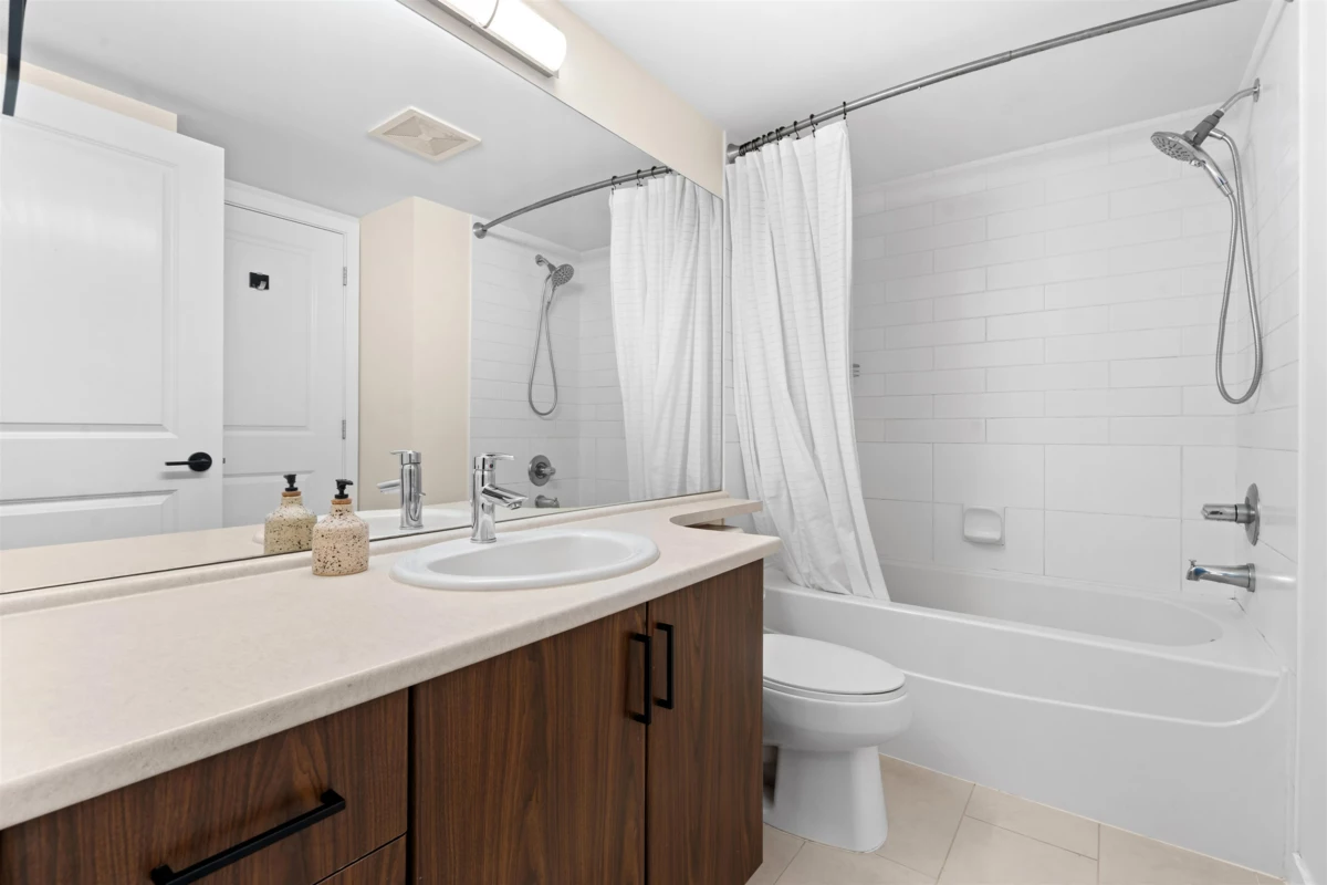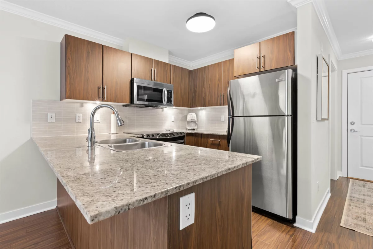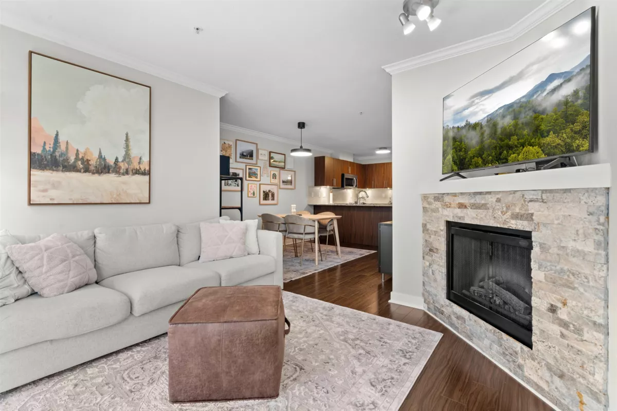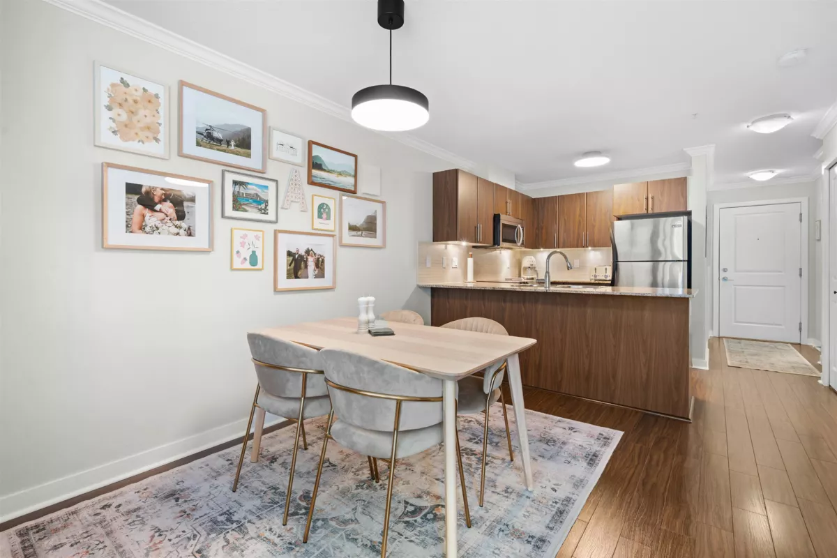 Welcome to The Grove in desirable Walnut Grove. This bright 722 sq ft 1 bed + den home features a spacious open layout with the living area set slightly apart from the dining space. The kitchen is finished with stainless steel appliances, granite counters, and a breakfast bar, plus a covered west facing balcony overlooking the quiet central courtyard, perfect for BBQs or unwinding after work. Includes 1 parking and 1 storage locker. Unbeatable location just off Hwy 1 with the walkbridge steps away to Fresh St Market, Shoppers, fitness studios, restaurants, shops, trails, and Carvolth Exchange. Close to Dorothy Peacock Elementary.