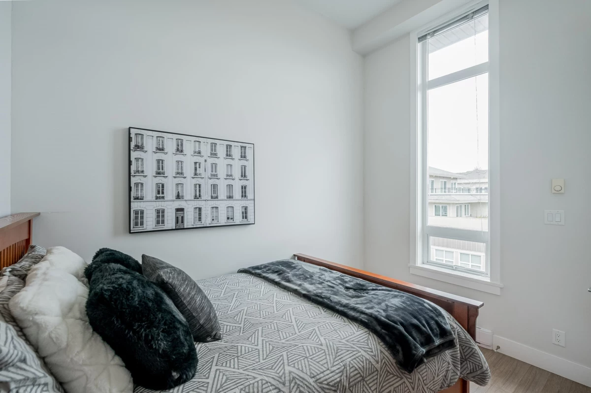 Ideal top-floor 1-bedroom condo in Langley's sought-after Elements complex. Bright & spacious living room features 12’ ceilings & large windows allowing for plenty of natural light. Open kitchen boasts stainless steel appliances, quartz countertops, & ample cabinet space. Good sized bedroom and 3pc bathroom w/ rain shower. Balcony space with views of Mount Baker, perfect for enjoying your morning coffee. Luxurious amenities include gym, yoga room, media room, board room, clubhouse, billiards room, and guest suite. 1 underground parking & 1 storage locker on same floor as unit. Convenient location only a short walk to transit, Willowbrook Shopping Centre, restaurants, grocery stores, & the upcoming Langley Skytrain extension. Pets allowed with no size restriction. Book your showing now!