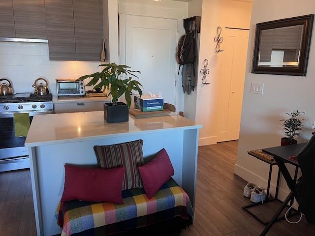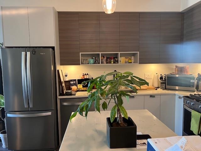 4 yrs old one bed condo in convenient location with shopping, fitness center, eateries right at your footsteps. Open floor plan equipped with a modern kitchen, ample cabinets. Exceptional big balcony to have your morning coffee and sunset dinner. Top floor and on the quiet side of the building. Easy access to Hwy 1. All measures approx., to be verified. Rented to good tenant and love to stay. 24 hours notice for showing, prefer afternoon between 2-5pm. Book your app't. now! Open House 2-4pm Sunday Oct. 19