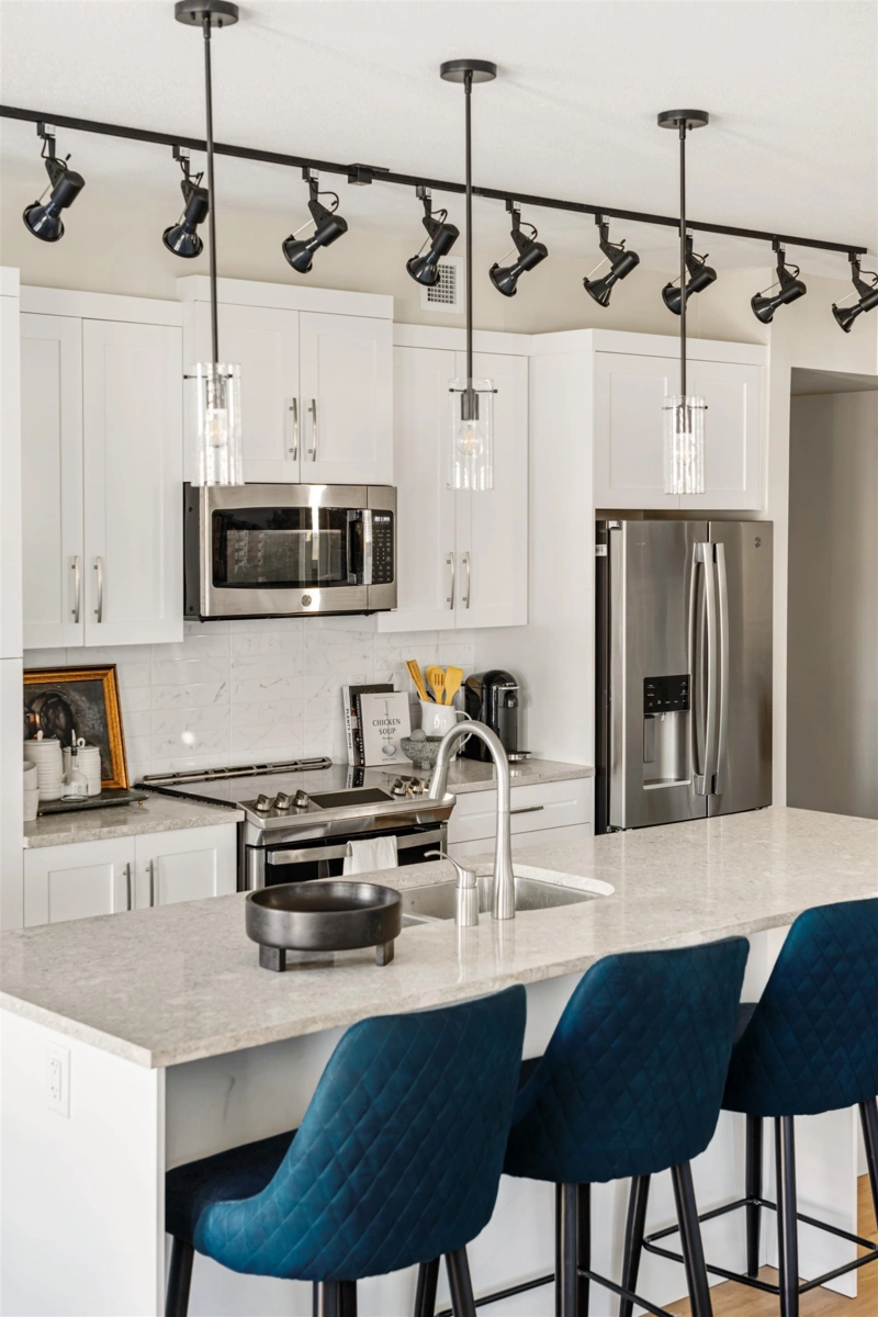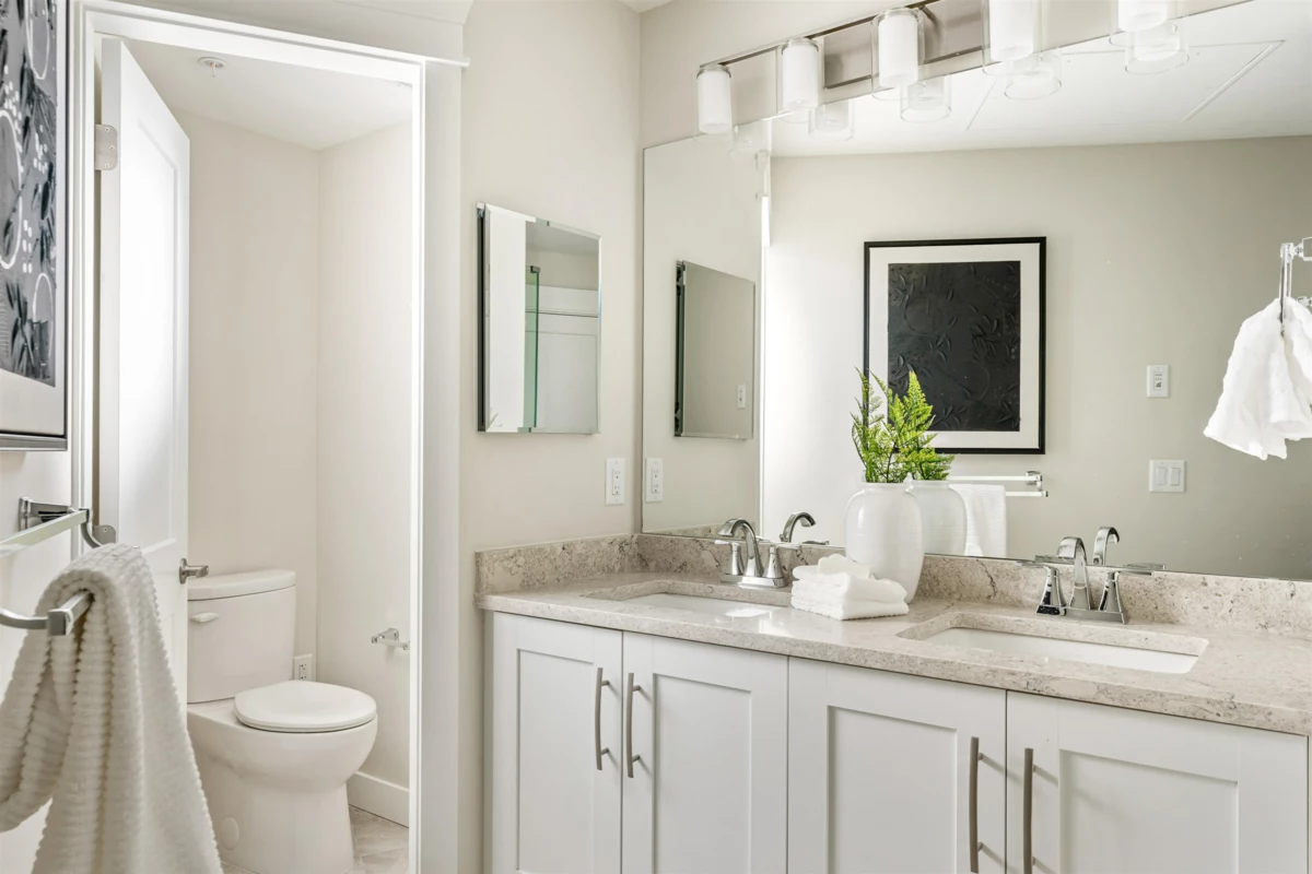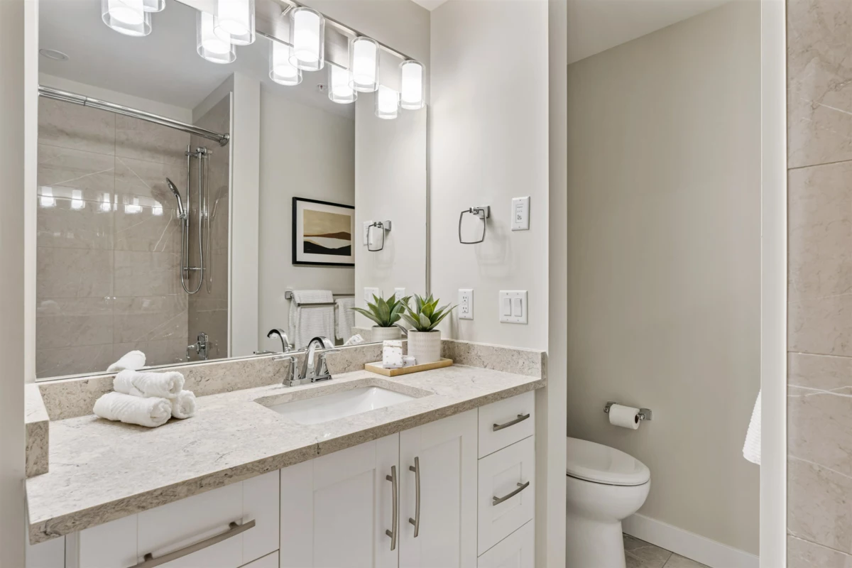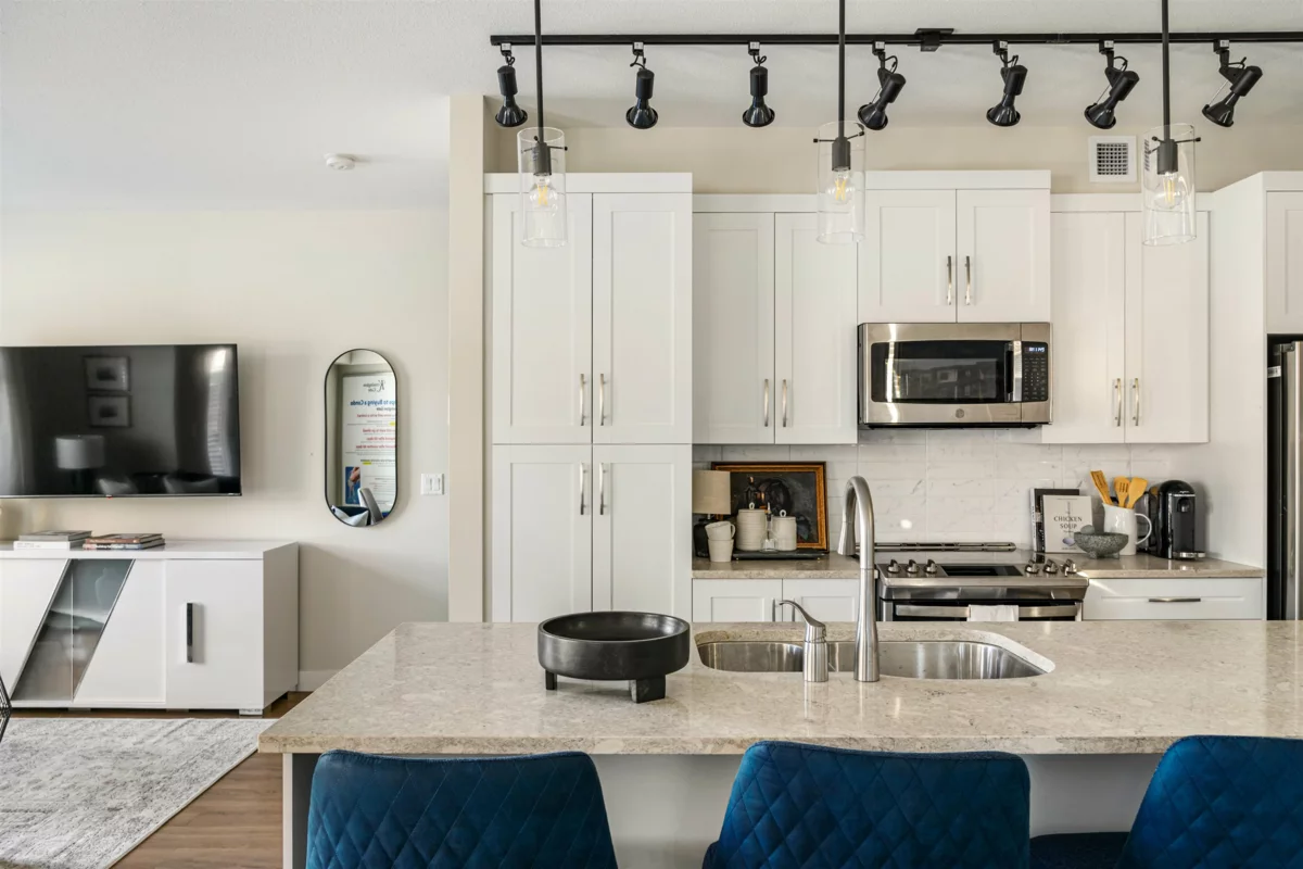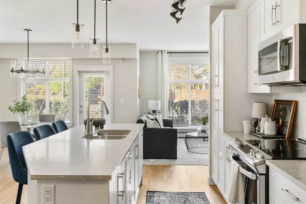 Experience elevated living at Walnut Park by Quadra Homes! This 1 bed + flex, 1 bath condo with TWO parking stalls (1 accessible) & STORAGE LOCKER offers 9’ ceilings, A/C, a gourmet kitchen with quartz counters, soft-close cabinetry, under-cabinet lighting & S/S appliances. Enjoy vinyl plank flooring, heated bathroom floors, built-in safe & EV-ready parking. Relax on your east-facing PATIO overlooking the courtyard or enjoy ROOFTOP amenities & a fitness room. One of only six 1 bed + flex units in a 130-unit building. This ADAPTABLE floorplan allows certain accessibility clearances (ask for details). Note: Photos show a different floor plan but from the same developer. Steps from shops, dining & more!