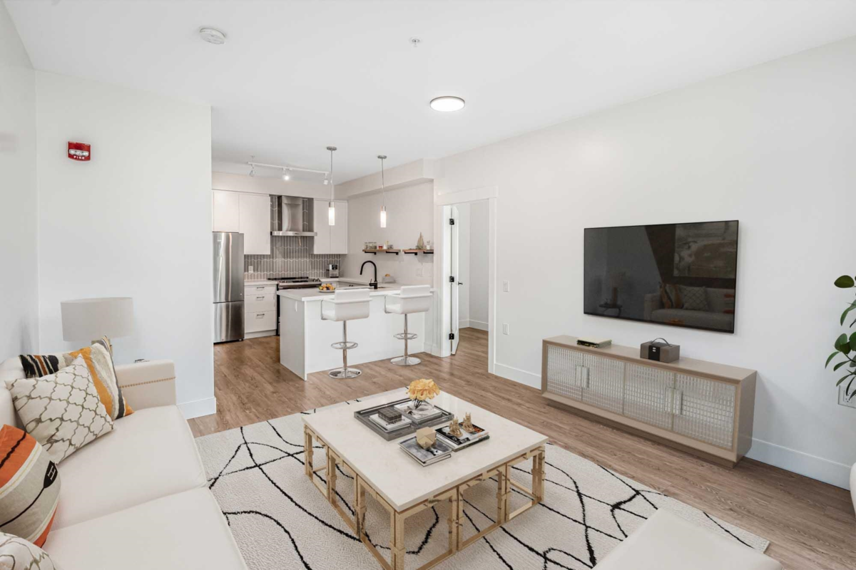 Located on the QUIET side of the building, This CORNER residence offers 2 bedrooms and 2 bathrooms in a thoughtfully designed layout that separates the bedrooms for maximum privacy, enhanced by expansive windows that flood the home with natural light. The chef-inspired kitchen showcases quartz countertops, designer cabinetry, and premium stainless steel appliances. Two oversized decks invite you to take in the sweeping mountain views, creating the perfect extension of your living space. Recently refreshed with new paint, this home includes 2 secured parking stalls and a storage locker. Perfectly positioned just steps from Richard Bulpitt Elementary and the vibrant Willoughby Town Centre, this home blends luxury, lifestyle, and convenience.
