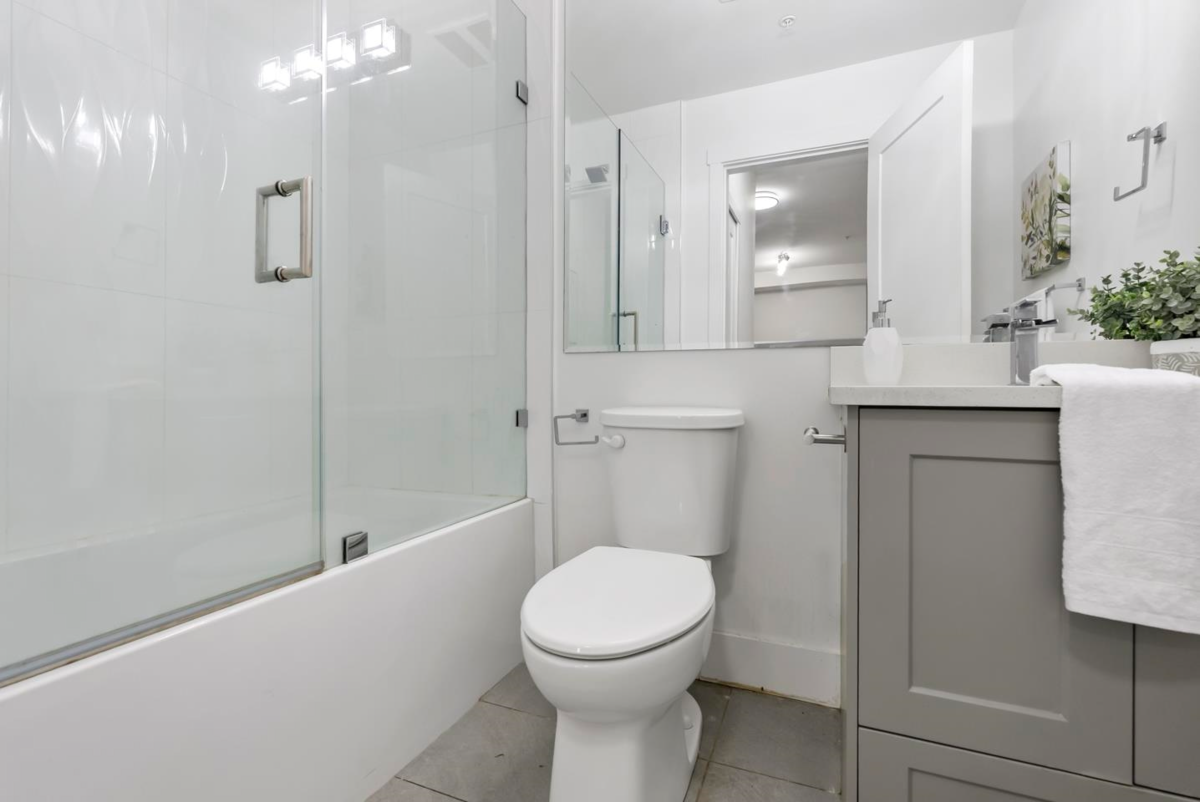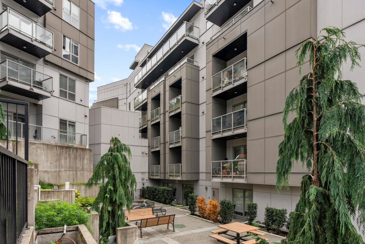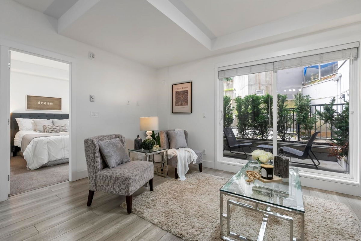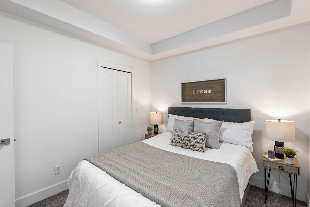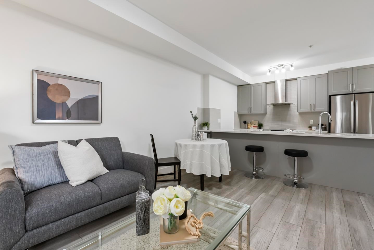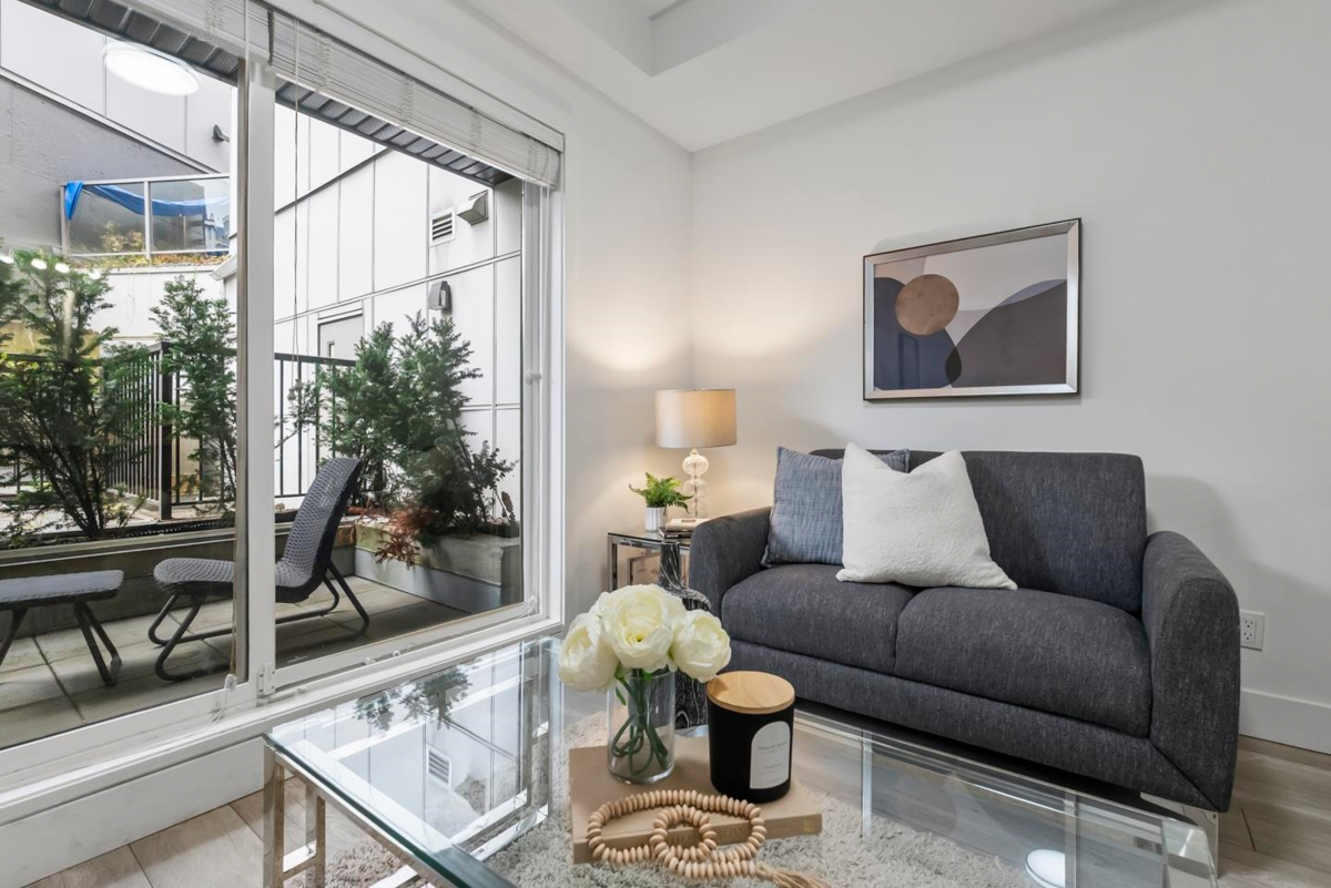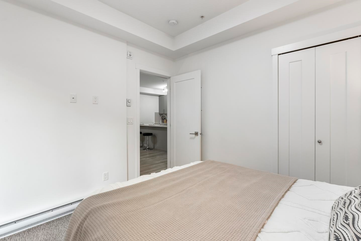 Rare 1 BED + DEN layout on the GROUND FLOOR with 2 PARKING stalls at Fraser Landmark, perfect for first-time home buyers and investors. Enjoy ultimate privacy on facing away from the street, no neighbours on either side, a spacious bedroom, walk-in closet, and a modern kitchen with expansive quartz countertops. Two patios offer extra living space for relaxing or entertaining, and two parking stalls add convenience. Just steps from the future SkyTrain and minutes to schools, shopping, and Surrey Memorial Hospital, this home delivers unmatched convenience and long-term investment potential.