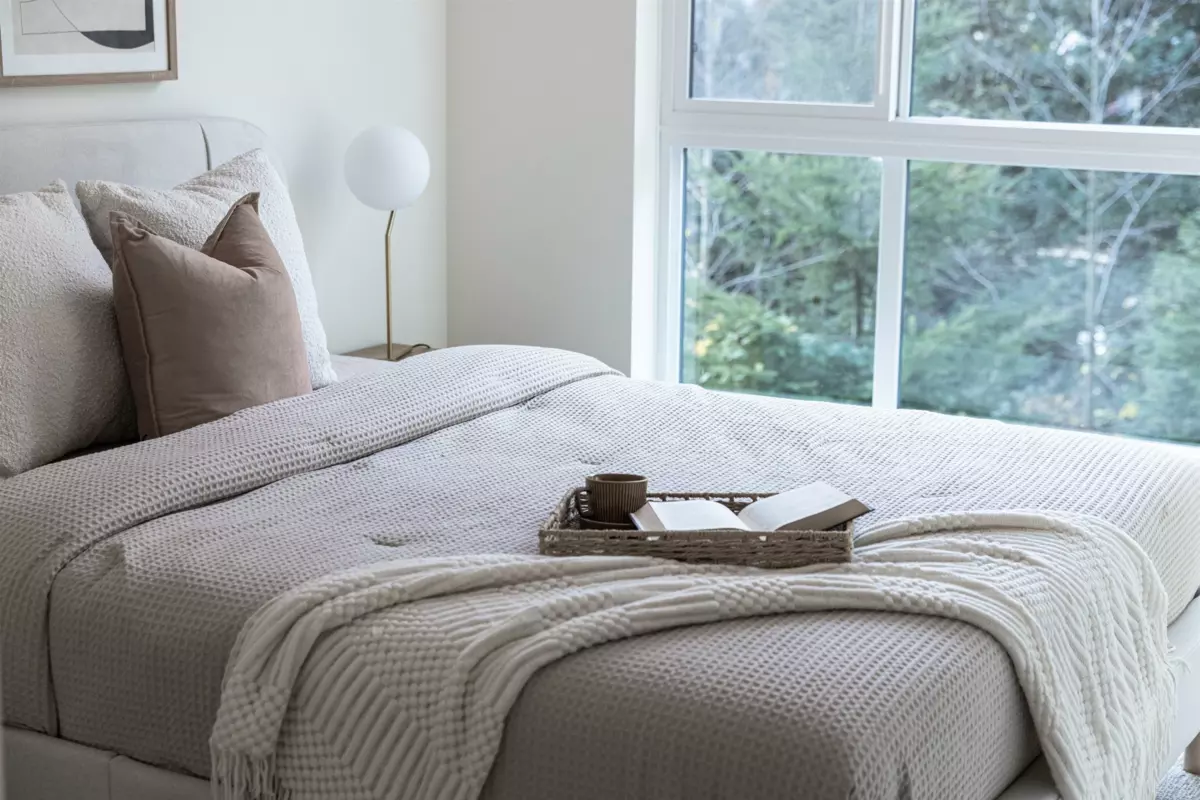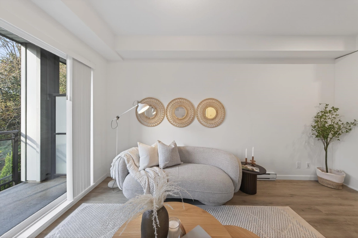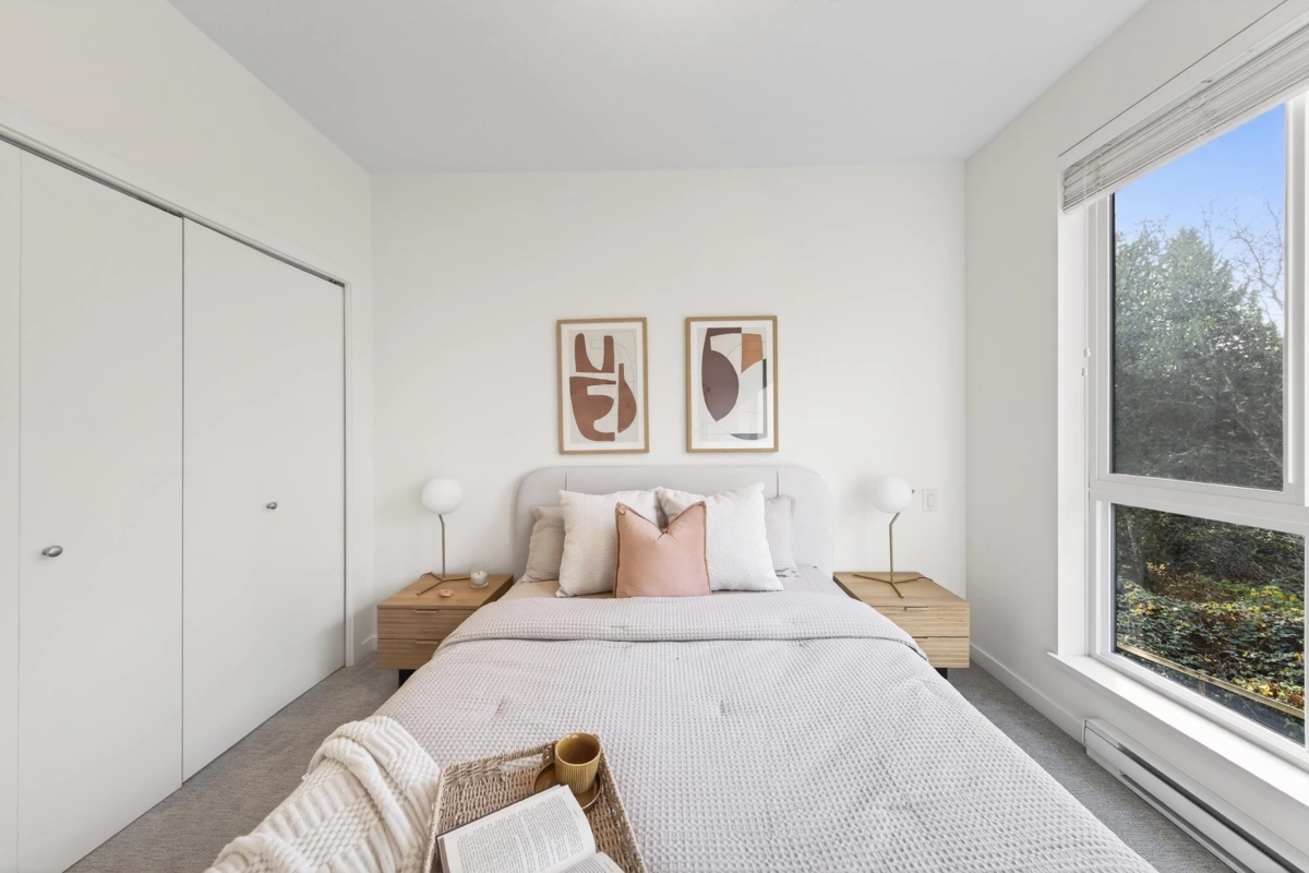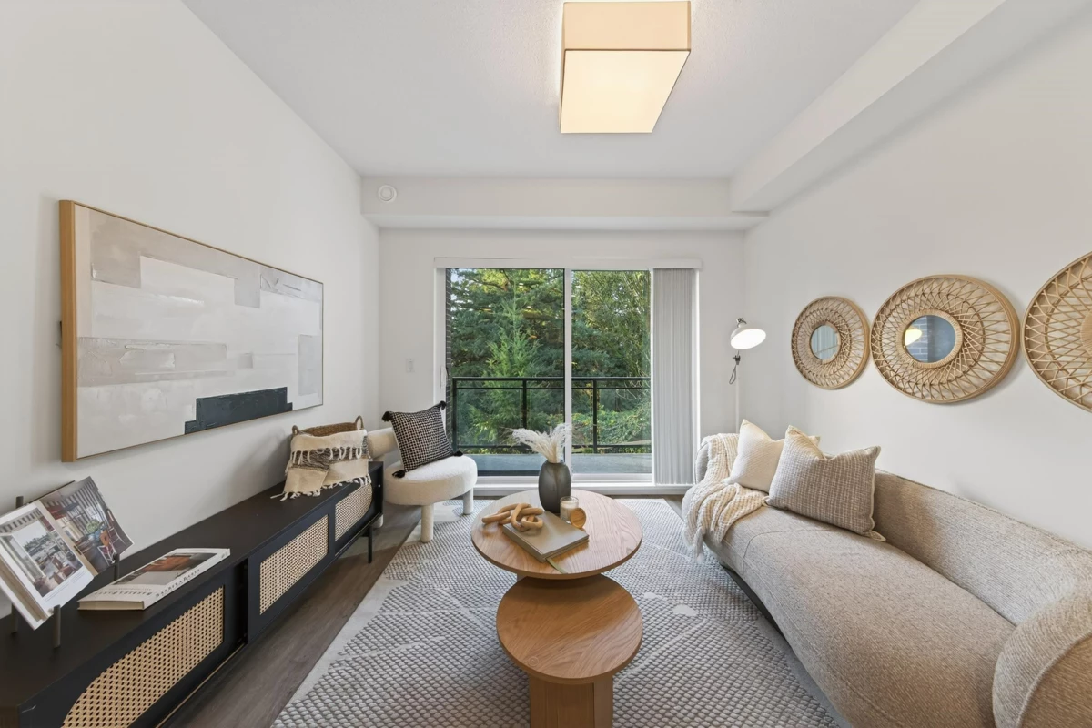 Sharp 1+Den, or potential Jr. 2 Bedroom residence! Well designed with an ideal open layout. This spacious home includes an L-shaped kitchen with three appliance and a large island/ bar area, seamlessly flowing into the dining space and living zone. The generous sized bedroom has plenty of room for comfort and style, while the spacious den can easily accommodate a single bed with storage, or serve as a serene home office. Three piece bathroom with double sink. Rarely does a property in this sought after neighbourhood at this value become available. Good distance to grocery stores, malls, reputable restaurants, and coffee shops etc. Great school district. Well maintained rental unit since completion, vacant and available for quick possession. Call to schedule a viewing today.