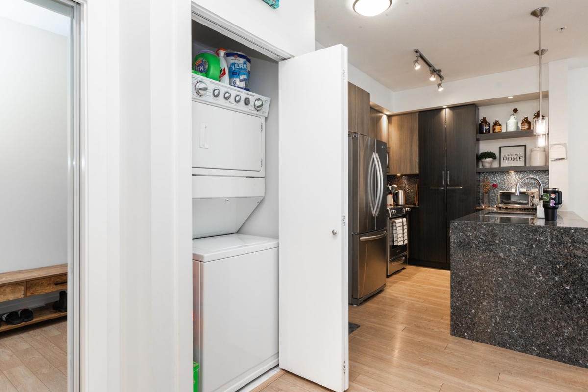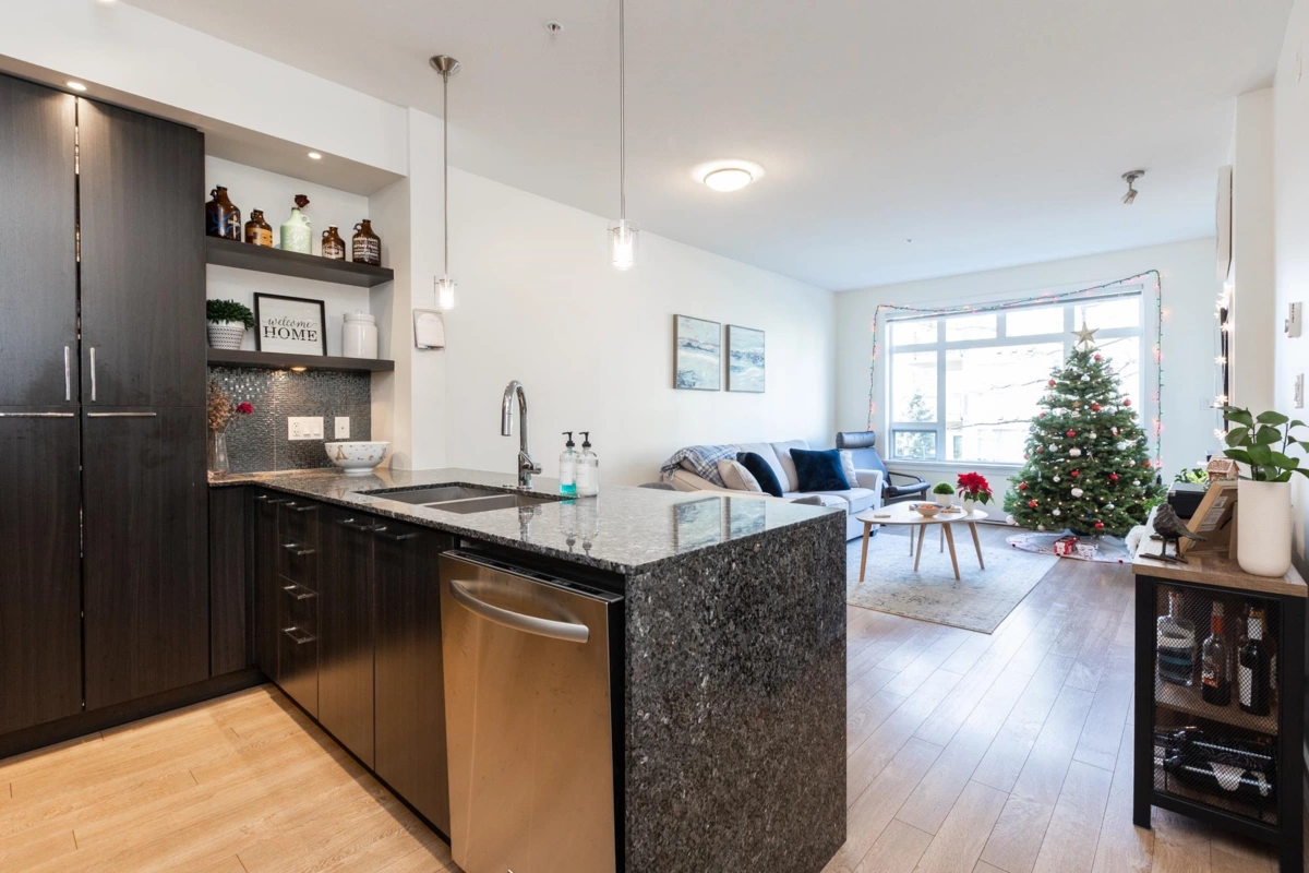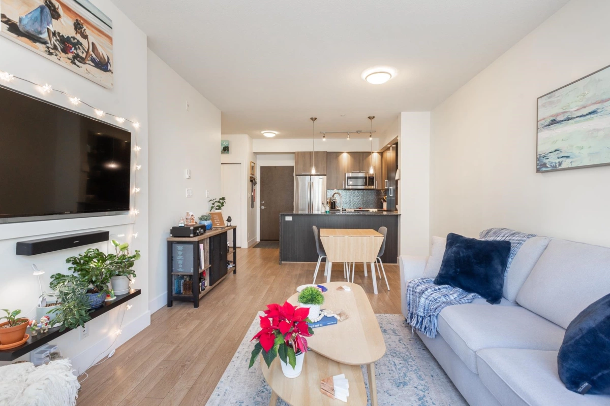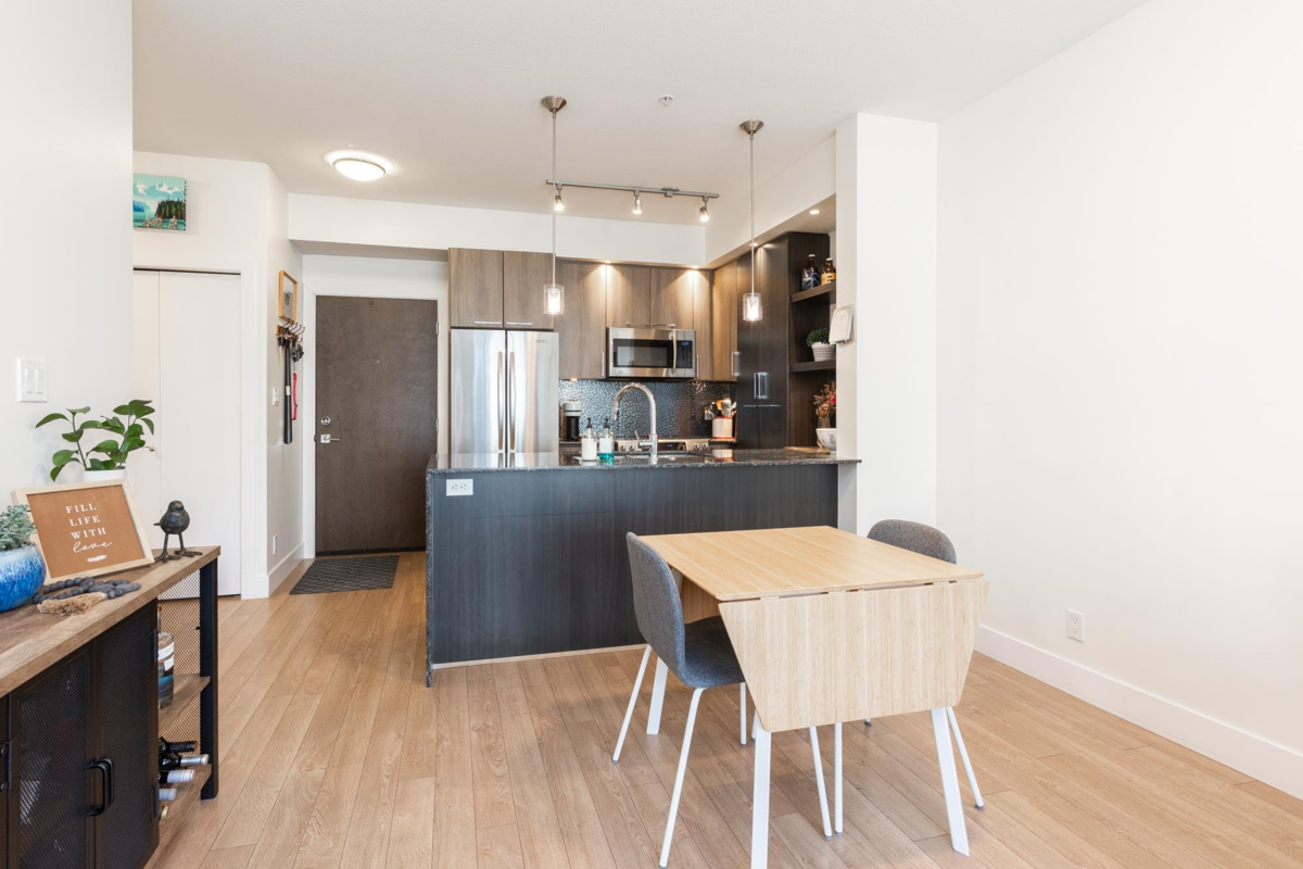 Elements, Willoughby's fabulous complex centrally located close to all amenities & allows you to reduce your carbon footprint. Two generous sized BDRMS, primary has walk in closet with custom built-ins. Open concept layout with sleek cabinets, quartz counters, high ceilings, oversized patio, window screens & lots of natural light. The Elements has a 9369 sq ft resort like clubhouse with chefs kitchen, billiards & bar room, media room, yoga room, lounge, fitness centre & guest suite. Elements is located within walking distance to the new sky train station coming to Langley. You won't want to miss this one.
