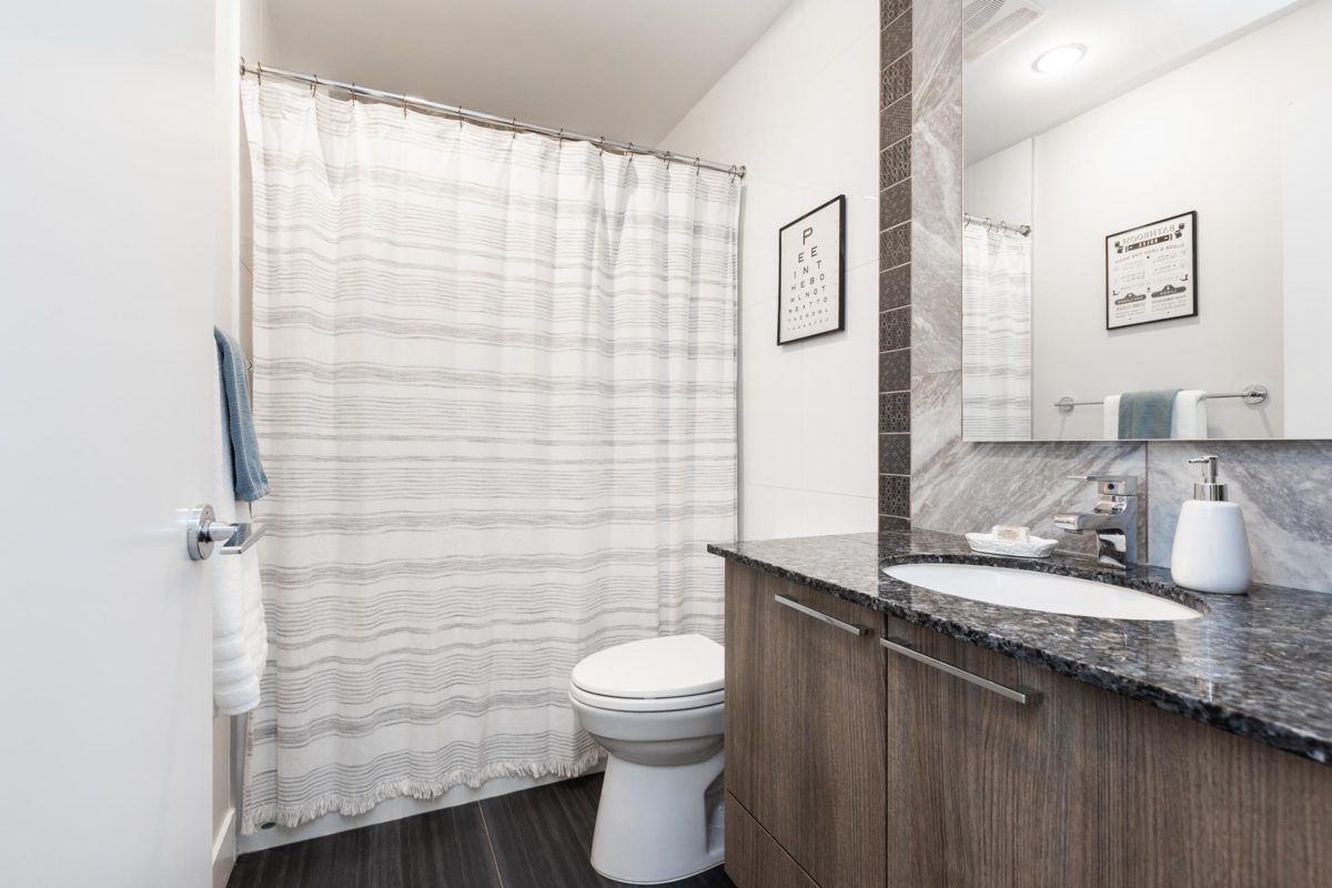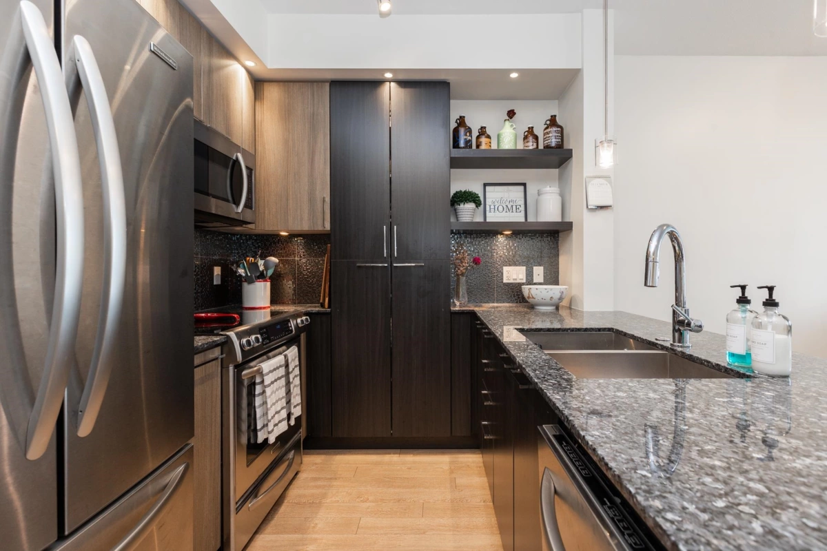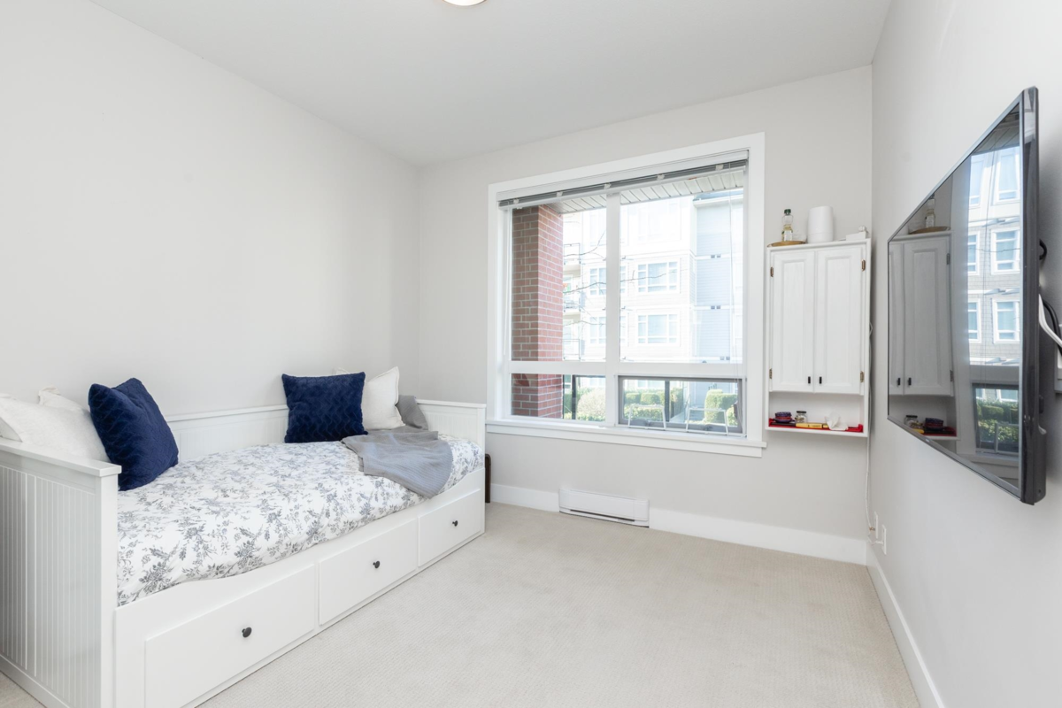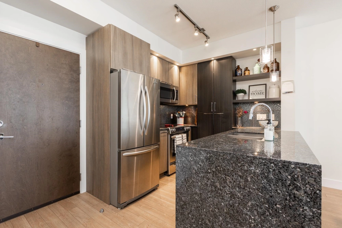 Elements, Willoughby's fabulous complex centrally located close to all amenities & allows you to reduce your carbon footprint. Two generous sized BDRMS, primary has walk in closet with custom built-ins. Open concept layout with sleek cabinets, quartz counters, high ceilings, oversized patio, window screens & lots of natural light. The Elements has a 9369 sq ft resort like clubhouse with chefs kitchen, billiards & bar room, media room, yoga room, lounge, fitness centre & guest suite. Elements is located within walking distance to the new sky train station coming to Langley. You won't want to miss this one.