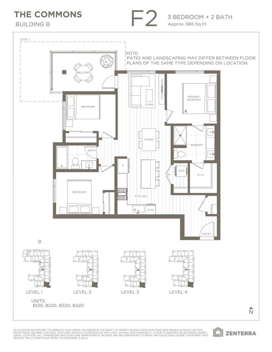 THE COMMONS, built by Zenterra Developments, where timeless elegance meets modern living. Centrally located in Willoughby, THE COMMONS is surrounded by major entertainment options, shopping destinations, and convenient transportation links. Experience the dynamic energy of Langley's growth while enjoying unparalleled convenience and accessibility THE COMMONS will be completed in Late 2025, and our deposit structure is a total of 5%. PC is located at #190 - Willoughby Town Centre Dr. Hours is Sat to Thur 12-5pm (Friday Closed) *Measurements are from our marketing material and it is an approximate, as this is a preconstruction.