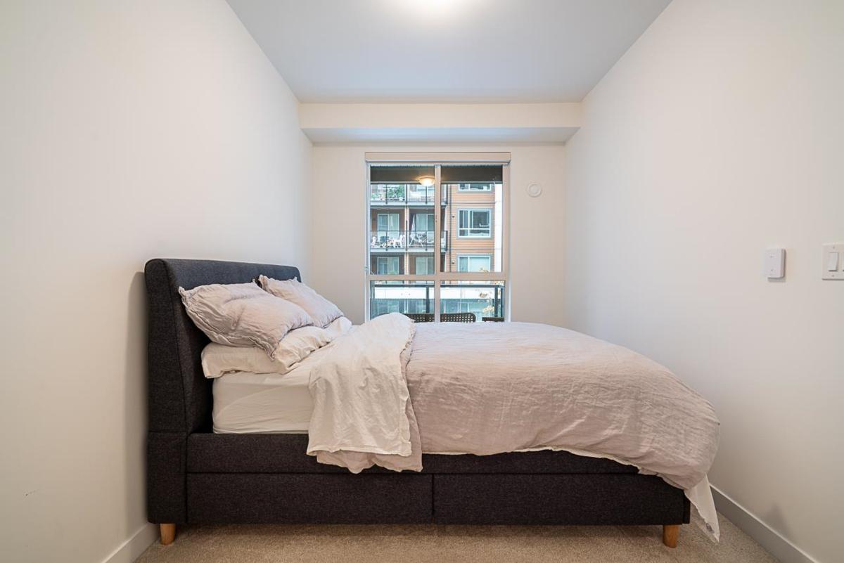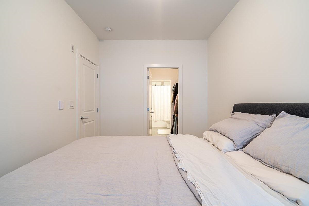 Prime Alexander Square location, steps from Willoughby Town Centre, restaurants, schools, transit, and highways. This like-new 1 bed plus den, 1 bath RDG home offers bright south-facing exposure overlooking the courtyard. The kitchen features quartz counters, Whirlpool stainless steel appliances, washer/dryer, microwave, and a Mysa smart thermostat. The bedroom and walk-in closet are carpeted for comfort. Parking access via 80th St. and through the adjacent townhouse with fob entry to the two-level parkade. Amenities include a gym, lounge, rooftop deck with BBQs, courtyard with fire pits, and community garden plots. Well-run strata includes hot water and caretaker, offering move-in-ready comfort and convenience. Open House Sat Jan 17th, 1-3 PM.