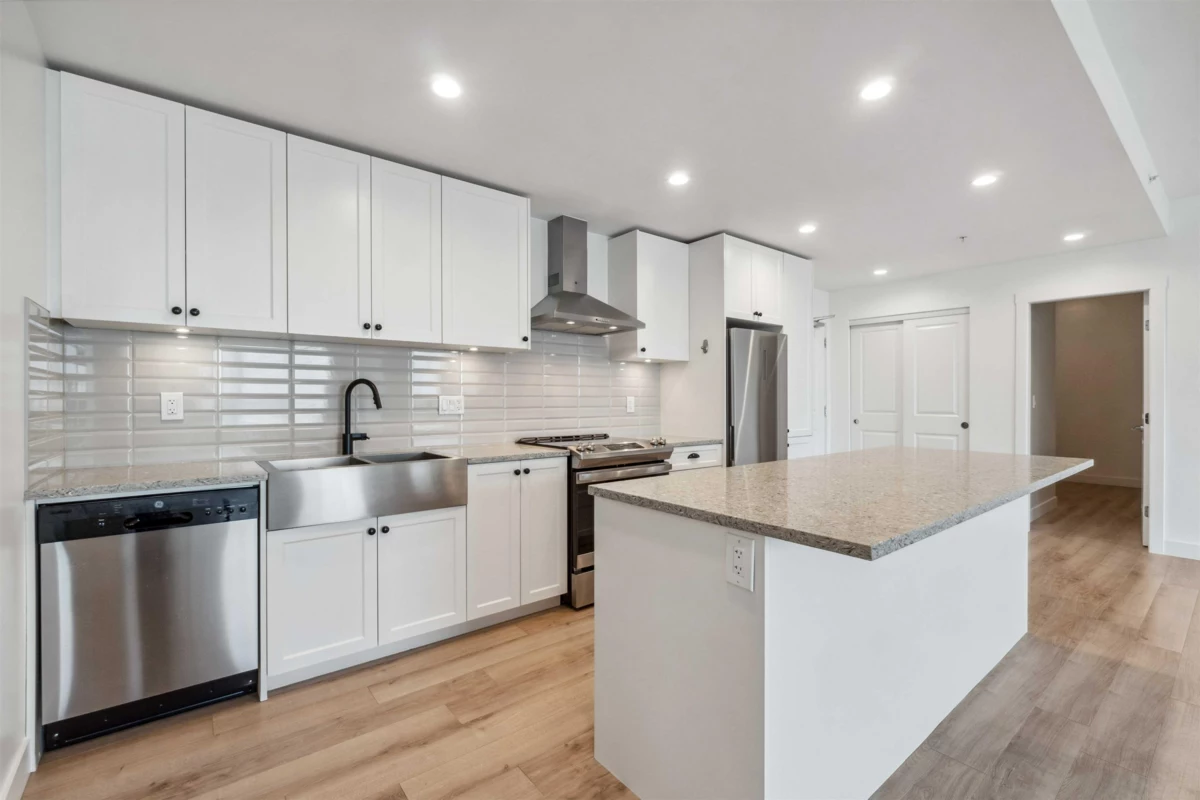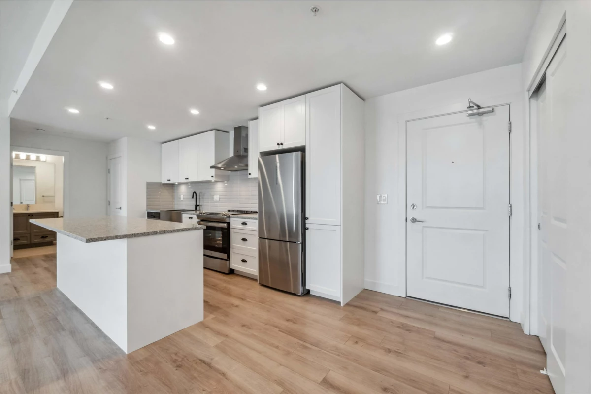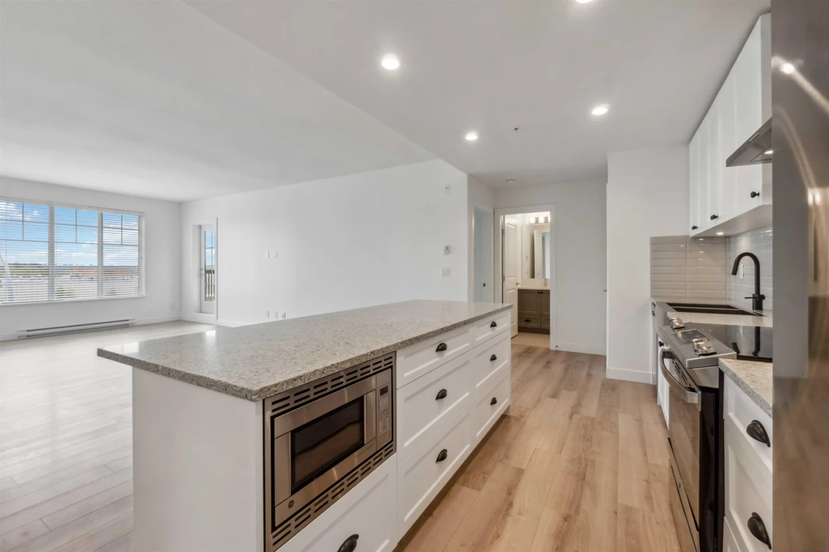 REDUCED PRICE!!! City assessment is 840k. SOUTH FACING BIG JR 3 beds/2 FULL baths in the most desired area of Willoughby. Only 2 years old building, this amazing 9 foot ceiling unit has a beautiful kitchen with SS appliances and quartz countertops. EXTRA convertible freezer/fridge included. The big windows bring all the light and life to the inside and makes it feel even bigger. Spacious bedrooms with walking closets and a JR 3rd bedroom (no window) with regular closet. Main bedroom has a private balcony, second balcony from living room for your barbecue. STUNNING VIEW of Mount Baker. 5 min from future skytrain station, best shopping and restaurant experience, parks, schools, daycare, and everything that you need to make your life comfortable.