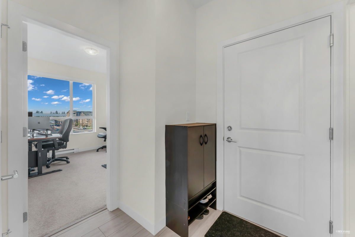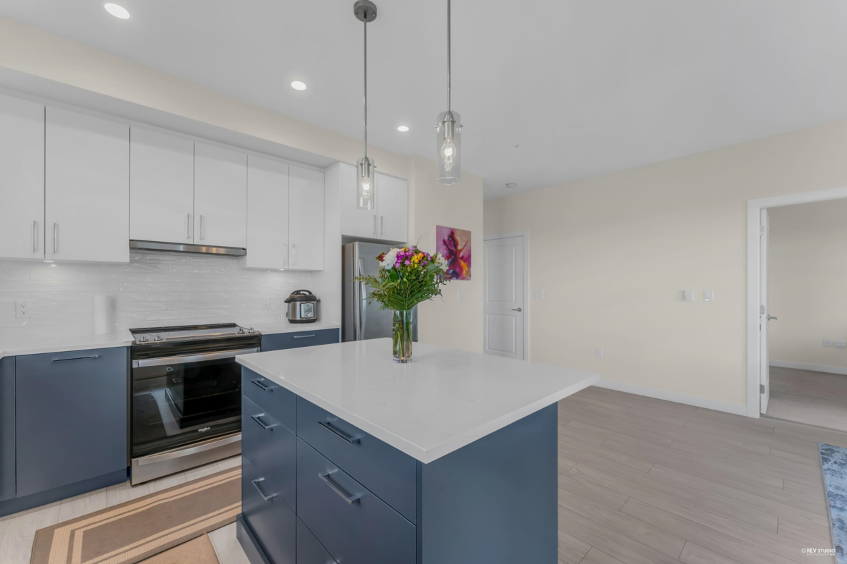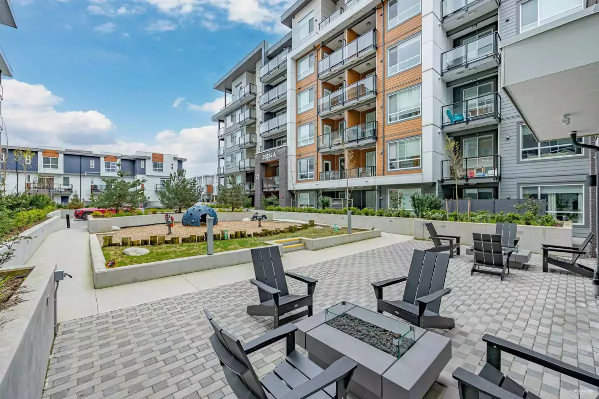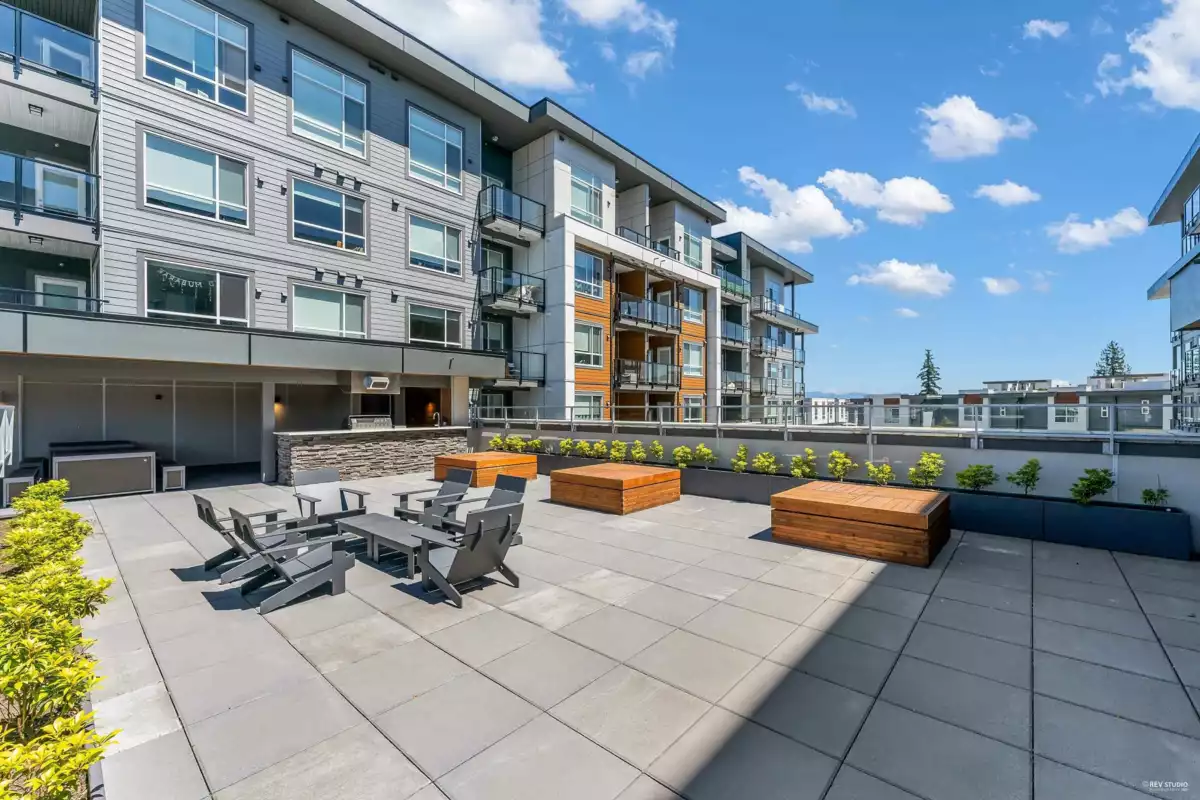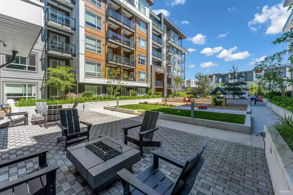 Welcome to Alexander Square in Langley's desirable Willoughby Heights Neighborhood. Enjoy this bright corner unit with unobstructed West facing views. Overlooking Willoughby Elementary School and steps away from Willoughby Town Centre, this community has all of the modern conveniences at your fingertips. The home itself features 2 bedrooms, 2 full bathrooms and close to 850 sq.ft of bright open concept living space. Enjoy designer finishes throughout including gourmet chefs kitchen with s/s appliances, quartz counters and soft close cabinetry, designer lighting, spa-like bathrooms, 9 ft ceilings throughout and wide plank flooring. BONUS: this unit comes with 2 side by side parking stalls. Amenities include a common room, gym, rooftop deck with BBQs and firepits. Book your showing today!