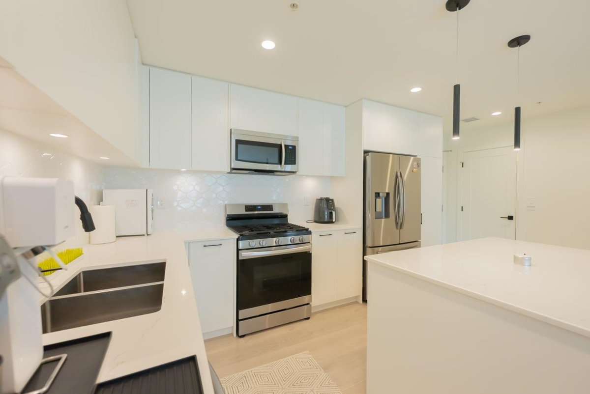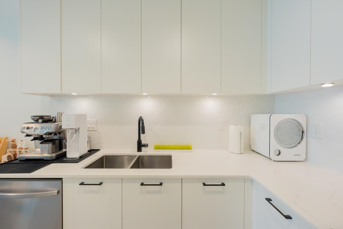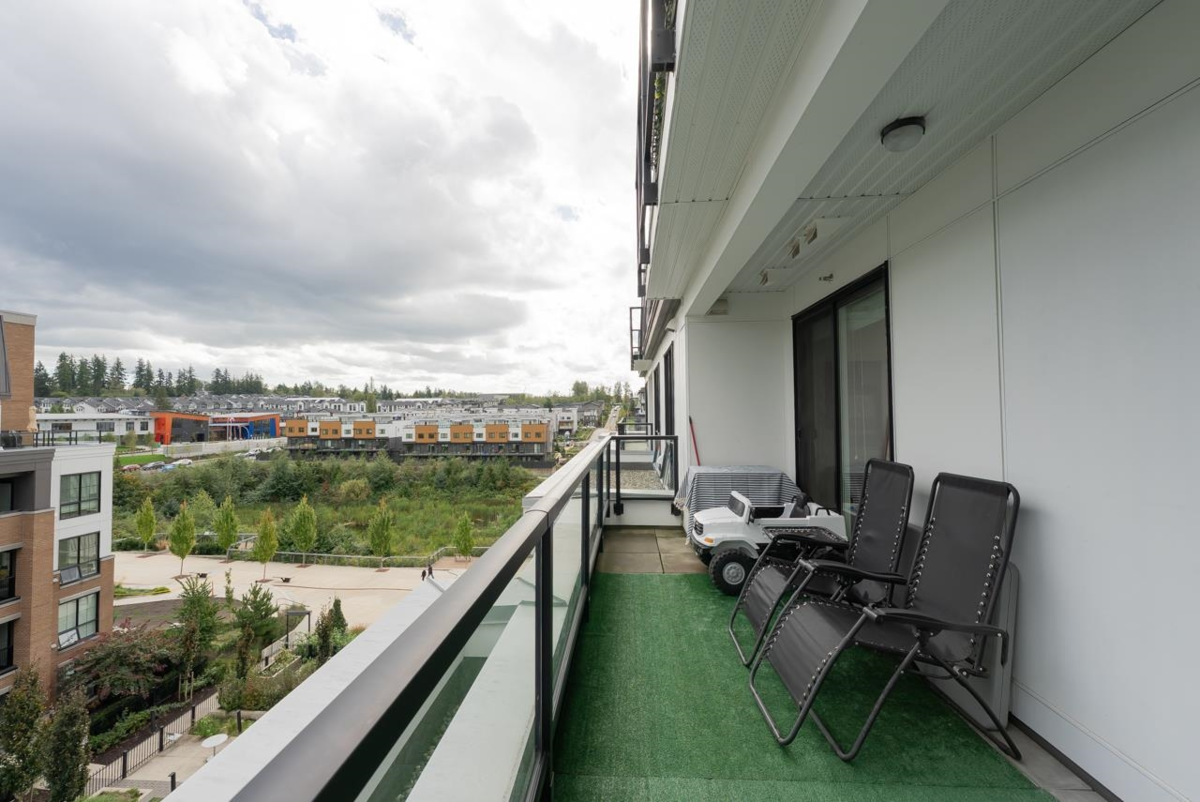 Welcome to Latimer Village by VESTA Properties. This stunning, well-maintained 2-bedroom, 2-bathroom plus den unit offers spacious living with large windows, 9' ceilings, quartz countertops, and high-end appliances. Enjoy the open-concept design filled with ample natural light. The large patio, accessible from both bedrooms, is perfect for sunbathing and enjoying summer days. An oversized parking stall is an added bonus. You'll appreciate the walking distance to Carvolth Exchange, restaurants, Josette Dandurand Elementary, Yorkson Creek Middle School, and R.E. Mountain Secondary. Plus, you're conveniently close to Highway 1, Costco, Walmart, Willowbrook Mall, and Willoughby Town Centre.