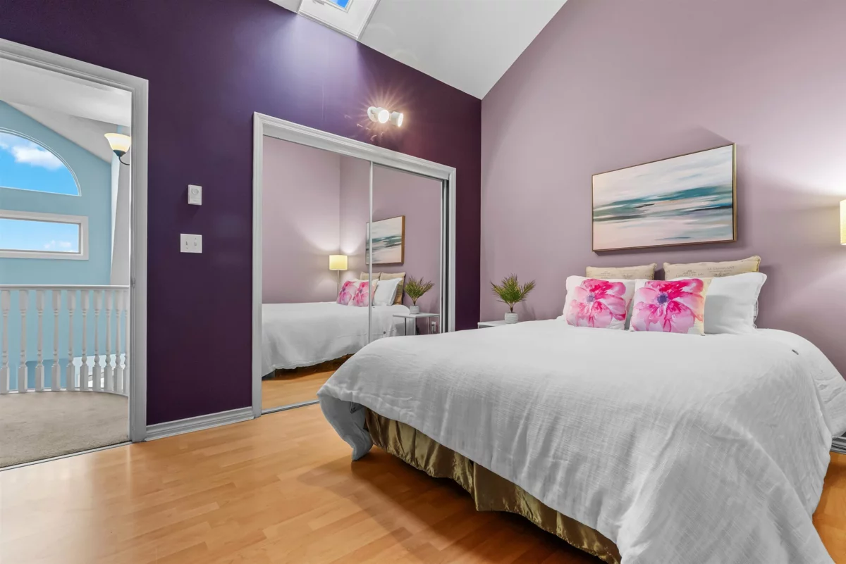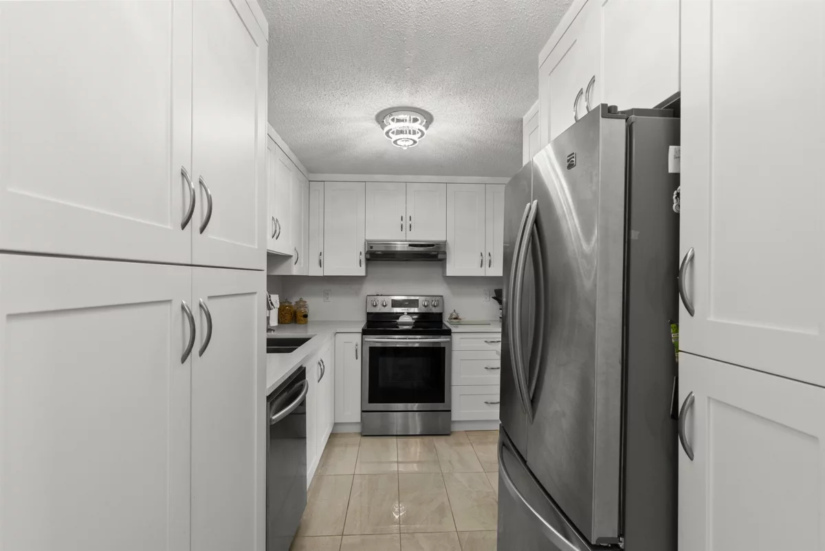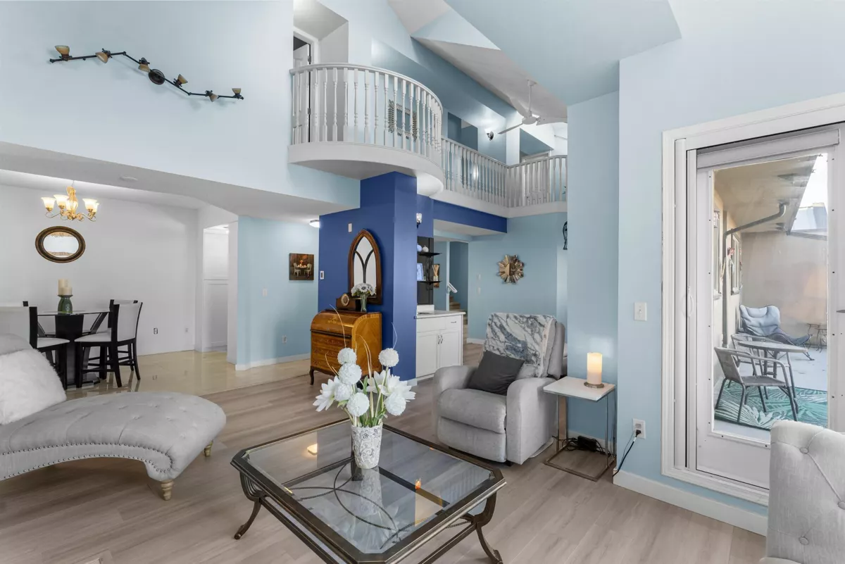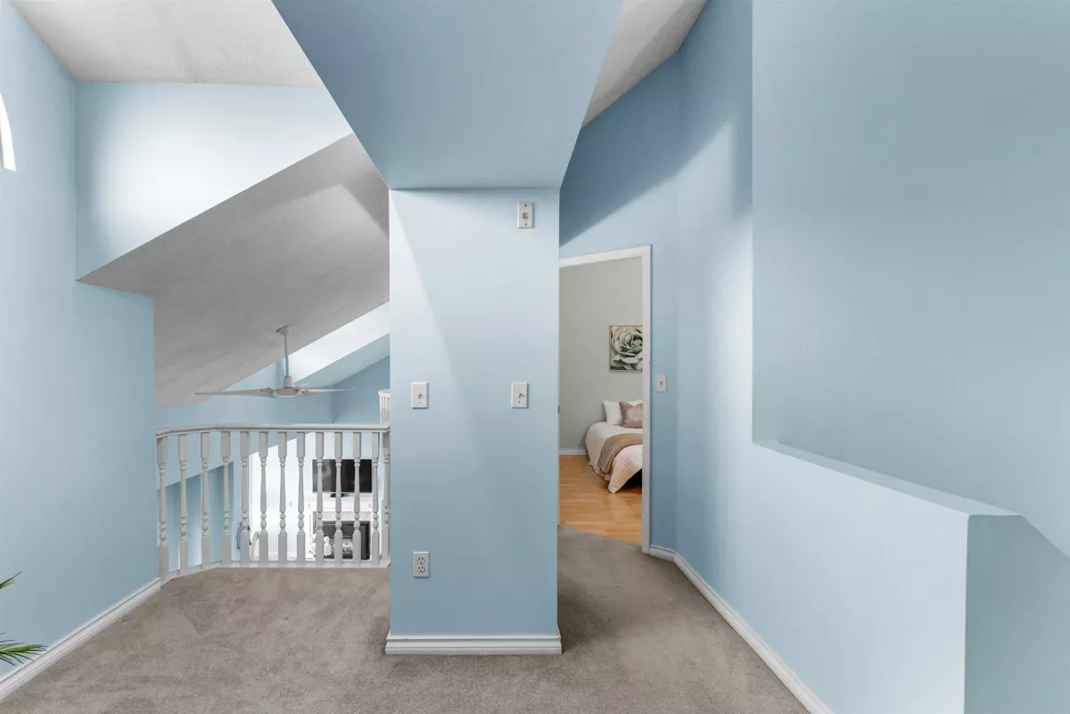 Two-Level Penthouse with access from the 5th and 6th floors in one of Ladner’s only concrete, rain screened buildings! Bright and airy with 1878 sq.ft. of living space, 19-ft vaulted ceilings, and two-story windows that fill the home with natural light. The main level features a brand-new kitchen and heated floors, spacious living and dining areas, cozy gas fireplace, and primary bedroom plus ensuite. Upstairs offers two additional bedrooms or office/flex space with its own private entrance. Enjoy North Shore mountain views, a large balcony, and an unbeatable central location just steps to shops, dining, and parks! Two parking spots! Pets allowed w/restrictions (1 dog and 2 cats)