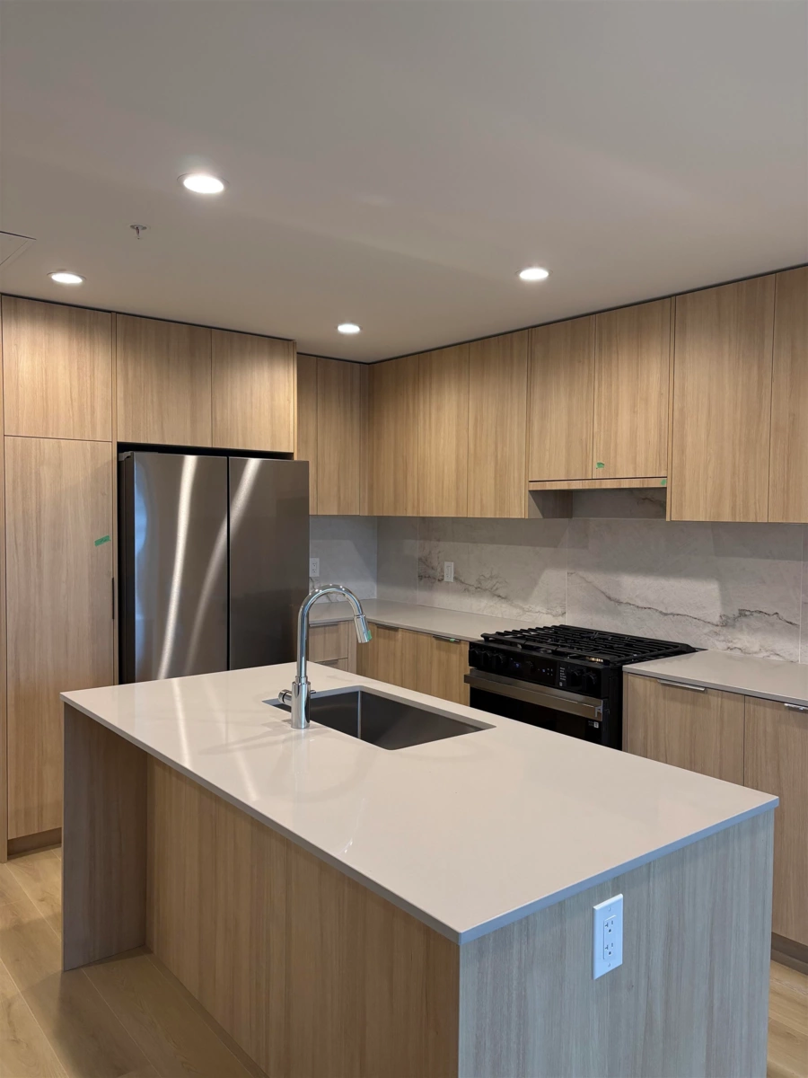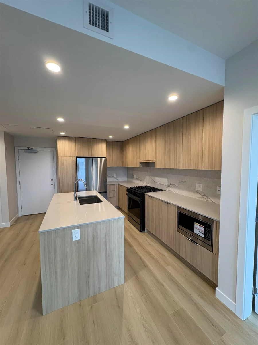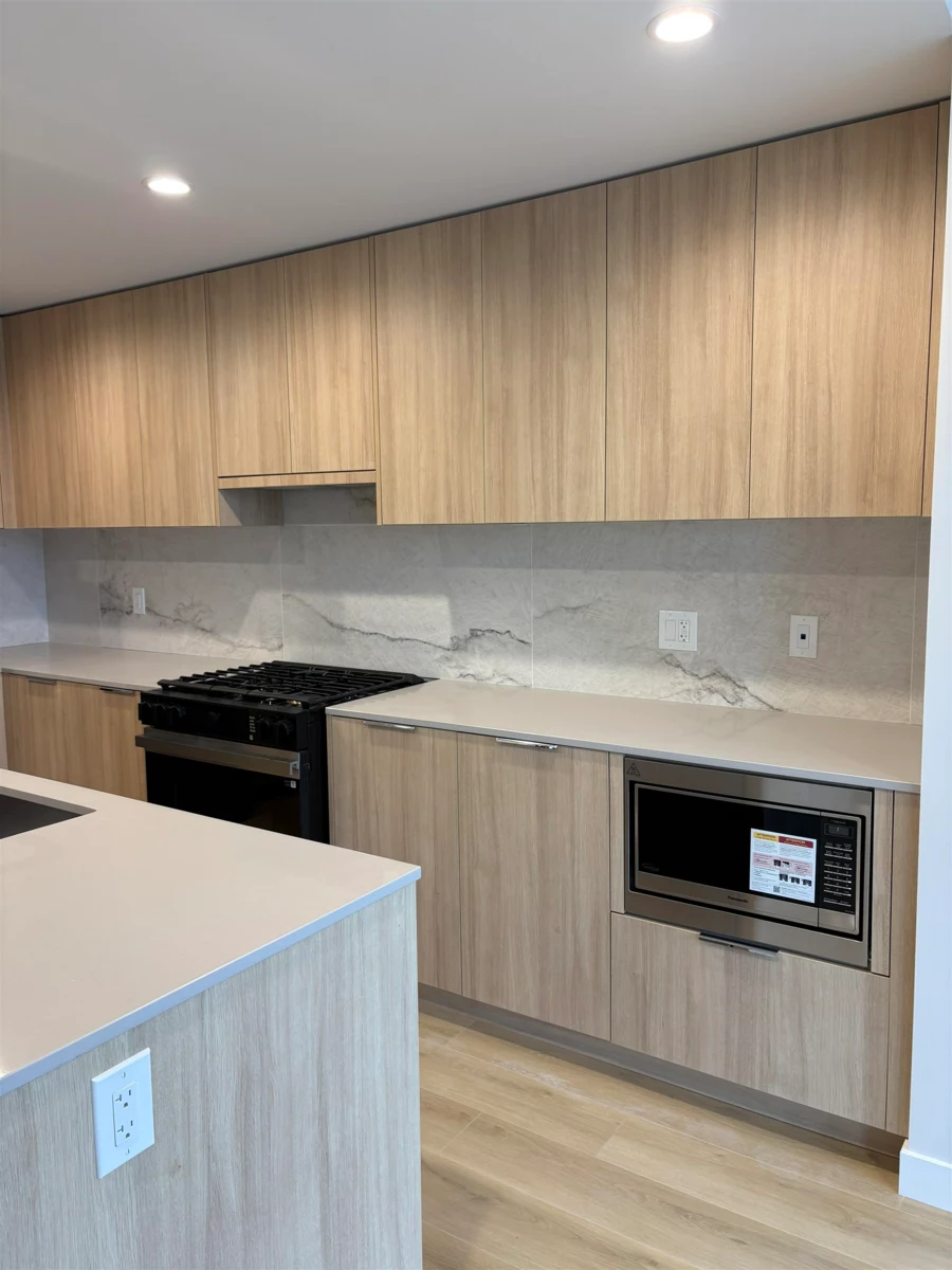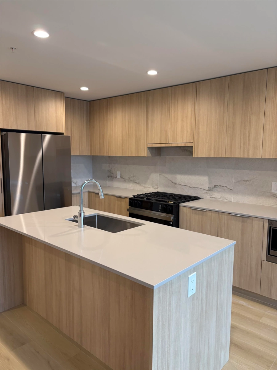 Experience elevated living at South Village Condos by VESTA in prestigious Latimer Heights. Perfectly positioned near top schools, parks, shopping, transit and Hwy 1 for easy commuting and convenience. This 2 bed, 2 bath residence features a layout with bedrooms on either side, large windows and planned to have a Jan-Feb 2026 completion. One of only two homes (plan C7) offering the LARGE east-facing deck. Finished in a timeless designer palette with premium stainless steel appliances including 5 burner gas range, a large quartz island, full-height quartz backsplash and AC in the living room. Primary ensuite features dual sinks, oversized frameless glass shower, and elegant tile that flows from shower to bathroom floor and up the wall behind the vanity. 2 parking 1 storage locker!