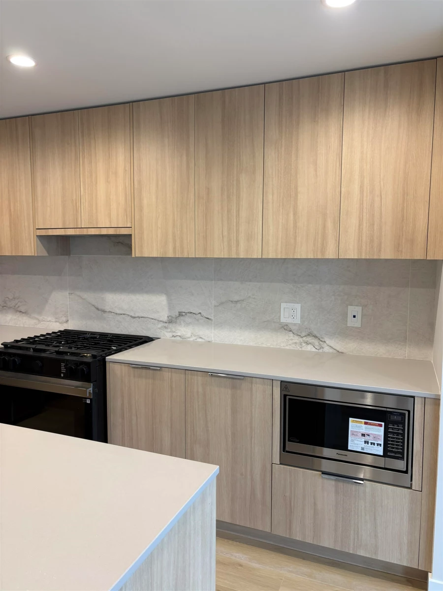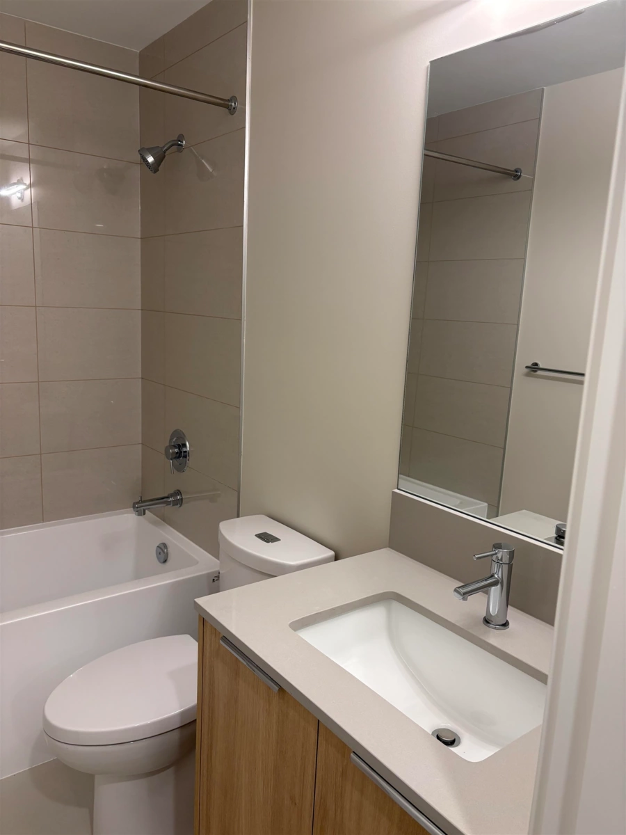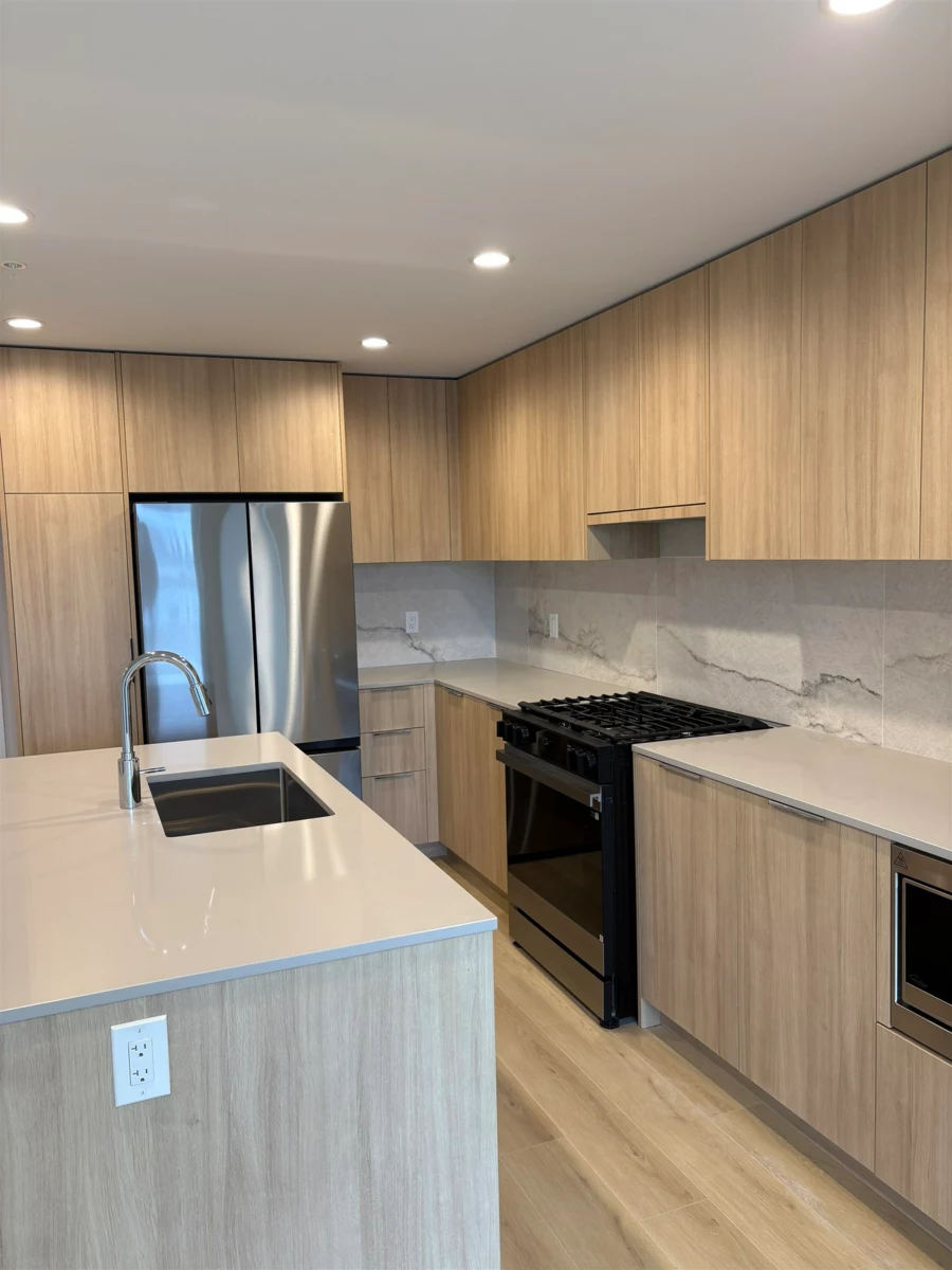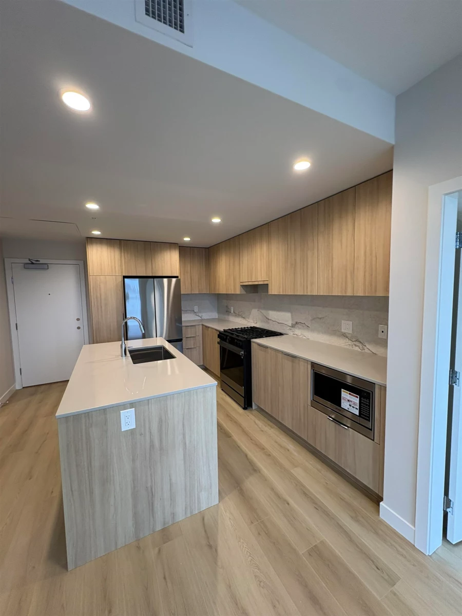 Experience elevated living at South Village Condos by VESTA in prestigious Latimer Heights. Perfectly positioned near top schools, parks, shopping, transit and Hwy 1 for easy commuting and convenience. This 2 bed, 2 bath residence features a layout with bedrooms on either side, large windows and planned to have a Jan-Feb 2026 completion. One of only two homes (plan C7) offering the LARGE east-facing deck. Finished in a timeless designer palette with premium stainless steel appliances including 5 burner gas range, a large quartz island, full-height quartz backsplash and AC in the living room. Primary ensuite features dual sinks, oversized frameless glass shower, and elegant tile that flows from shower to bathroom floor and up the wall behind the vanity. 2 parking 1 storage locker!