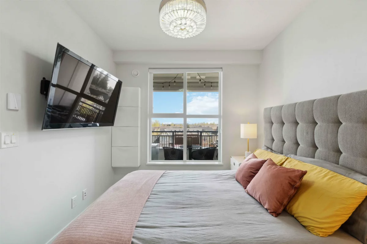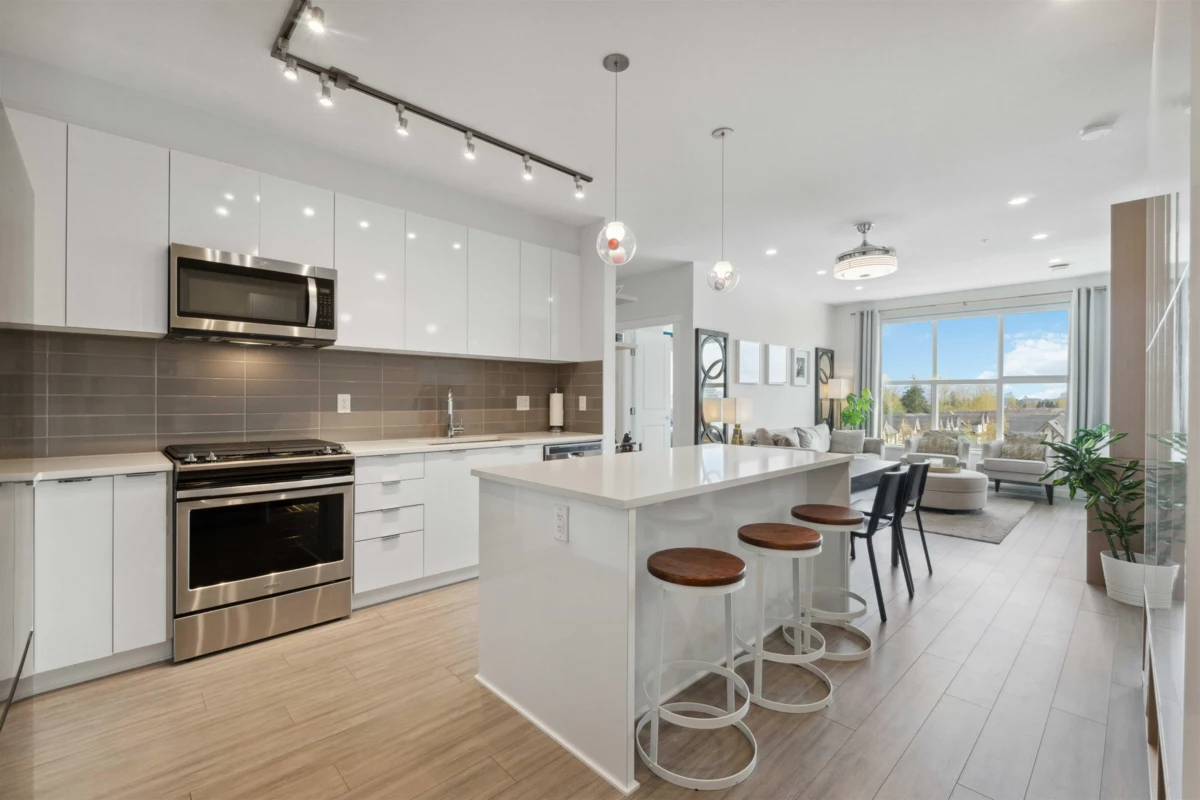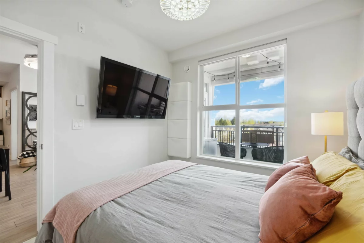 Best in SHOW!!Union Park by Polygon! This Upgraded 2-bed, 2-bath & Den condo offers one of the most sought-after floor plans in the building ,with custom cabinetry, upgraded lighting, smart thermostats, and premium window coverings all included. A perfect blend of comfort and design in a prime Langley location ideally nestled in the Heart of Yorkson w Parks, Elementary, Middle school, R.E Mountain, Shopping, Restaurants, Transit, etc! This AMAZING home offers 895 Sq ft of Spacious Living , S/S Appliance, Gas Stove, Quartz Countertops,2 Parking, 1 Storage unit, Balcony w Mountain Views! Enjoy your 5 star Clubhouse w Outdoor Pool, GYM, Exercise room, Hot tub, Playground, BBQ area.