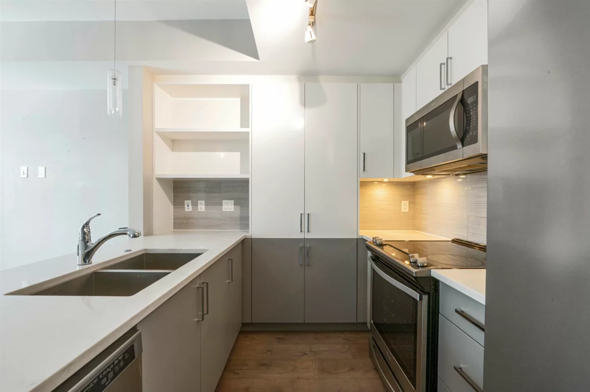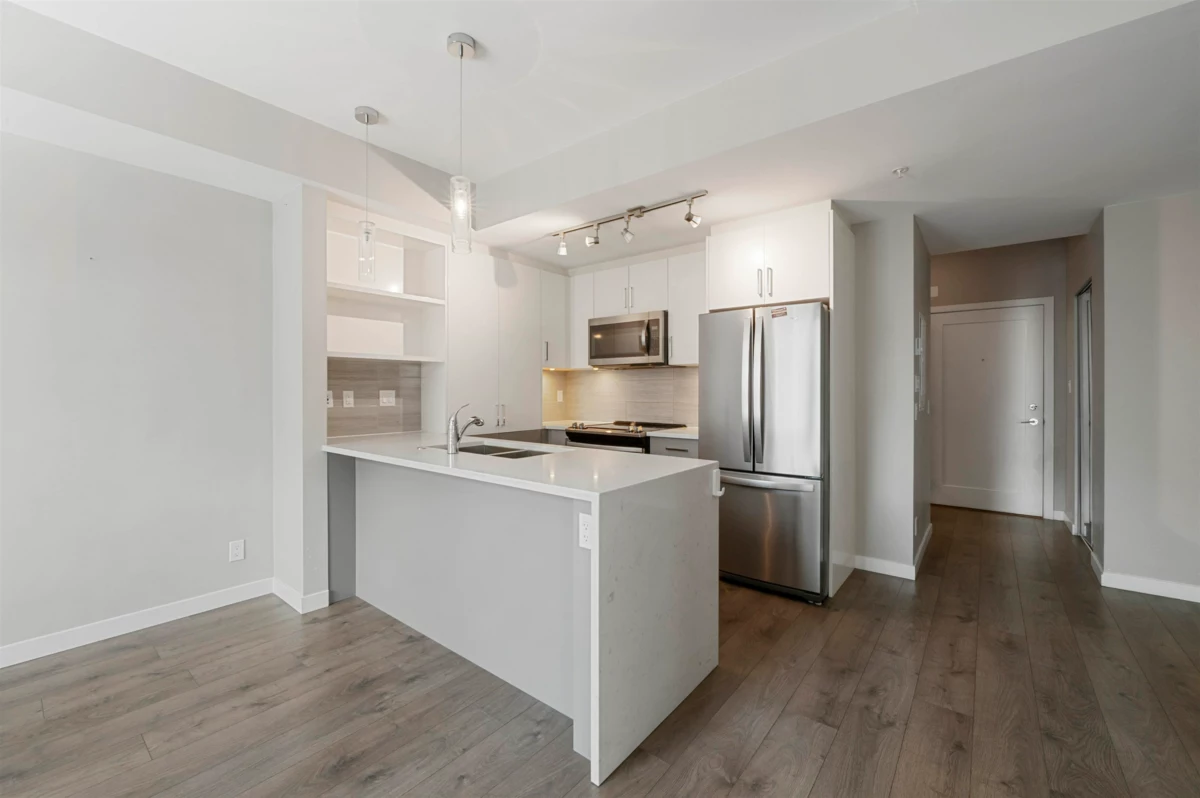 Welcome to Elements in the heart of Willoughby! This 1 bed, 1 bath condo on the first floor offers a bright, open layout with 9-ft ceilings, large windows, and a modern kitchen with quartz counters and stainless steel appliances. Enjoy in-suite laundry, a private balcony, and 1 parking stall (#347) plus a storage locker (#C-7). Steps to shops, transit, and schools with access to a top-tier clubhouse.