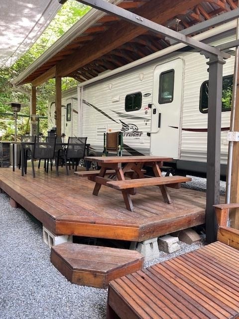 Turnkey Getaway in Emory Creek Co-op! Lot + Trailer + Outdoor Living Upgrades. No more campsite reservations!! Camp/ Glamping when you wantll Tired of the city hustle? Dreaming of a weekend retreat surrounded by nature but still close to home? This beautifully equipped recreational lot (D5) in Yale, BC is just 10 minutes from Hope and offers everything you need to relax, unwind, and enjoy the outdoors - all year round. Here's what's waiting for you: 2015 Jayco Jay Flight 32BHD - in like-new condition, barely used and protected from weather under a permitted Ramada (FVRD approved). Cedar deck for outdoor dining and lounging, BBQ gazebo - ready for grilling in any season. Pergola cover for extra shade and comfort. Granite-topped island - perfect for prepping meals or entertaining guests.