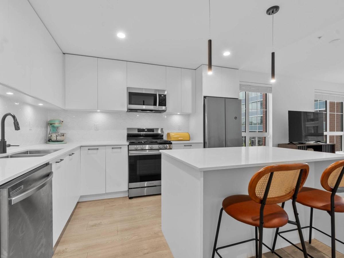 CENTRAL LOCATION | 2 BED / 2 BATH | 950 SQ/FT | Located in Willoughby's desirable Latimer Village, this corner unit embodies modern living at its finest, providing spaciousness, elegance & convenience all in one package! With 9' ceilings & expansive windows, natural light floods this unit enhancing the overall charm & comfort. A beautiful kitchen w S/S appliances, Quartz countertop & hardwood style laminate throughout. A private & cozy east-facing balcony (away from the busy 200 St) is the ideal place for you to unwind & enjoy your morning coffee w/ the sunrise. Nestled in the heart of Latimer Village, you won't have to go far living here. Only minutes away from Highway 1 & Carvolth Park + Ride w/ express bus to skytrain & surrounded by shops, restaurants, offices, amenities & more!