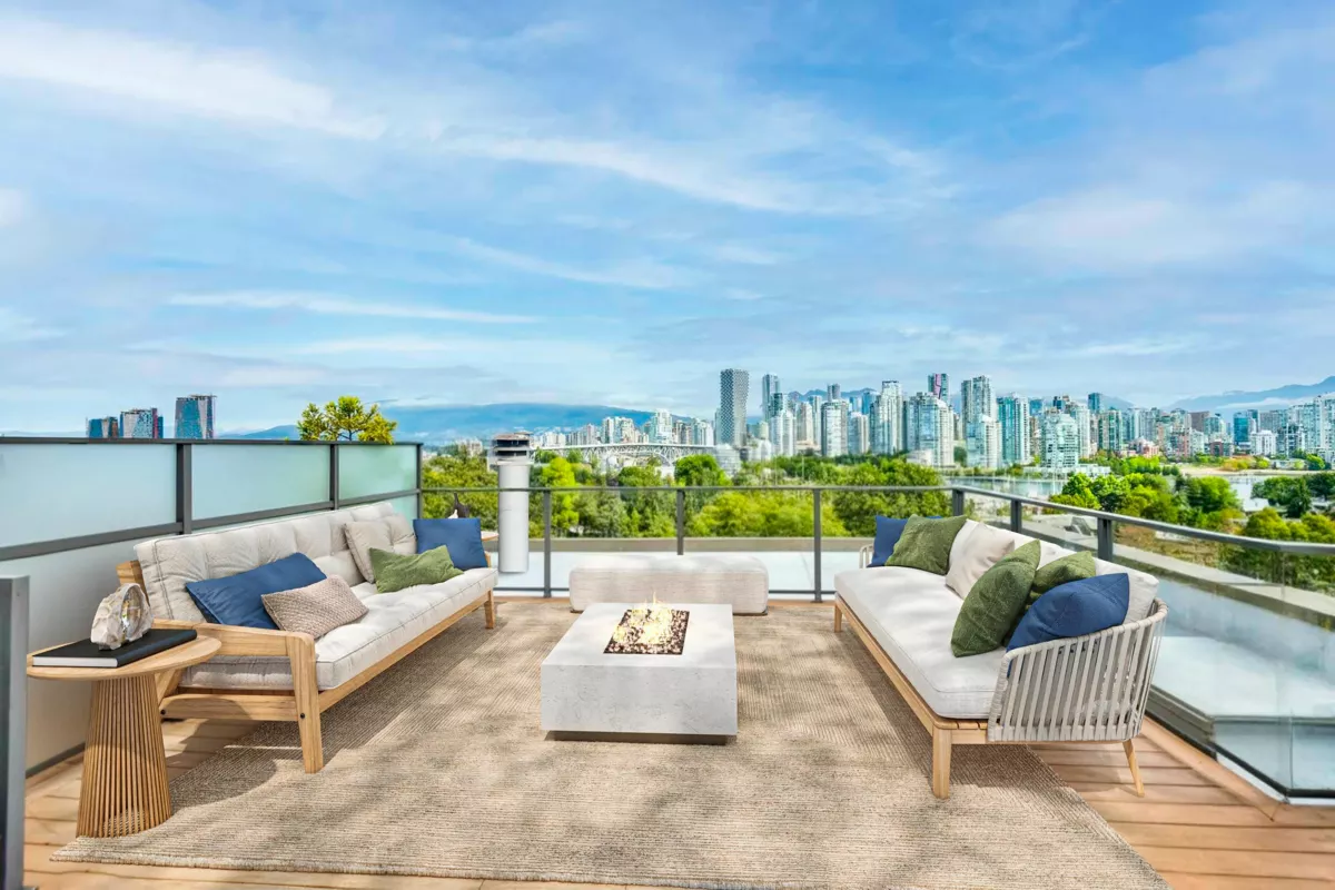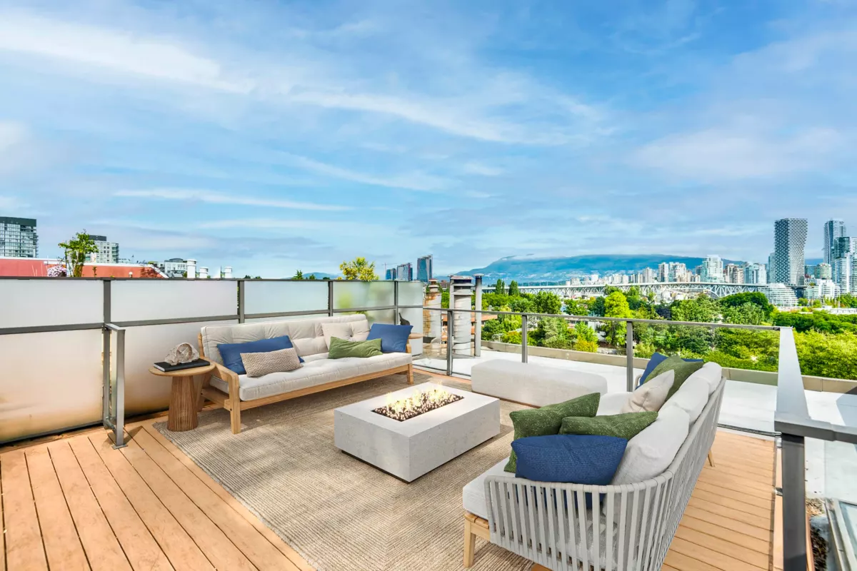 Portofino, a boutique complex comprising seven homes located on West 7th quiet tree-lined avenue. Unit G boasts over 1500sqft of living space overlooking False Creek with expansive city, mountain & water views. The home offers hardwood floors, gas fireplace stainless steel appliances, in-suite laundry & ample storage. Head up to your private rooftop deck extending your living space over 400sqft and expanding your views from English Bay to Science World. Bonus, a spacious basement with 9' ceilings, perfect for storage or a blank canvas awaiting your design ideas. One secure parking included. One pet and rentals permitted. Central location, steps to the Seawall, Granville Island, Broadway amenities, transit lines and moments to downtown. Available, easy to show by appointment.