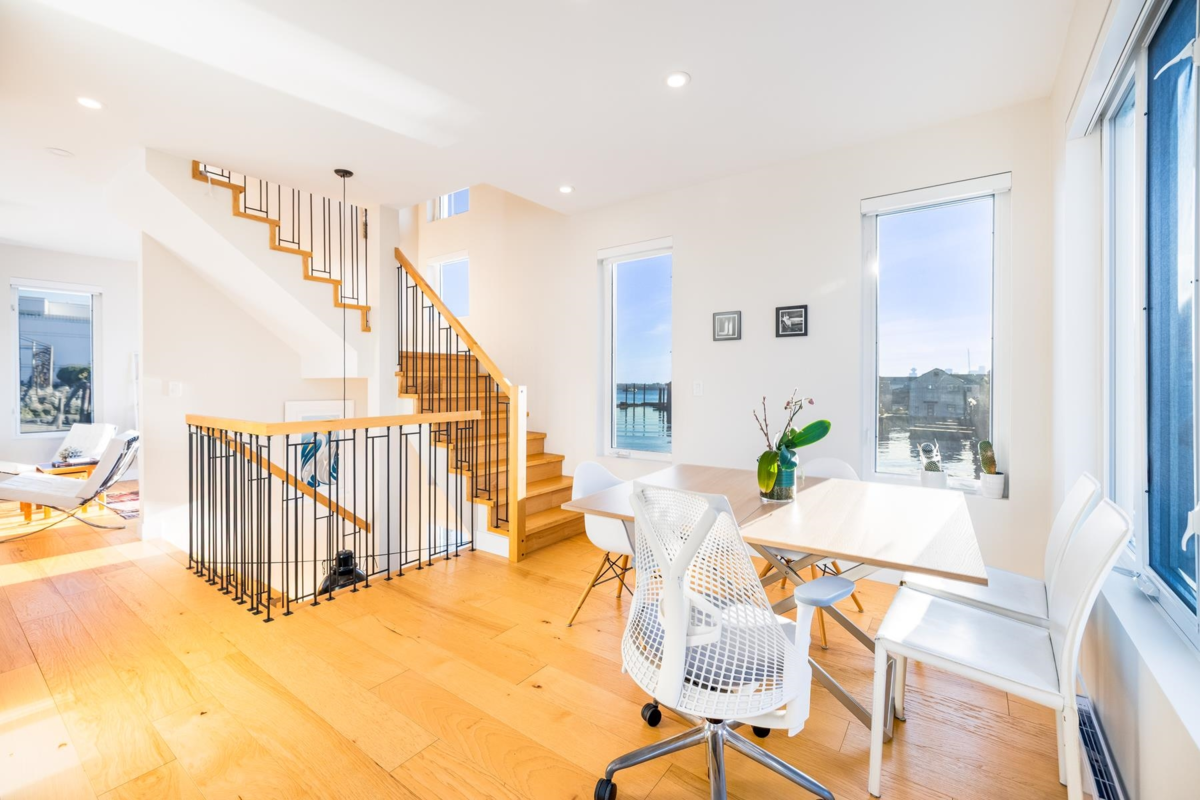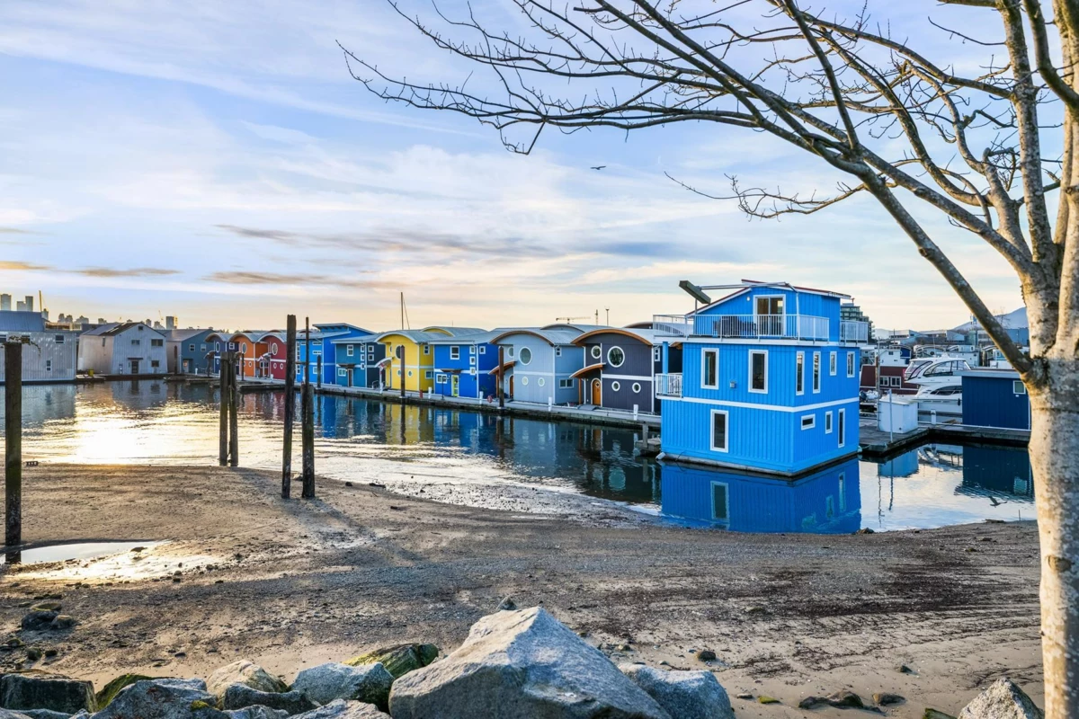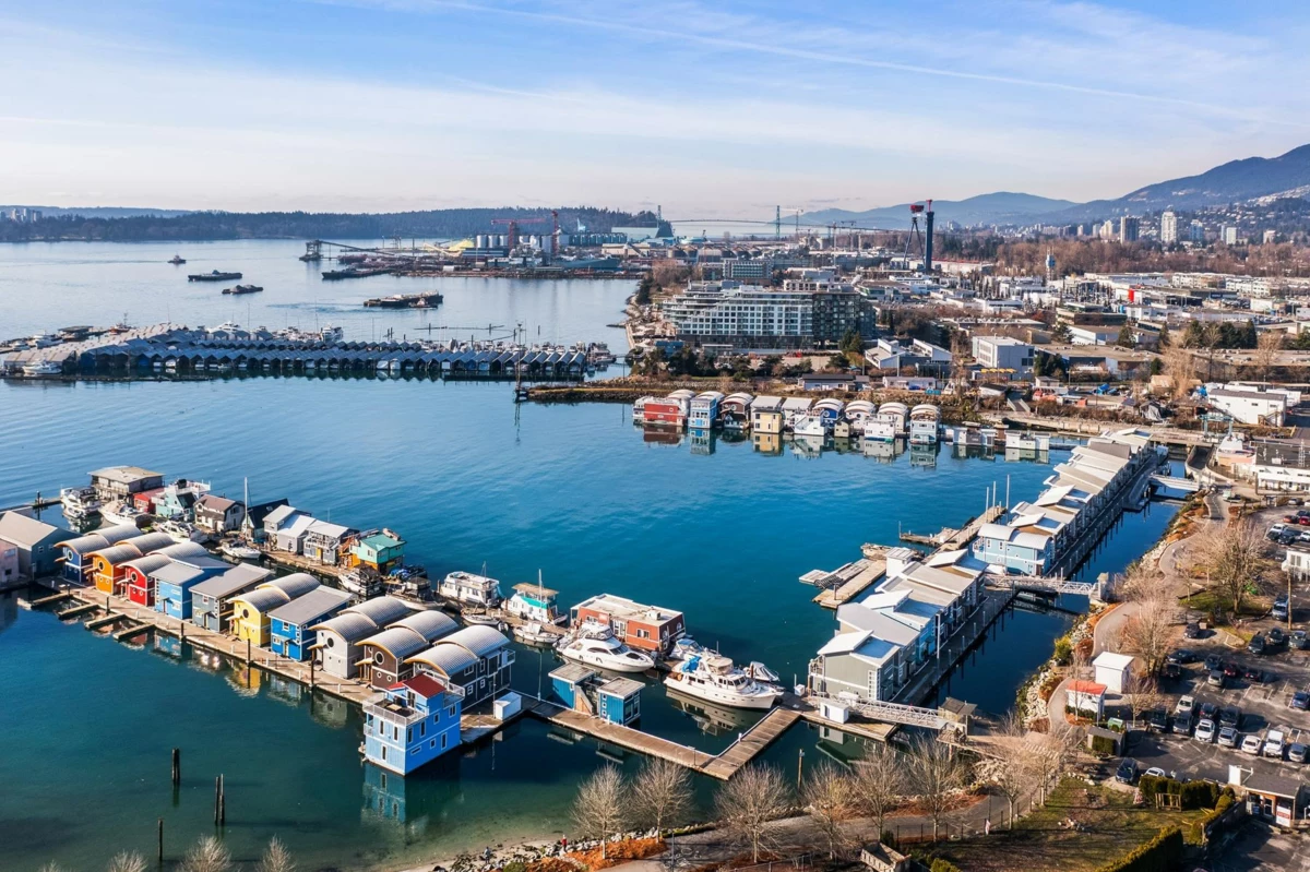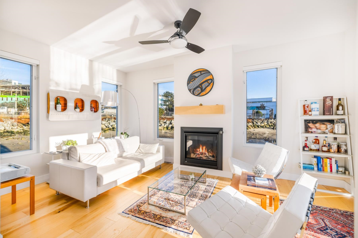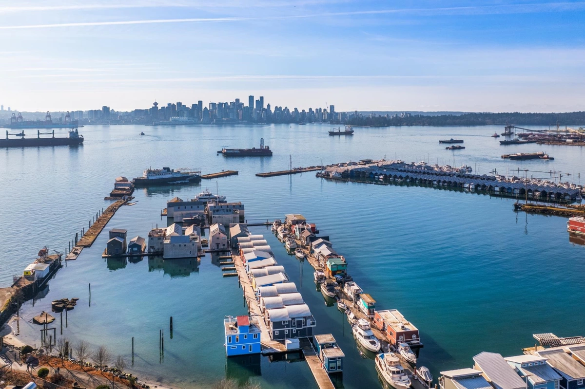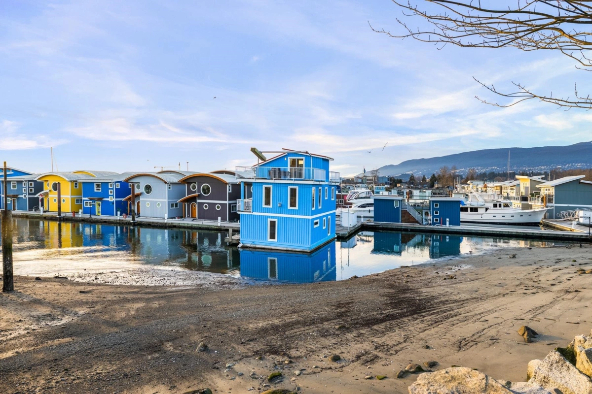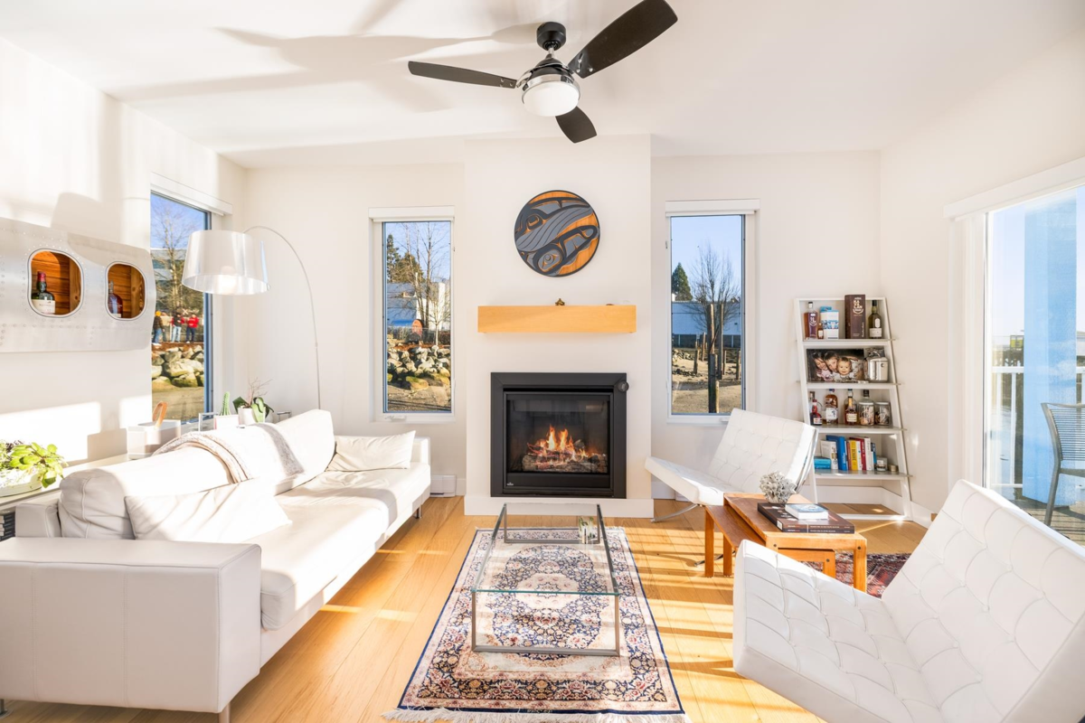 Experience the ultimate waterfront lifestyle at Mosquito Creek Marina in this newer built floathome designed for relaxed West Coast living. The highlight is a spectacular 528 sq ft rooftop deck with panoramic views, complete with water, power, and gas for effortless entertaining or relaxing year-round. Smart reverse-plan layout maximizes light and views. Entry level offers a spacious foyer, two bedrooms, elegant 5-piece bath with separate soaker tub and shower, plus laundry and storage. Upstairs features open-concept kitchen and dining, pantry, powder room, and bright living room with gas fireplace opening to a sunny south-facing deck. Bonus 192 sq ft flex room ideal for office, guests, or studio. Pets and rentals, including AirBnB, allowed in this family-friendly community.