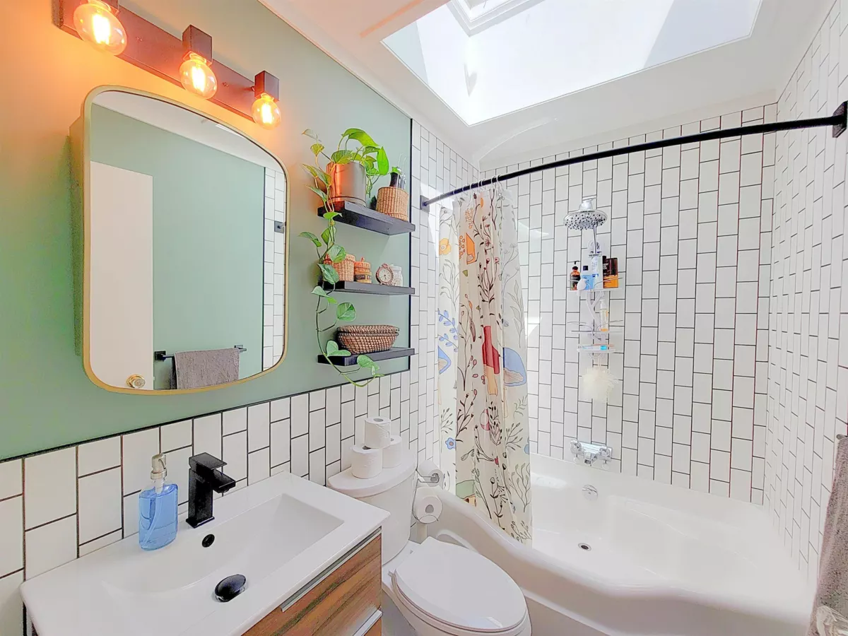 Super cute top-floor 1-bed at Fairview Gardens with sky-high ceilings. This one is just bursting with charm. Beautiful bathroom reno completed 2024 and brand new dishwasher bonus. Very spacious bedroom easily fits a king. Updated skylights bring the light pouring in. And skylights open for optimal air circulation. Wonderful balcony for bbq or quiet moments. Other building updates include roof, some piping, and elevator modernization. Maintenance fee includes heating. Incredibly central location but also an extremely quiet tree-lined street. Close to Granville, Broadway, and Cambie. Right by L'École Bilingue. Full-size parking and full-size storage included. One cat allowed.