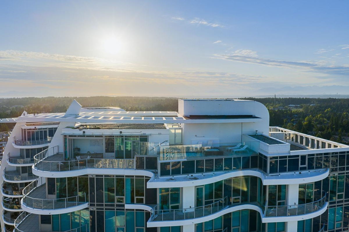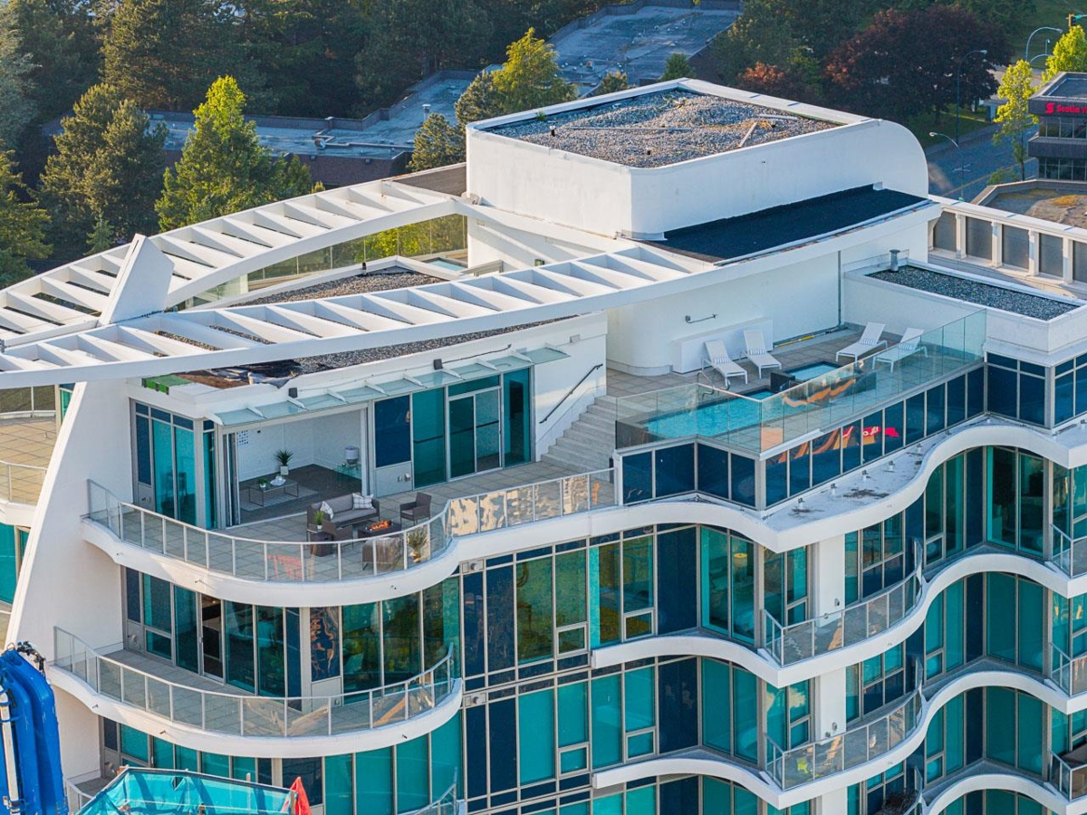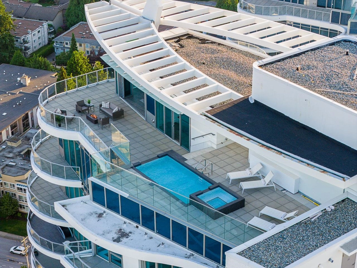 Experience the pinnacle of seaside-urban living in this 2-story Penthouse at White Rock’s Foster Martin. Stunning 3,800 sqft residence features 4 spacious bedrooms, 5.5 baths, a den, flex area and an upper loft suite. Revel in the panoramic ocean and mountain views, soaring 11’ ceilings, floor-to-ceiling windows, a chef's kitchen with Miele appliances, spa-like baths, and luxurious finishings throughout. Enjoy 2,400 sqft of outdoor living with 4 main floor balconies and a spectacular rooftop deck with cascading waterfall hot tub and pool, fire table area, and outdoor kitchen rough-in. Includes a private triple garage with storage and resort-style amenities: indoor/outdoor pool, sauna/steam room, gym, lounge, games room and concierge. The perfect harmony of luxury, location, and lifestyle!