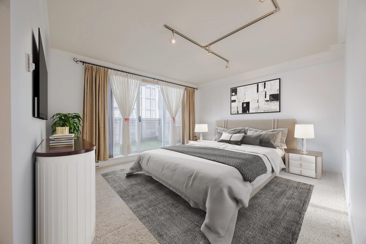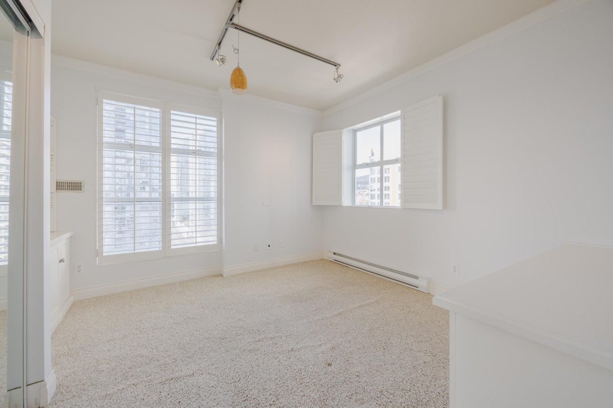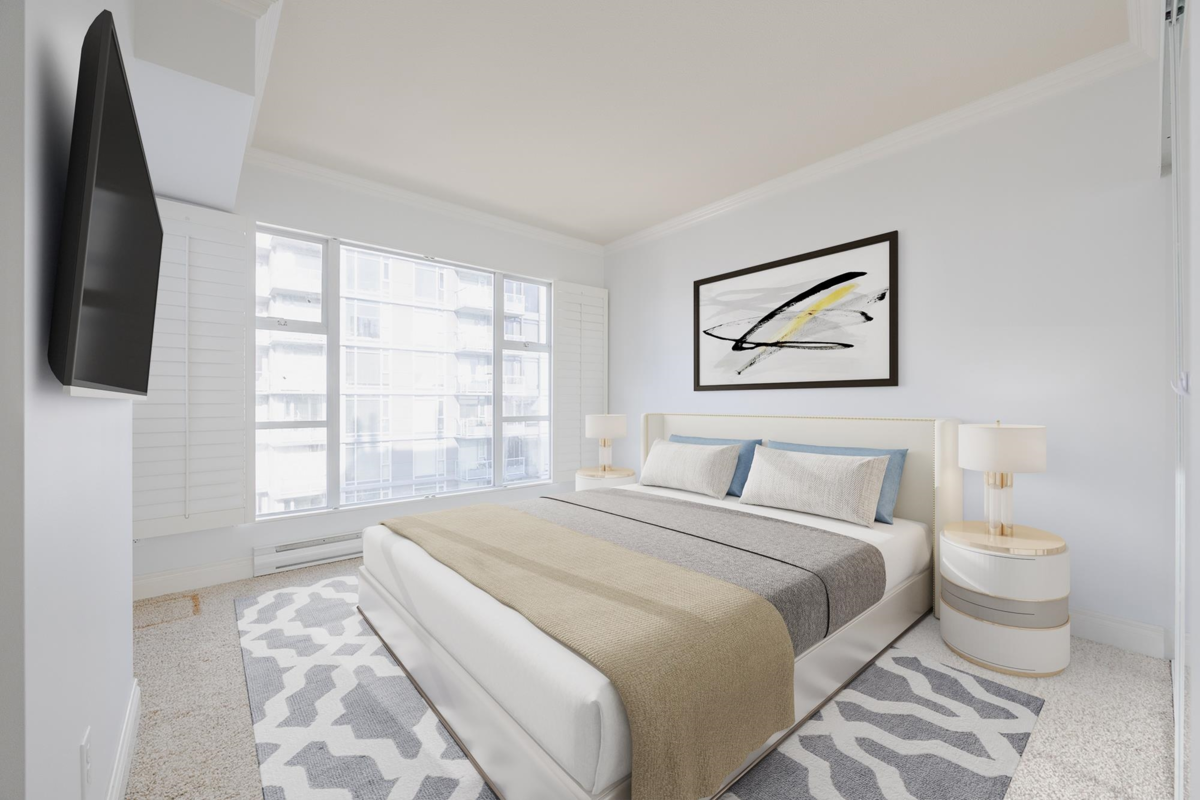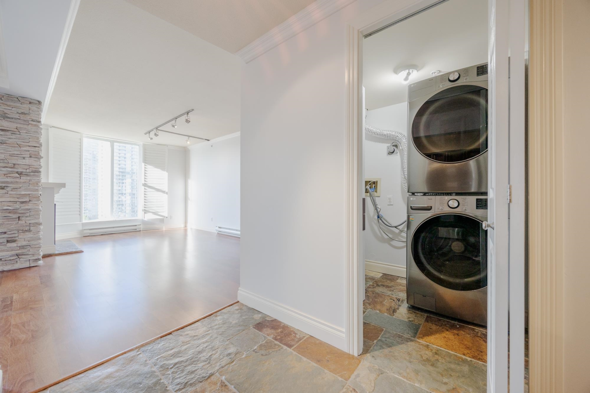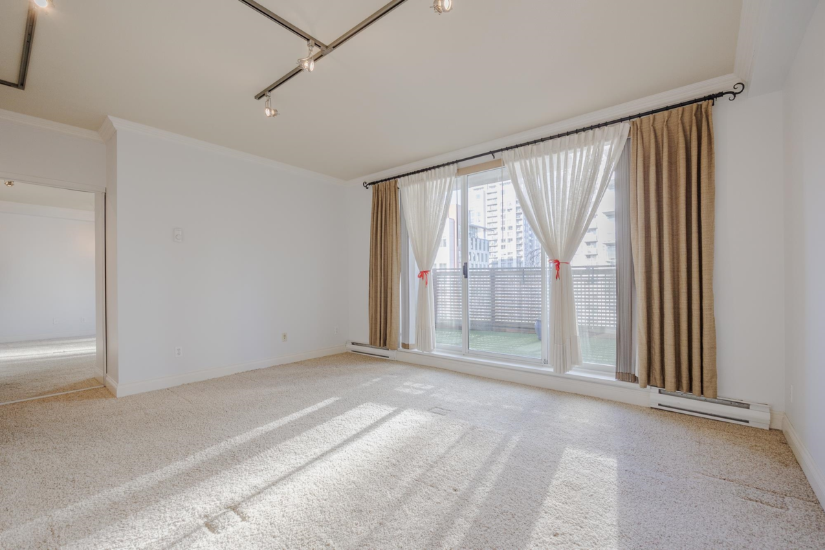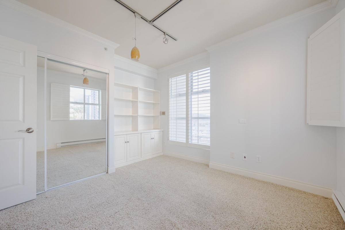 The Frontenac! This 3 bed/ 2bath 1450 sq ft top floor, corner unit is ideally located 1 block from the skytrain station, Coquitlam Center & all amenities. The main living space is bright & spacious featuring, several lg windows with California style shutters & a balcony, with views of the city & mountains. The beautiful brick fireplace & crown mouldings throughout the unit add a finished touch. The lg kitchen has S/S appliances, ample counter space & cabinets for all your cooking & entertainment needs. The Primary bedrm has a second balcony providing additional outdoor living space to enjoy quiet mornings or relaxing summer days. The ensuite features a spa like shower for extra comfort. The numerous closets, built-ins in the bedroom & insuite laundry adds to the convenience of this unit.