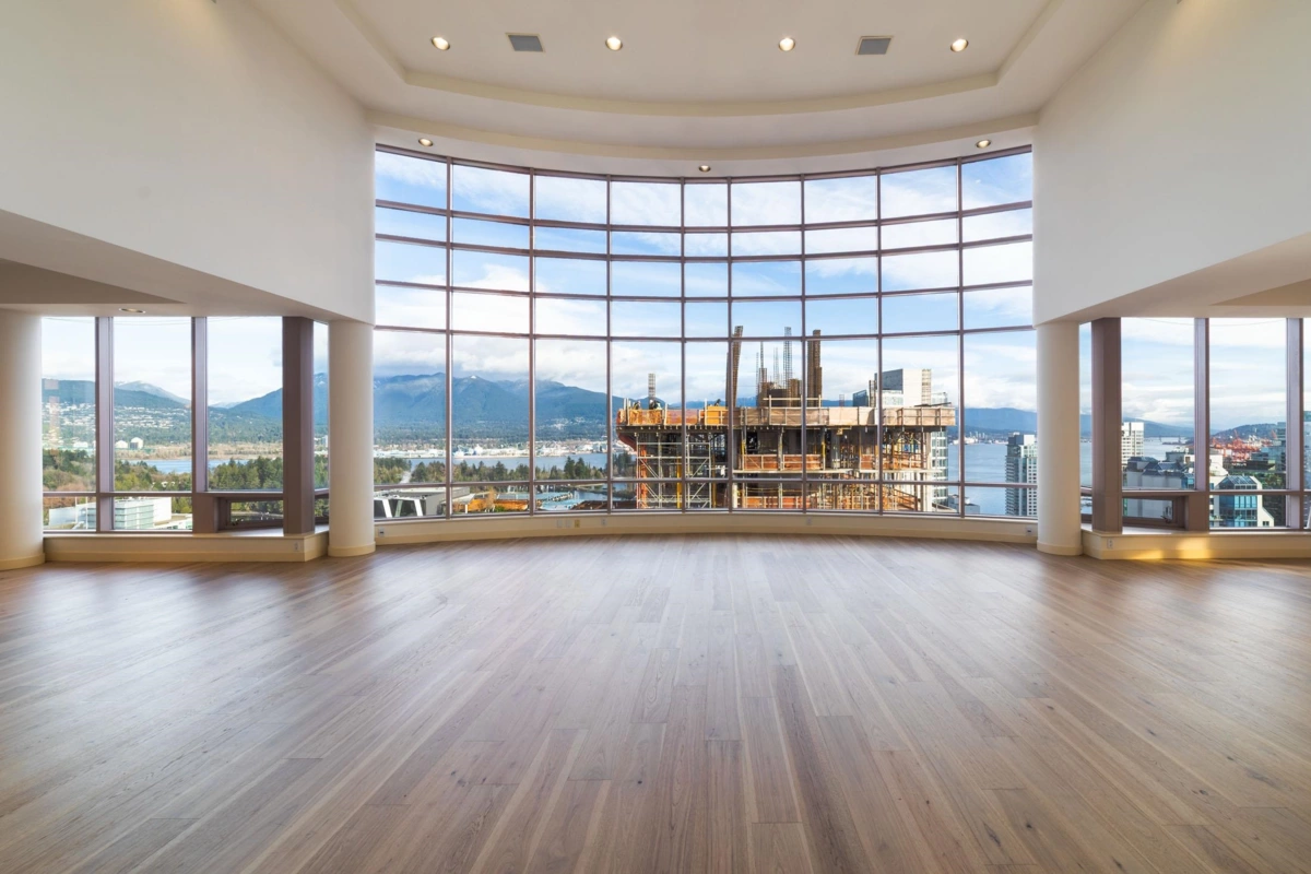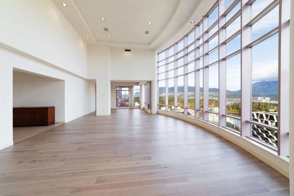 Spectacular views of Coal Harbour, Stanley Park, North Shore Mountains, English Bay, & city from this house-sized residence offering over 4,300 sq ft w/ 4 bedrooms & 5 bathrooms, boasting sweeping panoramic views. This home offers exceptional privacy & a true “home in the sky” feel, ready for your personal touch. Exclusive use of the entire floor opens directly into updated engineered hardwood flooring throughout & floor-to-ceiling windows spanning 18 ft, filling the home w/ natural light. The principal rooms showcase ocean, harbour, & mountain views, complemented by 4 private balconies. Incl 5 parking stalls, 1 storage room, 24hr concierge, 3-storey lobby, fitness centre, club room, & resident gardens. Steps to Robson Street, dining, shopping, Coal Harbour Marina, Seawall, & Stanley Park.