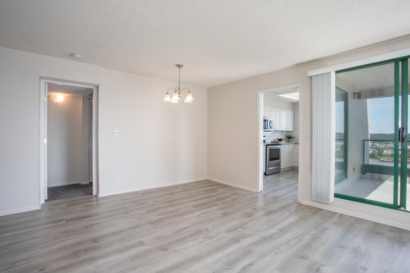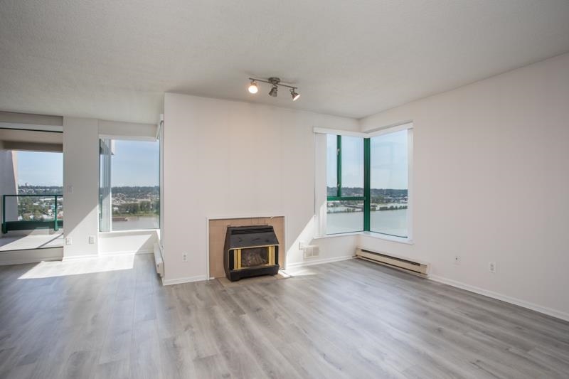Incredible south-facing penthouse with stunning Fraser River views and 3 private balconies! This spacious 2 bed + den home features a bright open-concept layout, updated kitchen appliances, and new laminate flooring. The large den with gas fireplace offers flexible space or potential 3rd bedroom. Bedrooms are separated, with the primary featuring a full ensuite and brand new carpet. Enjoy resort-style amenities including an indoor pool, hot tub, gym, sauna, and rooftop terrace. Steps to shopping, dining, movie theatre, and direct SkyTrain access from the building’s underground parking!