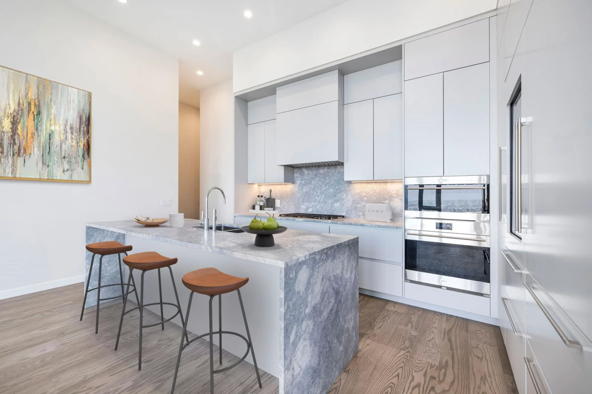 Luxurious three bedroom Penthouse at Cambie Gardens, Onni group ' s master-planned community on Vancouver ' s Westside . Sweeping 180 degree view of golf course and mount ain . This Penthouse features a gourmet kitchen with a 36" Sub Zero and Wolf appliance package , including a fully integrated stand-up wine fridge, premium wide-plank engineered HW flooring, natural stone counter tops, heating & cooling and smart home automation. The master bedroom offers a walk-in closet & five-piece ensuite with walk-in shower, double sinks and soaker tub . With 930 SF of outdoor space, the home provides an expansive rooftop terrace and outdoor kitchen including a fireplace and a hot tub . Private 2-car garage included .