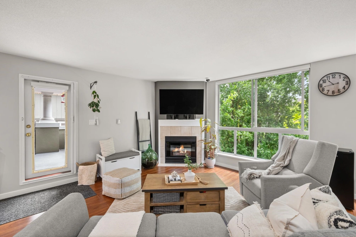 Welcome to the Esplanade! This stunning PENTHOUSE offers 2 spacious bedrooms, a large DEN (could be 3rd bedroom), and 2 full bathrooms. With just under 1,200 sq ft of open-concept living space, this home is flooded with natural light and features modern updates throughout, including updated bathrooms, laminate and tile flooring, and a natural gas fireplace. The large covered patio, with southeast exposure, provides the perfect spot to relax. Enjoy bedrooms on opposite sides for added privacy, 2 parking spaces and 1 large storage locker. Located steps from Gates Park, close to schools, shopping, transit, and over 25 km of scenic trails on the Traboulay PoCo Trail. This well-maintained, pet-friendly building offers the best of urban living with nature on your doorstep!!