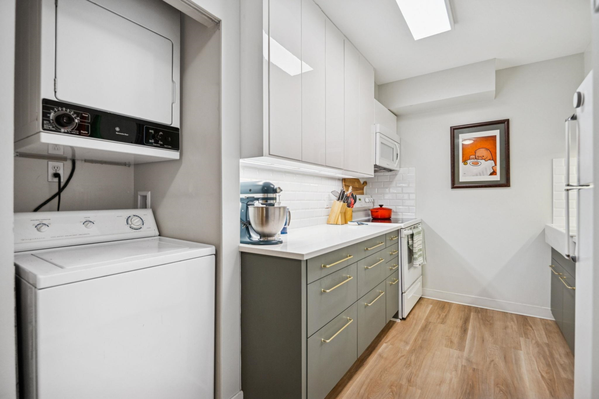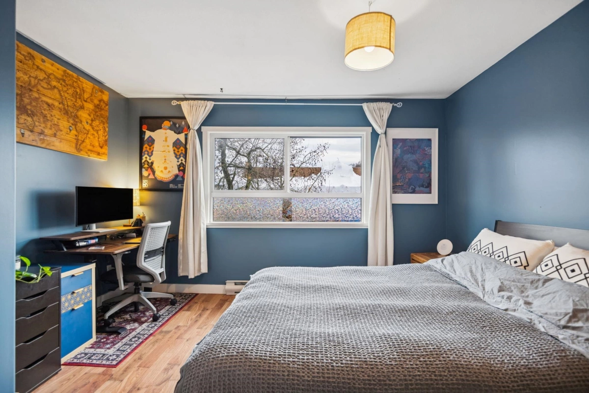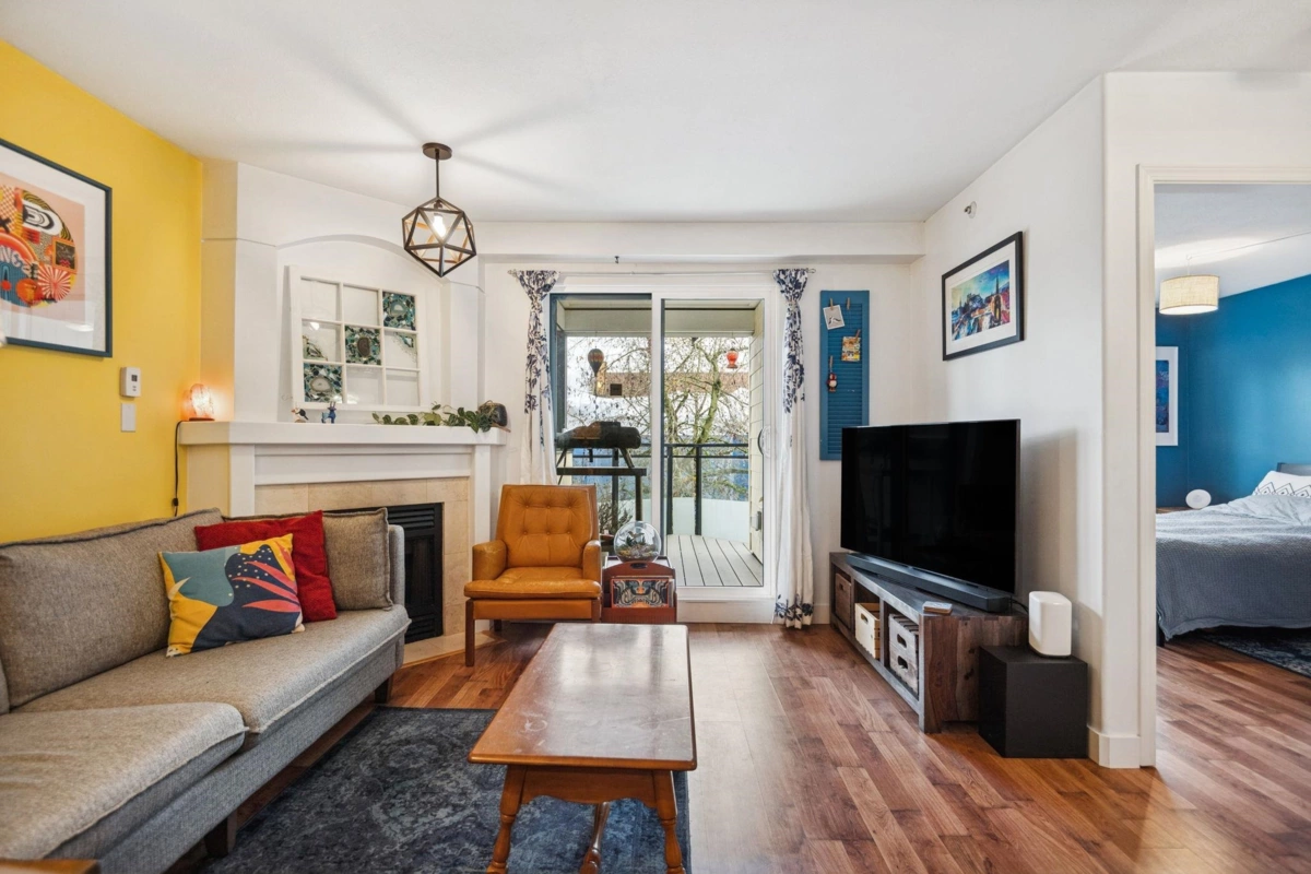 Welcome to the top floor of the 8th Avenue Garden Apartments, featuring a charming peek-a-boo mountain view from the east-facing balcony. This spacious 1-bedroom home offers a contemporary updated kitchen with new flooring, a renovated bathroom, cozy gas fireplace, and in-suite laundry. The well-maintained building has been fully rainscreened with a new roof completed in 2021, along with recent re-piping, new hallway carpets, and fresh paint. Includes two parking stalls, storage locker, and bike room. Prime location close to transit to UBC, shopping, restaurants, and Trout Lake. City sewer upgrades currently in the Nanaimo–East Kamloops neighborhood. Plz park on 7th Ave & walk on the right/west side of Kamloops along the grass to front entrance. OPENS: FEB 7: 2-4PM & FEB 8: 1-3PM.