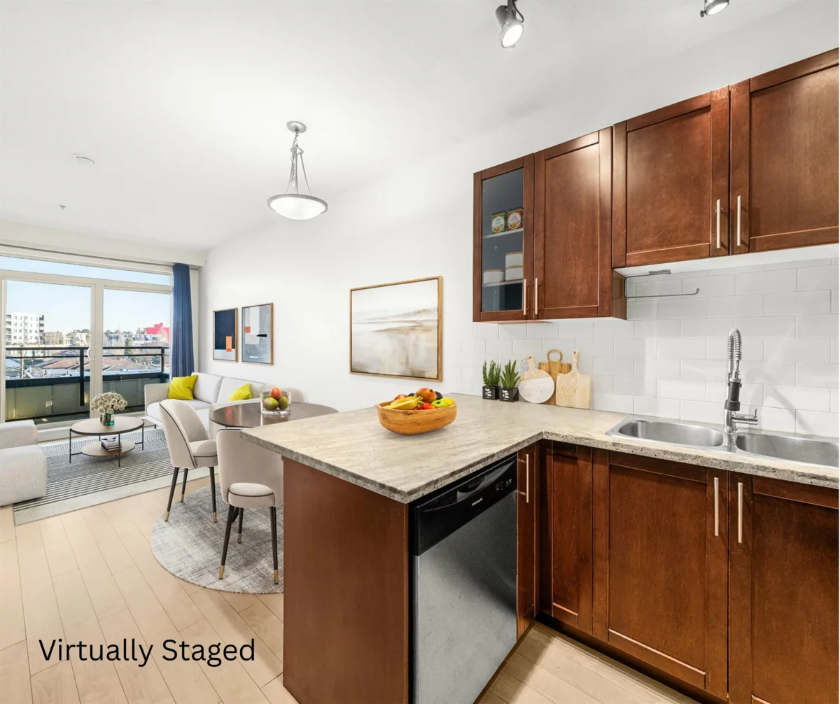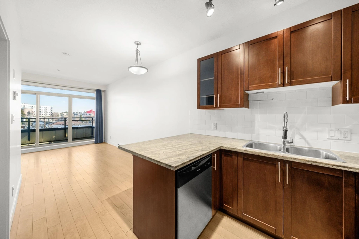 Welcome to The Mondella! This 638 sq ft penthouse features a smart, functional layout with 1 bedroom, 1 bathroom, and a versatile den, perfect for a home office. High ceilings and a skylight fill the space with natural light, leading to an exceptional 104 sq ft east-facing balcony, ideal for morning sun, entertaining, or simply enjoying mountain views. Additional highlights include granite counter tops, in-suite storage, in-suite laundry, 1 secure parking space, and a pet-friendly building. Located in a boutique, well-managed building just steps from Fraser and Mount Pleasant’s best cafes, shops, and eateries, this is urban living at its finest in one of Vancouver’s most sought-after communities. Open House: Thurs. Jan 22 4-6pm, Sat/Sun, Jan 24/25 2-4pm.