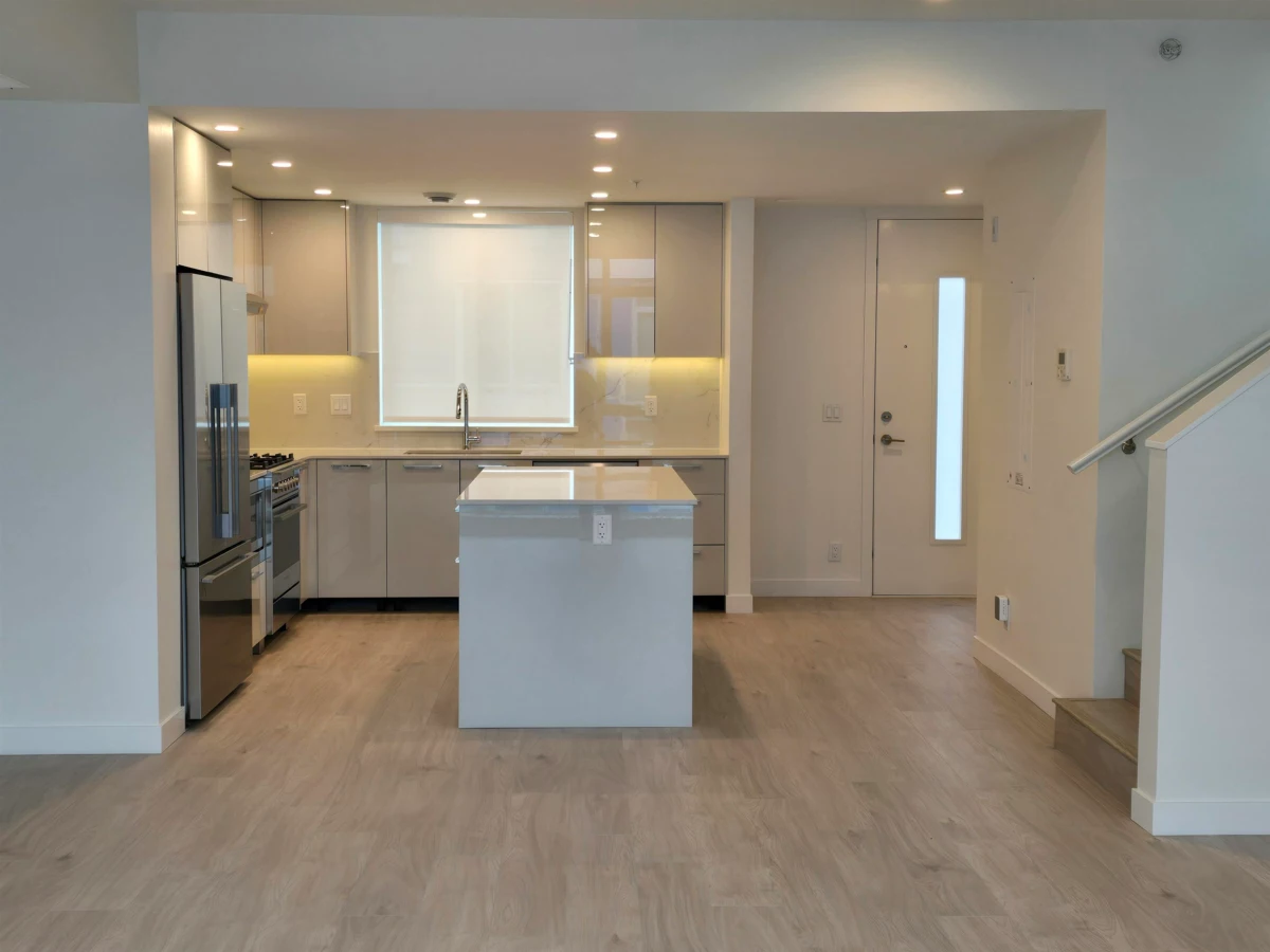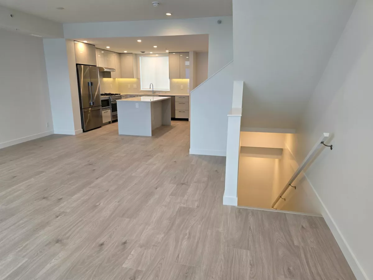 Parc Portofino by award-winning Dava presents this exceptional two-level luxury townhome with a stunning 585 sq ft rooftop terrace. Offering 1,481 sq ft of interior living space plus a balcony, this home features 3 bedrooms, 2.5 bathrooms, and 2 parking stalls, including 1 EV stall. Highlights include air conditioning throughout, 9-ft ceilings, a gourmet kitchen with high-end appliances, open-concept living filled with natural light, laminate flooring in main living areas, plush carpeting in bedrooms, full-size LG washer/dryer, roller window shades, and a 2-5-10 new home warranty. Ideally located near dyke trails, parks, and schools for the ultimate riverside lifestyle. OPEN HOUSE SUN.DEC.28@1-4PM