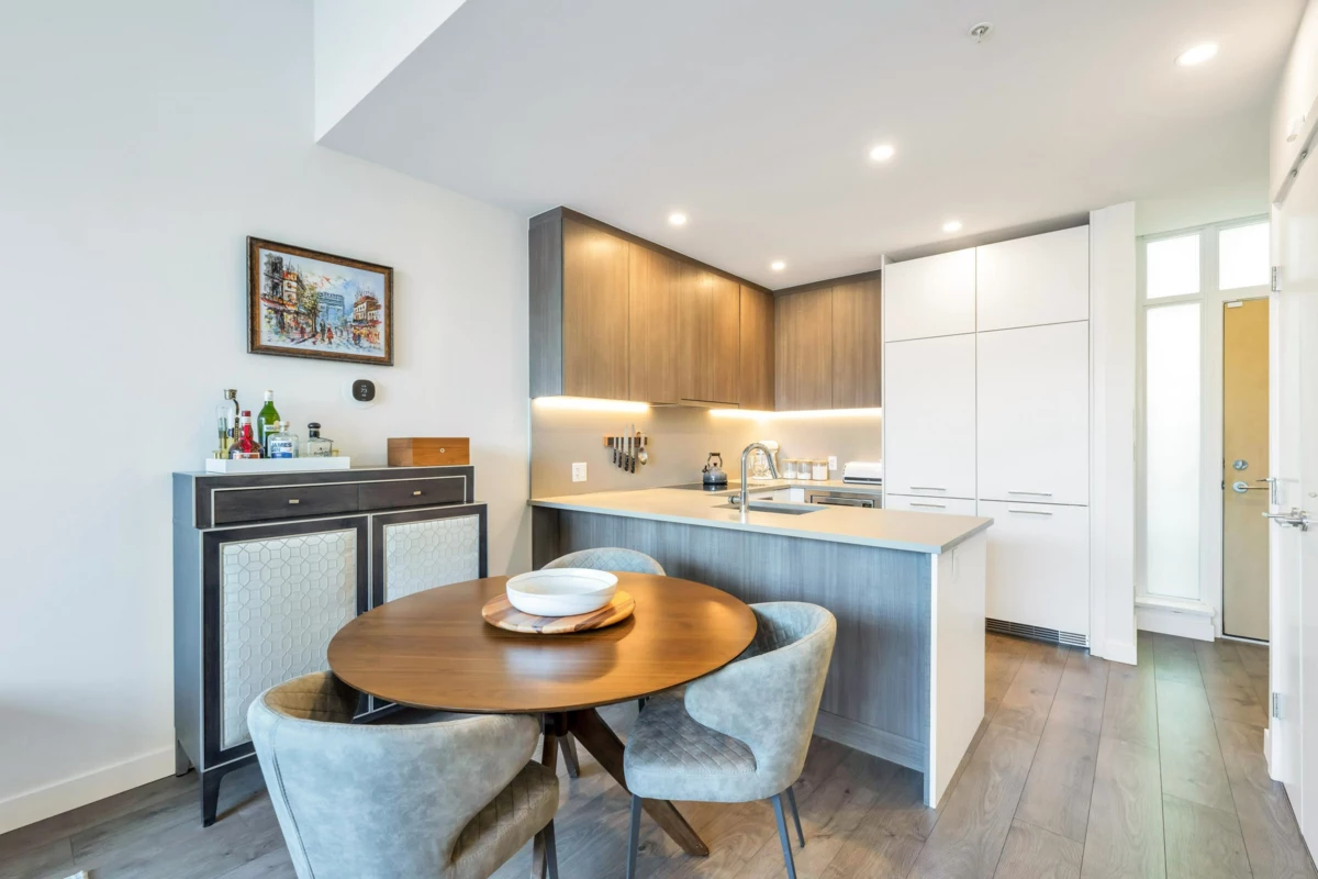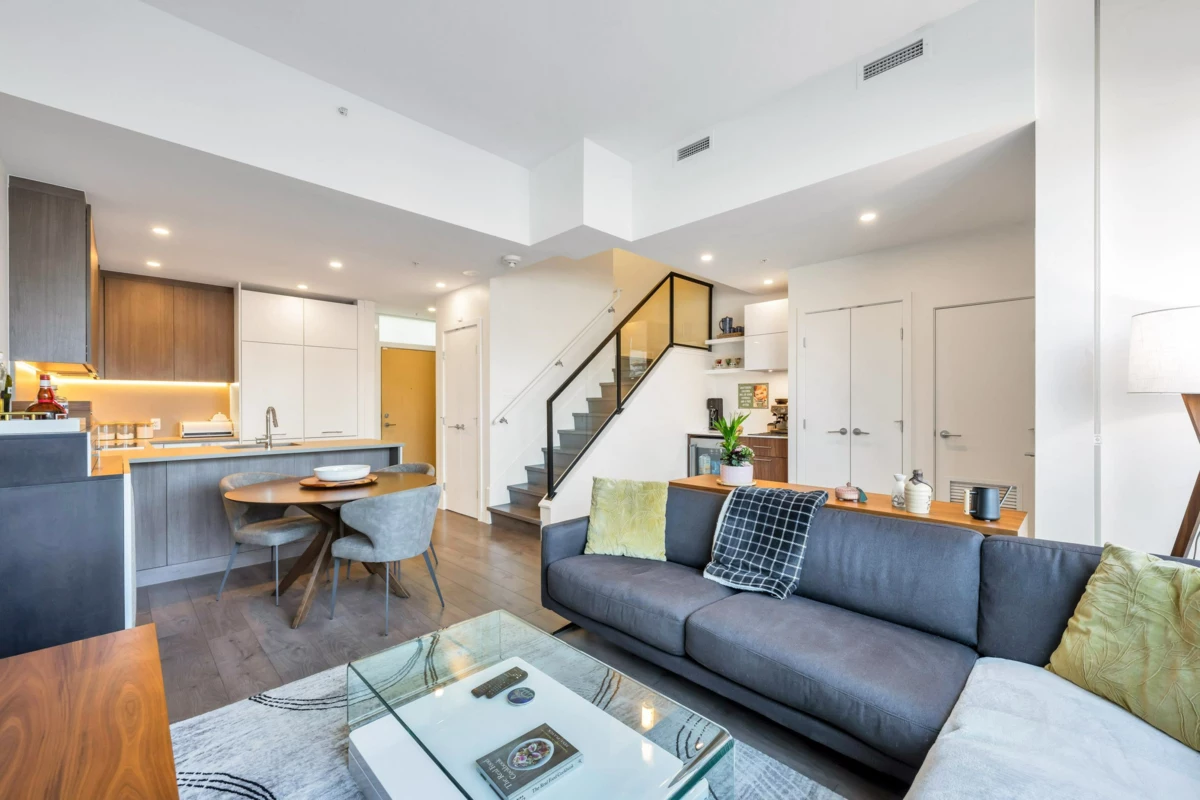 This city-style Townhome is a 10/10 & leaves nothing to be desired. Inside this 1429 sqft, 3 bed, 3 bath plus LOFT home, you'll find a stylish open-concept main floor with high ceilings, well-appointed kitchen & 3 outdoor spaces. The versatile loft can be used as an office, 4th bed or extra living space opening to a private west-facing rooftop deck. Features include custom California closets throughout, built-in desk and shelving, beverage centre w/ fridge, upgraded full-size washer/dryer, central A/C, smart thermostat, premium appliances & glass shower doors. Includes 2 tandem parking stalls & massive storage room. Building amenities: gym, clubhouse, theatre, yoga studio, ping pong & rooftop deck w/180° views.