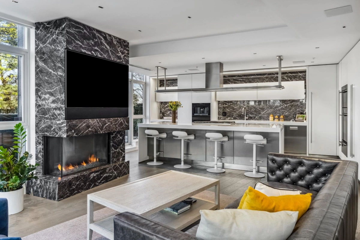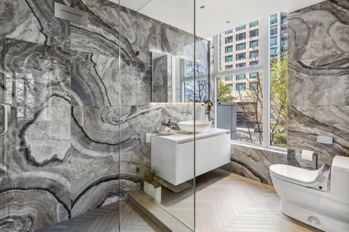 Waterfront Coal Harbour townhouse with stunning views and a house-like feel, featuring a private yard, corner exposure with abundant light, direct seawall entry, private elevator, gated 2-car garage with in-unit access, and private storage. Fully rebuilt in 2021 with Arclinea millwork, Sub-Zero/Wolf appliances, Bocci lighting, security, and Savant smart home with Lutron integration.