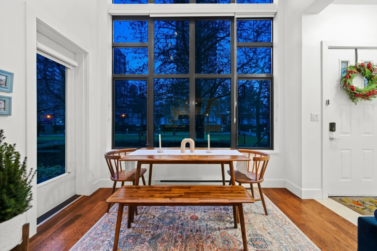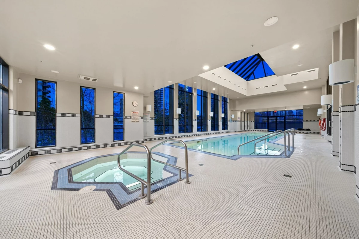 This concrete townhome is tucked into a peaceful, green pocket of Brentwood, offering privacy and serenity without sacrificing convenience. Soaring 18’ ceilings and a smart split-bedroom layout create an airy, luxurious feel. Enjoy an open living space, cozy fireplace, & brand-new appliances, plus direct access to side-by-side parking. Step outside to your private fenced yard and patios, perfect for play, entertaining, or unwinding & pet friendly Resort-style amenities include an indoor pool, hot tub, sauna, fitness centre, & concierge. Just steps to Brentwood Mall, schools, cafes, daycares, schools and parks. A home that makes city living feel calm, elevated, and effortless. **OPEN HOUSE - SUN, JAN 25 - 1 PM - 3 PM**